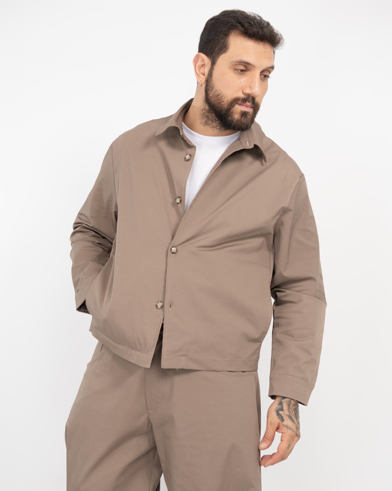 Giacca camicia boxy fit gabardine fango