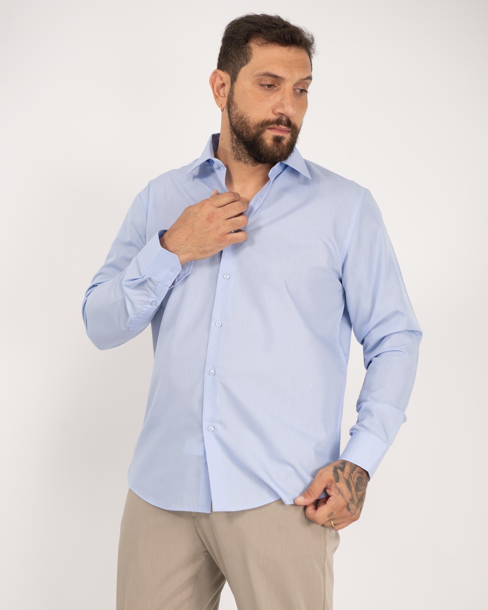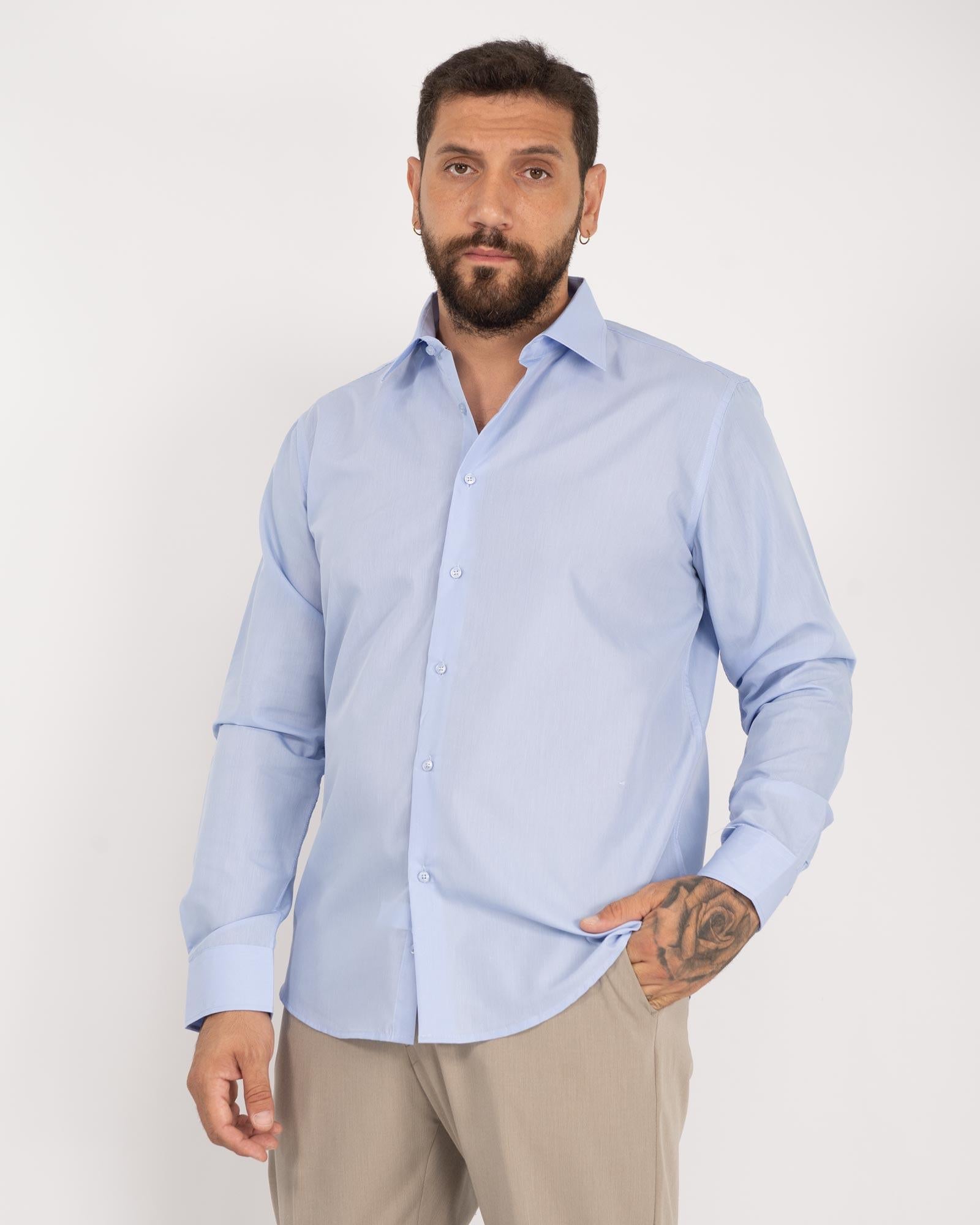 Camicia regular fit basic celeste