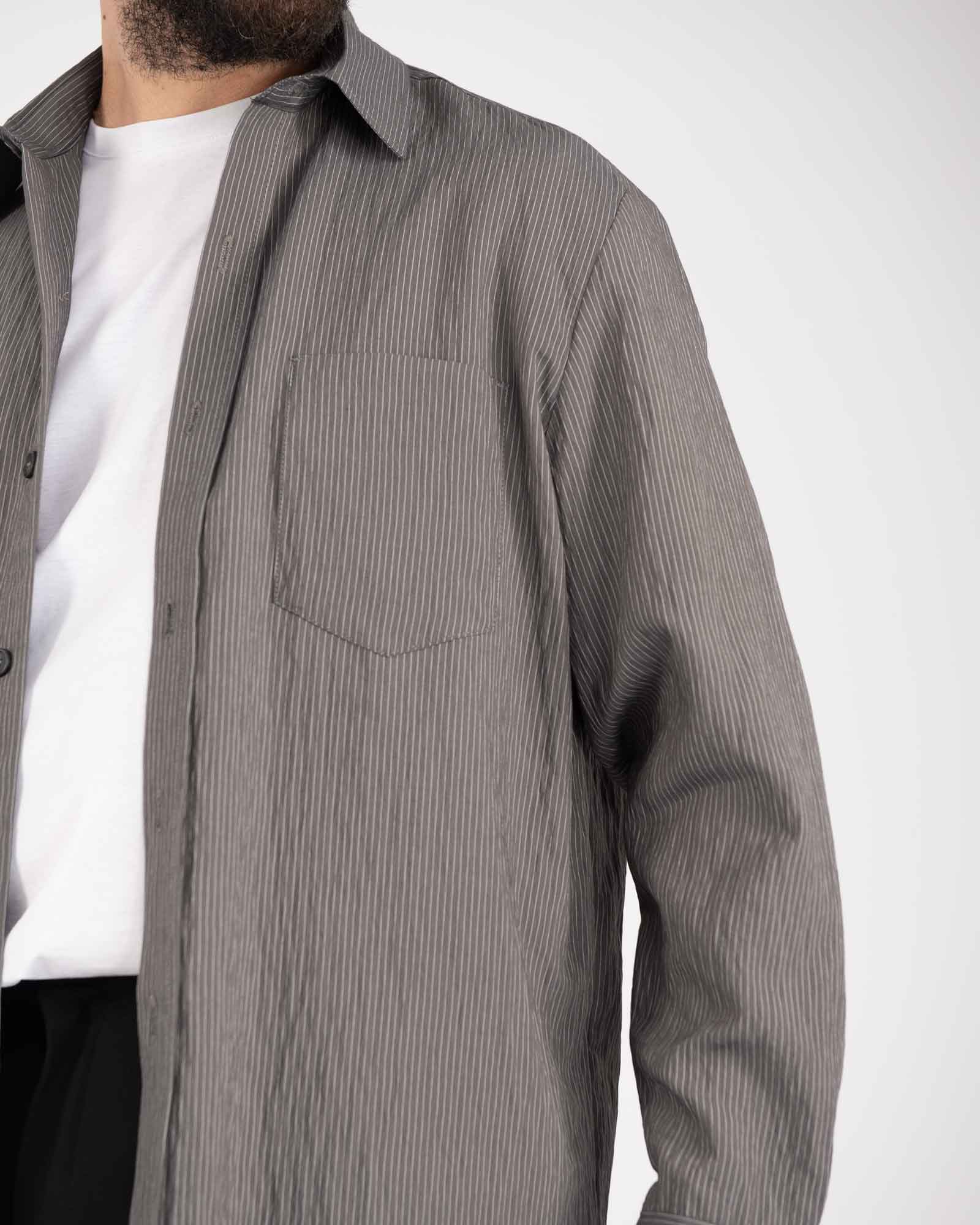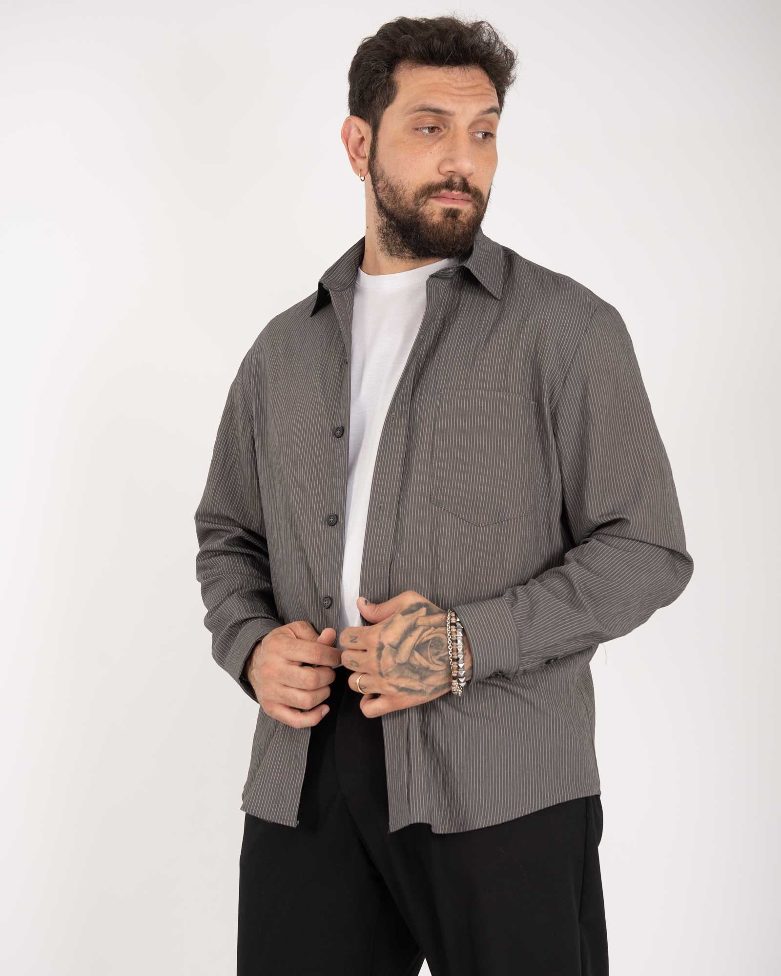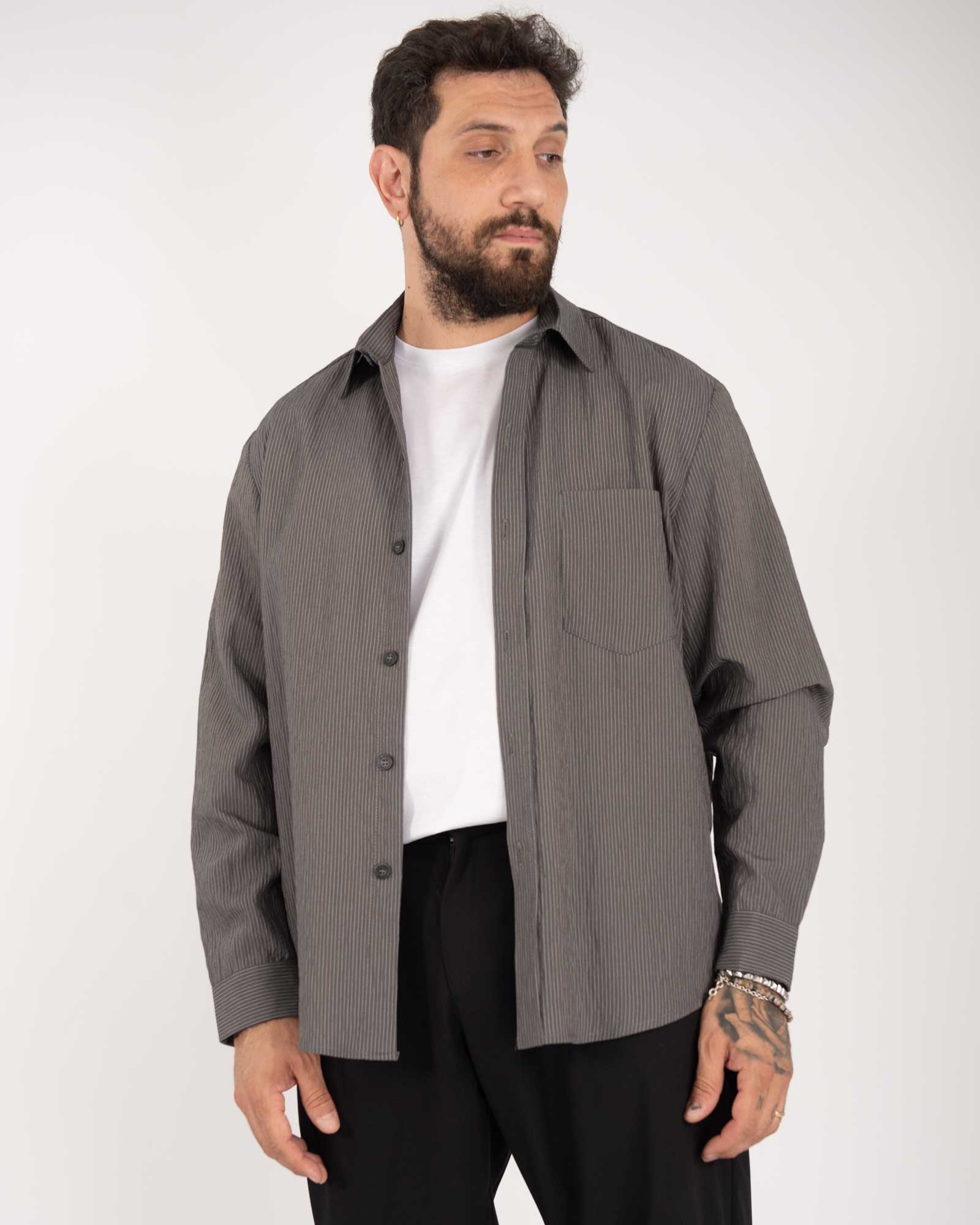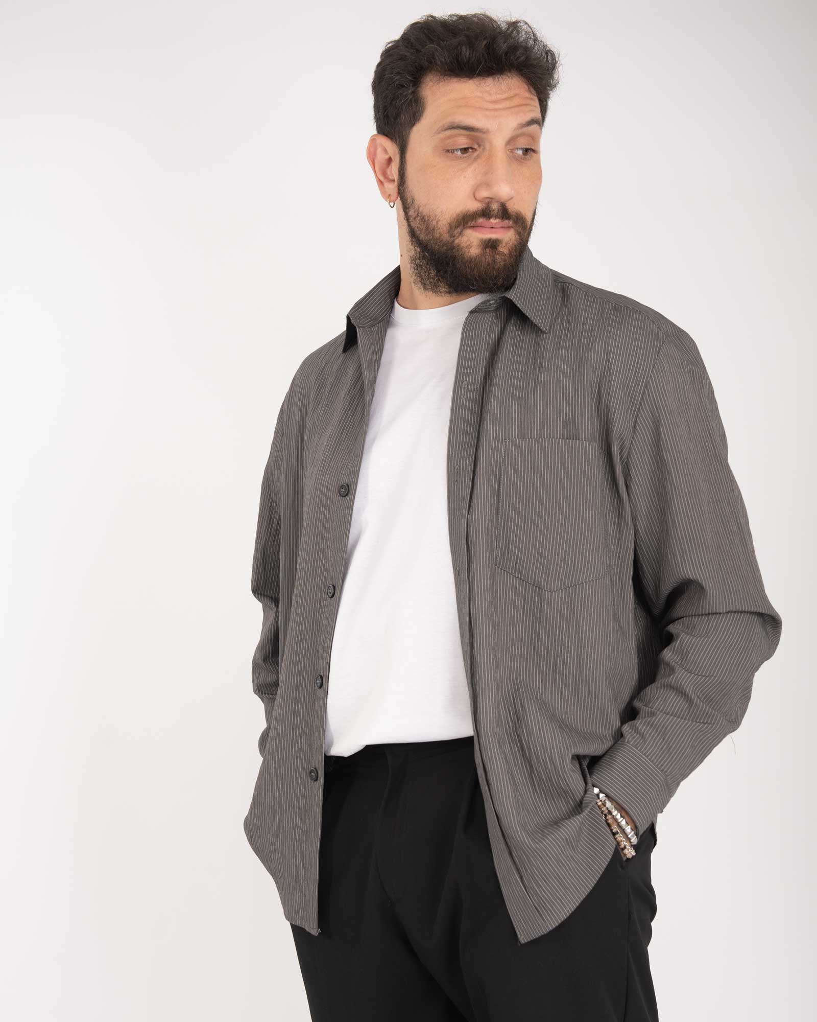Camicia relaxed fit righe realizzata in tessuto misto viscosa. Collo a revers e maniche lunghe con polsino con bottoni. Chiusura frontale con abbottonatura. Il modello in foto indossa la XL per altezza 1,85cm e peso 97kg.