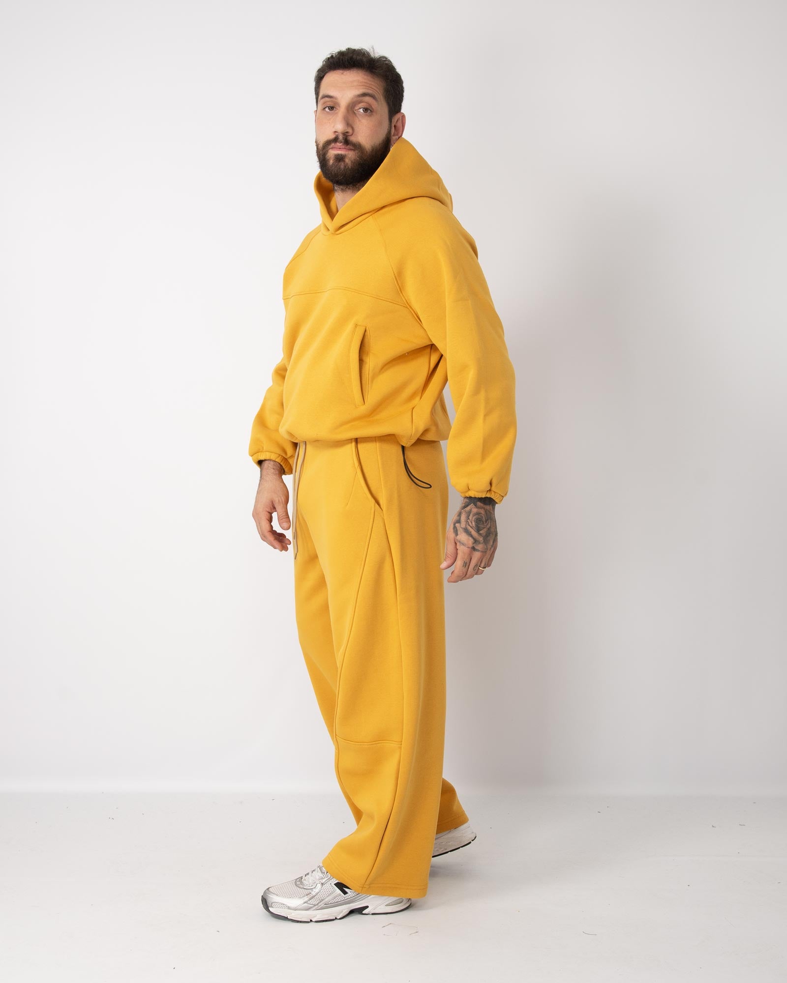 La felpa presenta un design cropped fit con cappuccio e pratiche tasche sul davanti, rifinita con elastico regolabile sul fondo abbinata al pantatuta dal taglio balloon fit, garantisce massima libertà di movimento grazie all’elastico in vita con coulisse regolabile e alle tasche laterali funzionali. In foto è indossata per la felpa la taglia XL e il pantatuta L per altezza 1,85cm e peso 97kg.