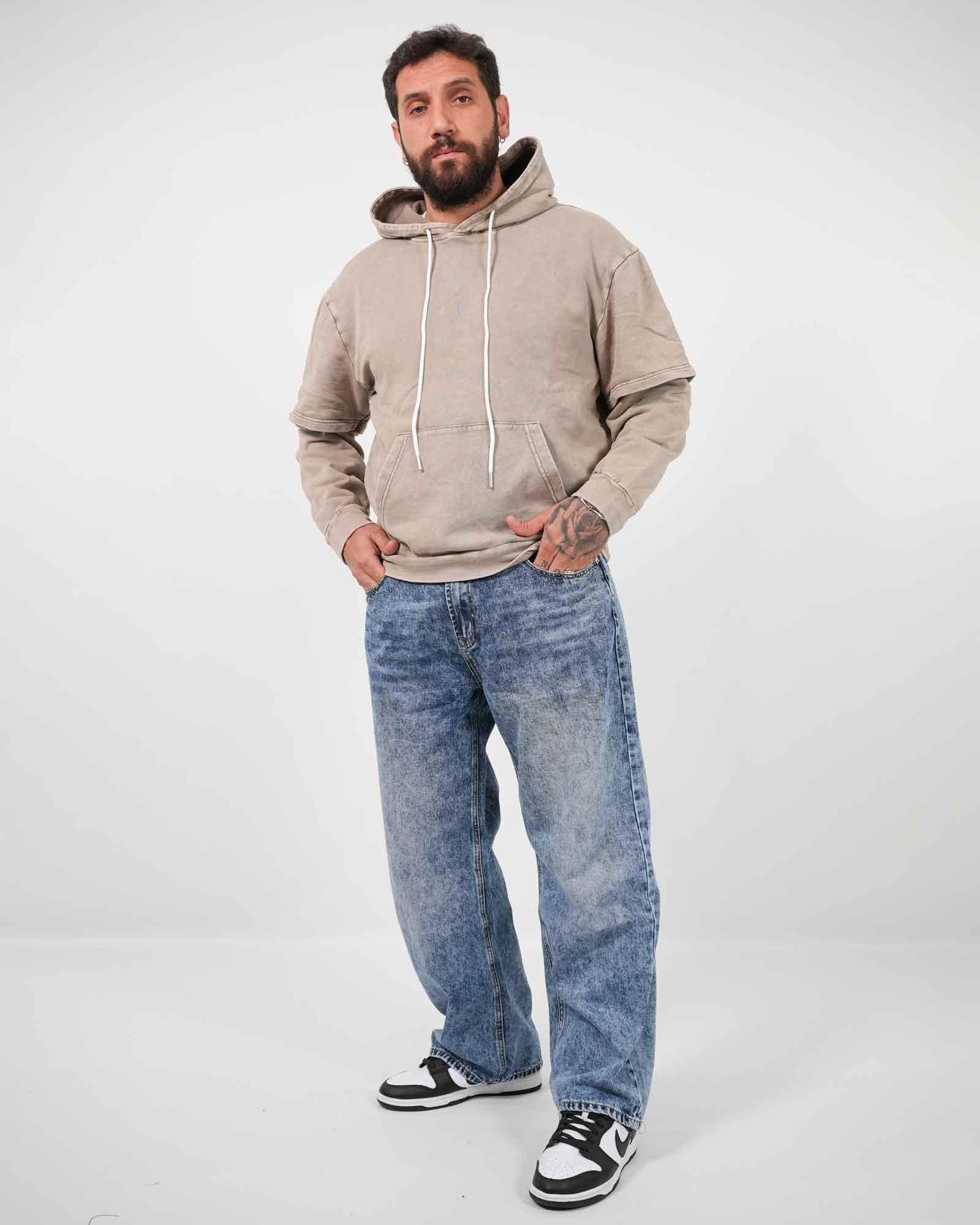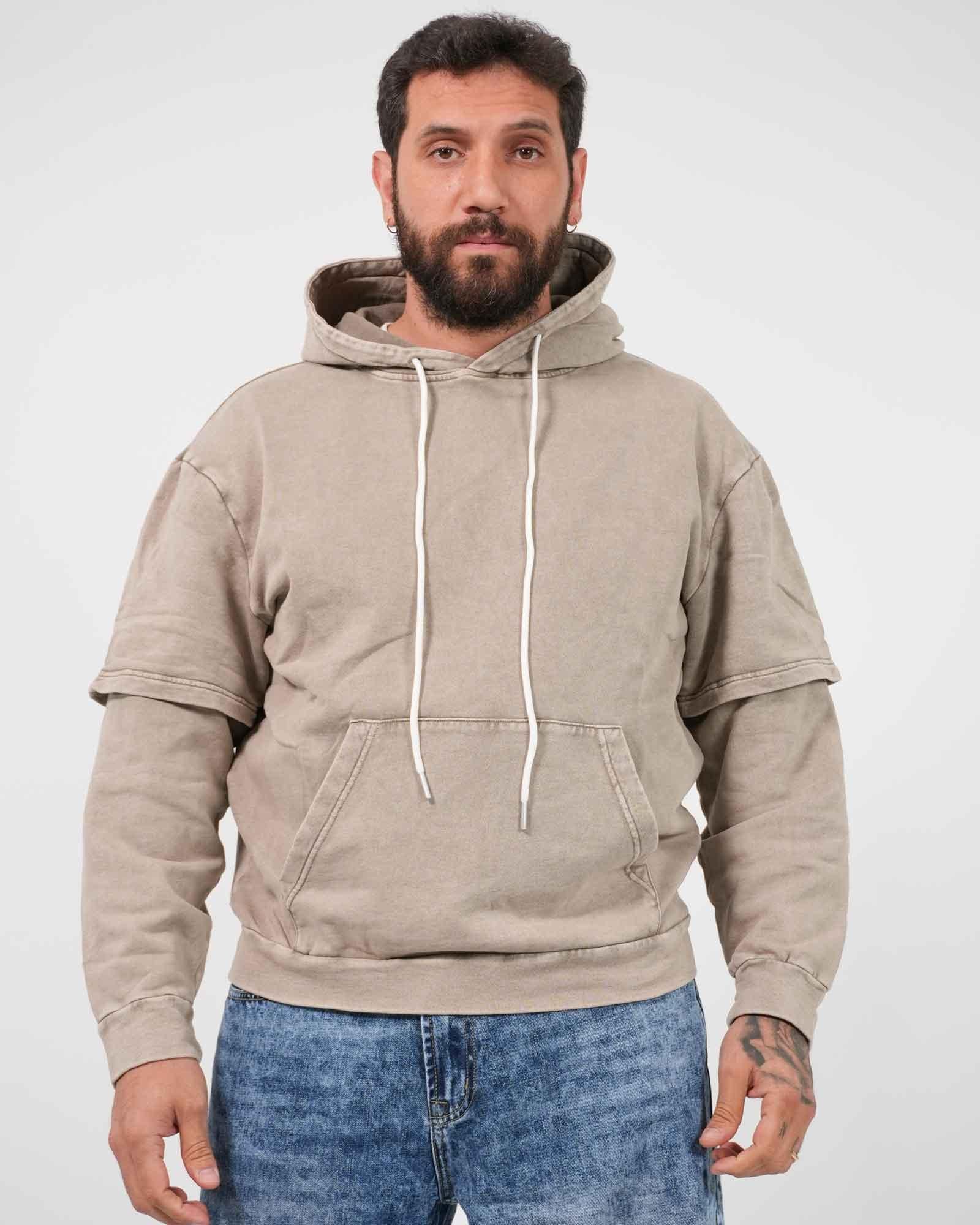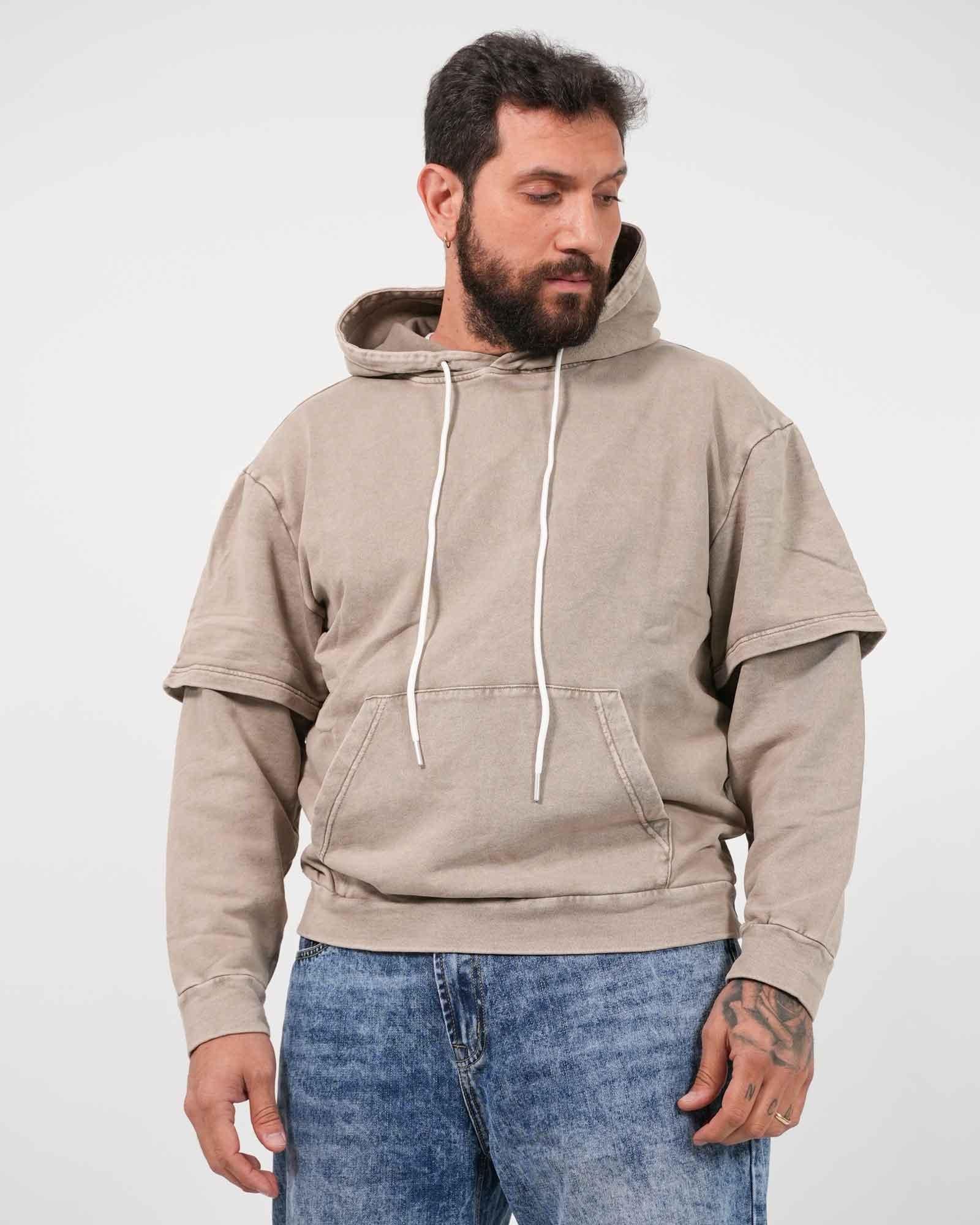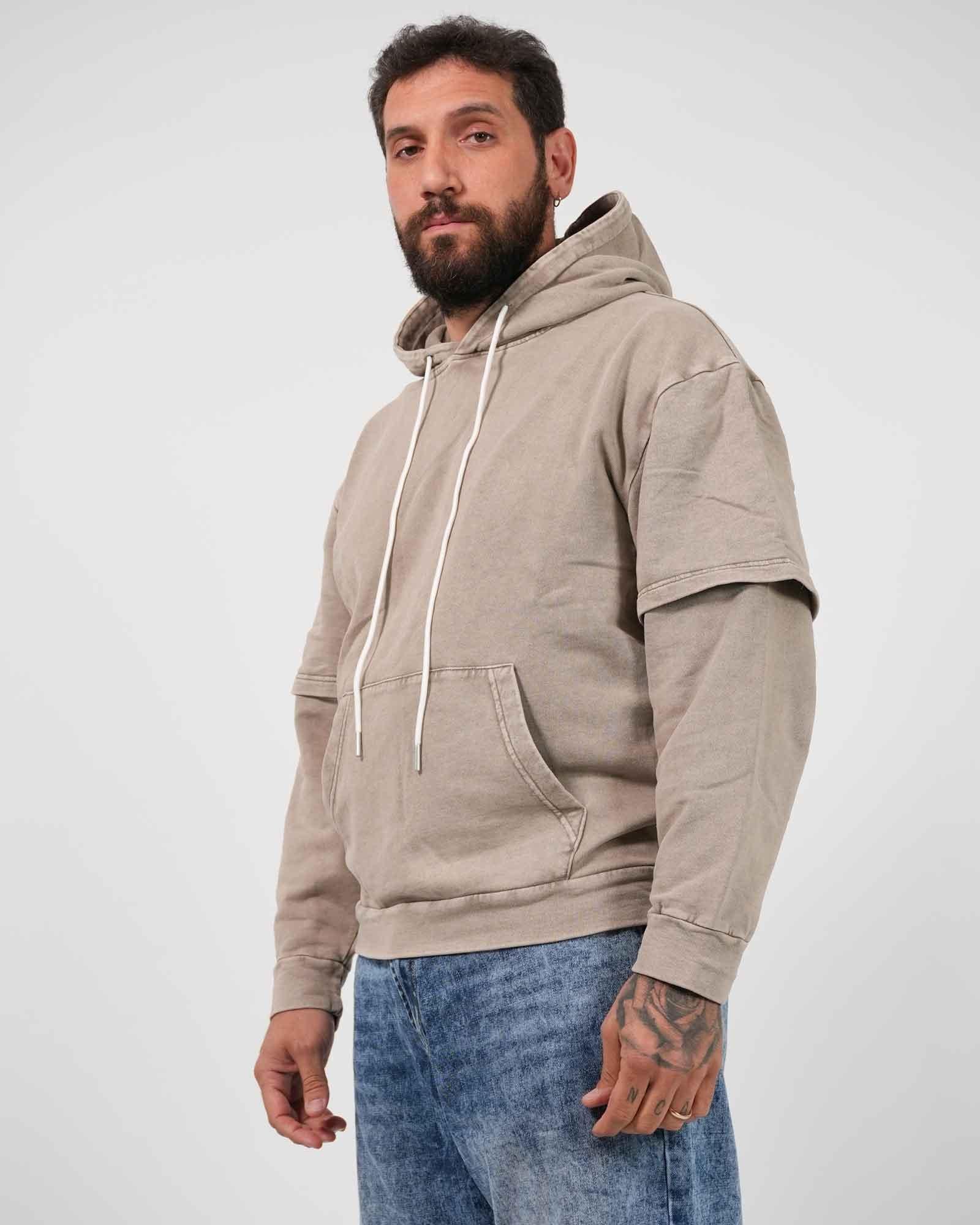 Felpa doppia manica effetto slavato beige