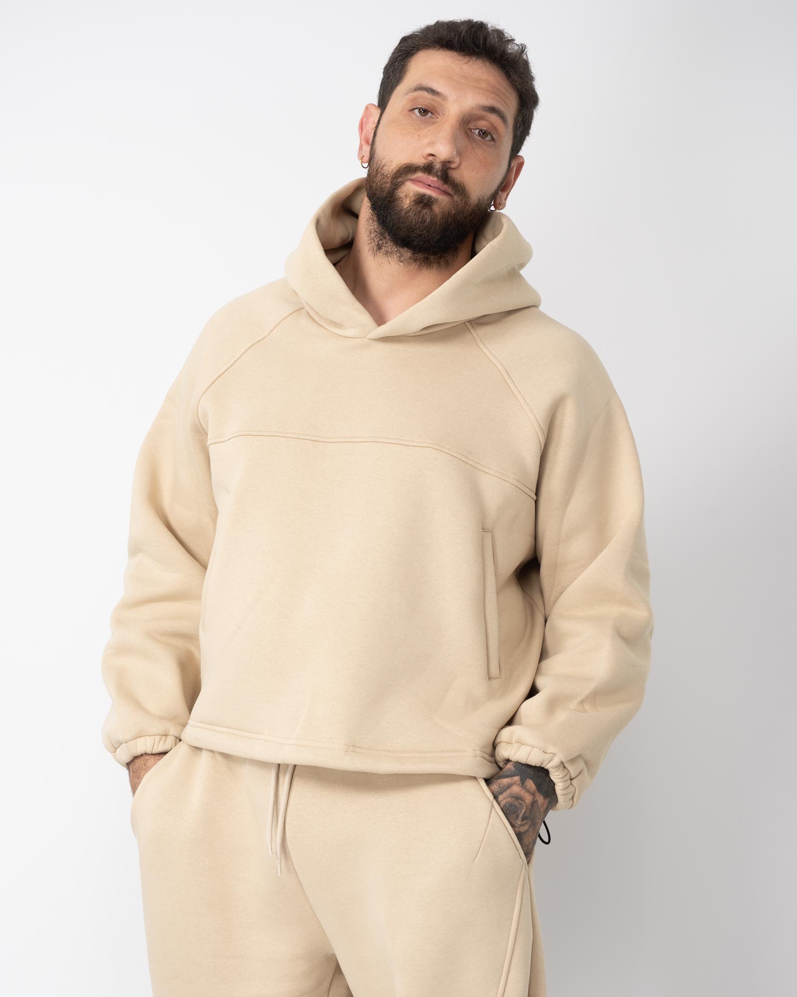 Felpa cappuccio crop regolabile sul fondo