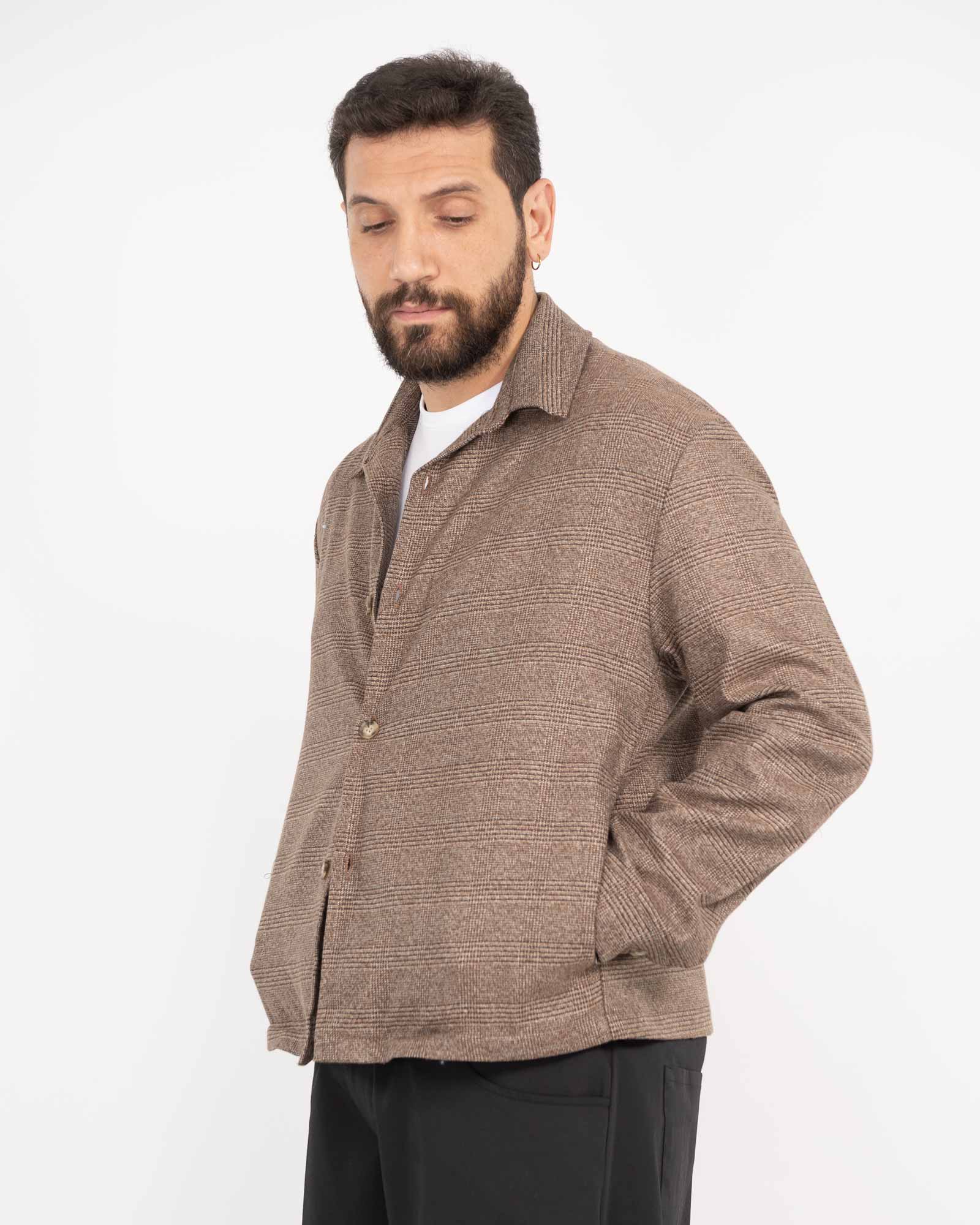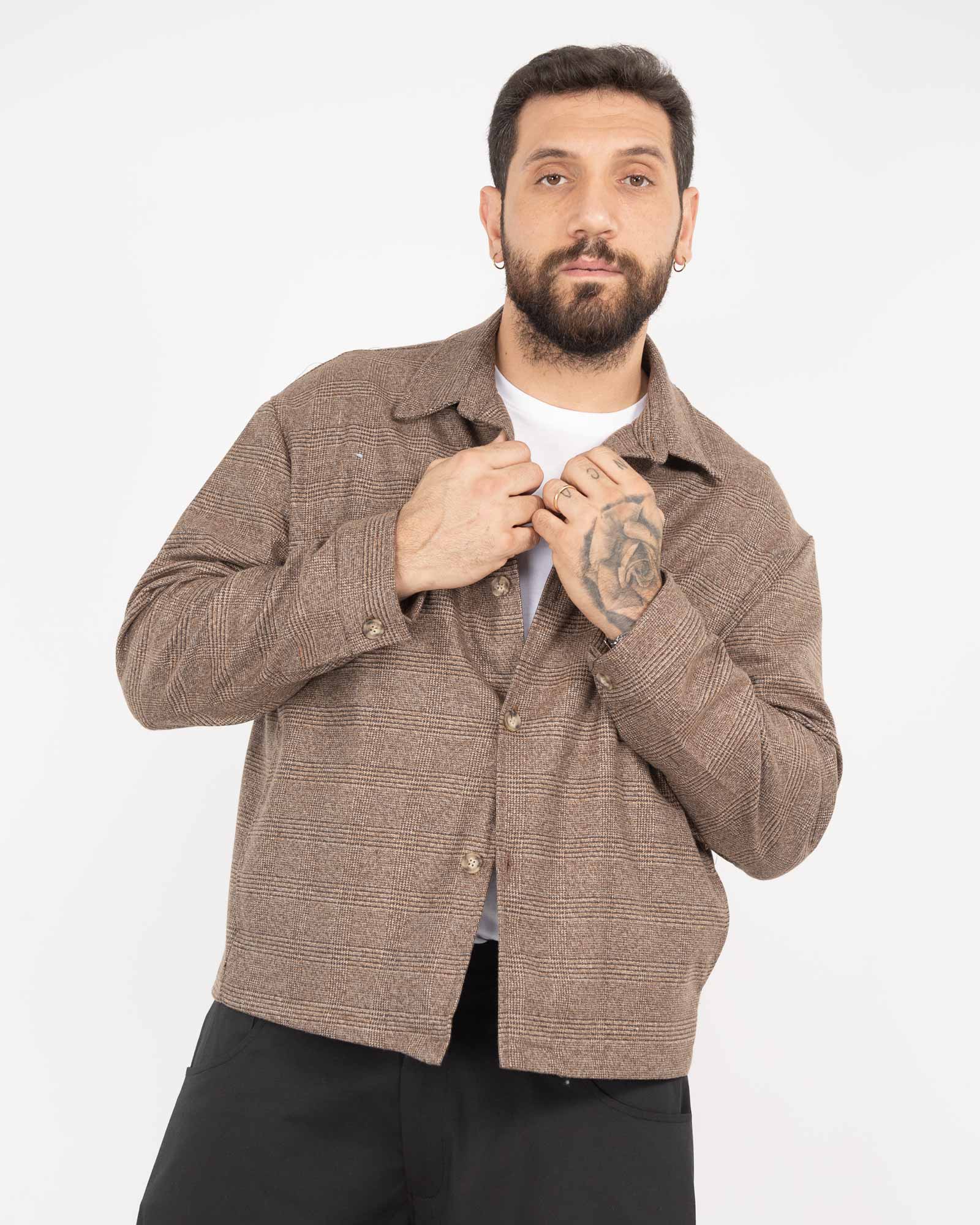Giacca camicia boxy fit fantasia quadri nocciola