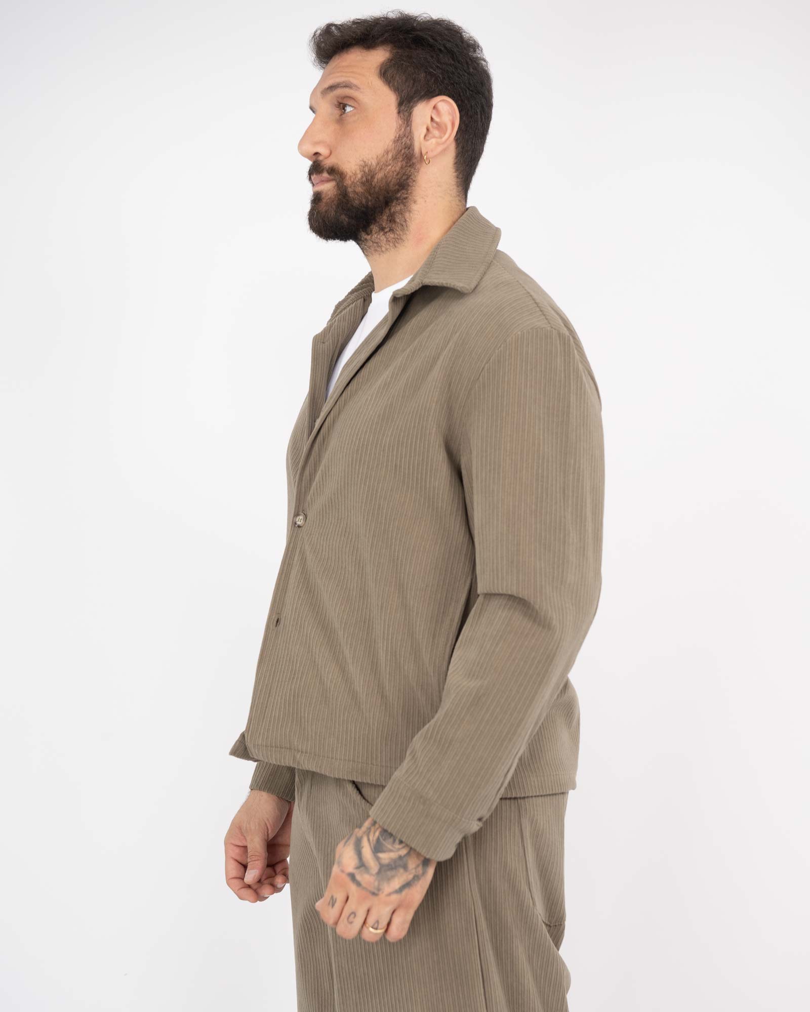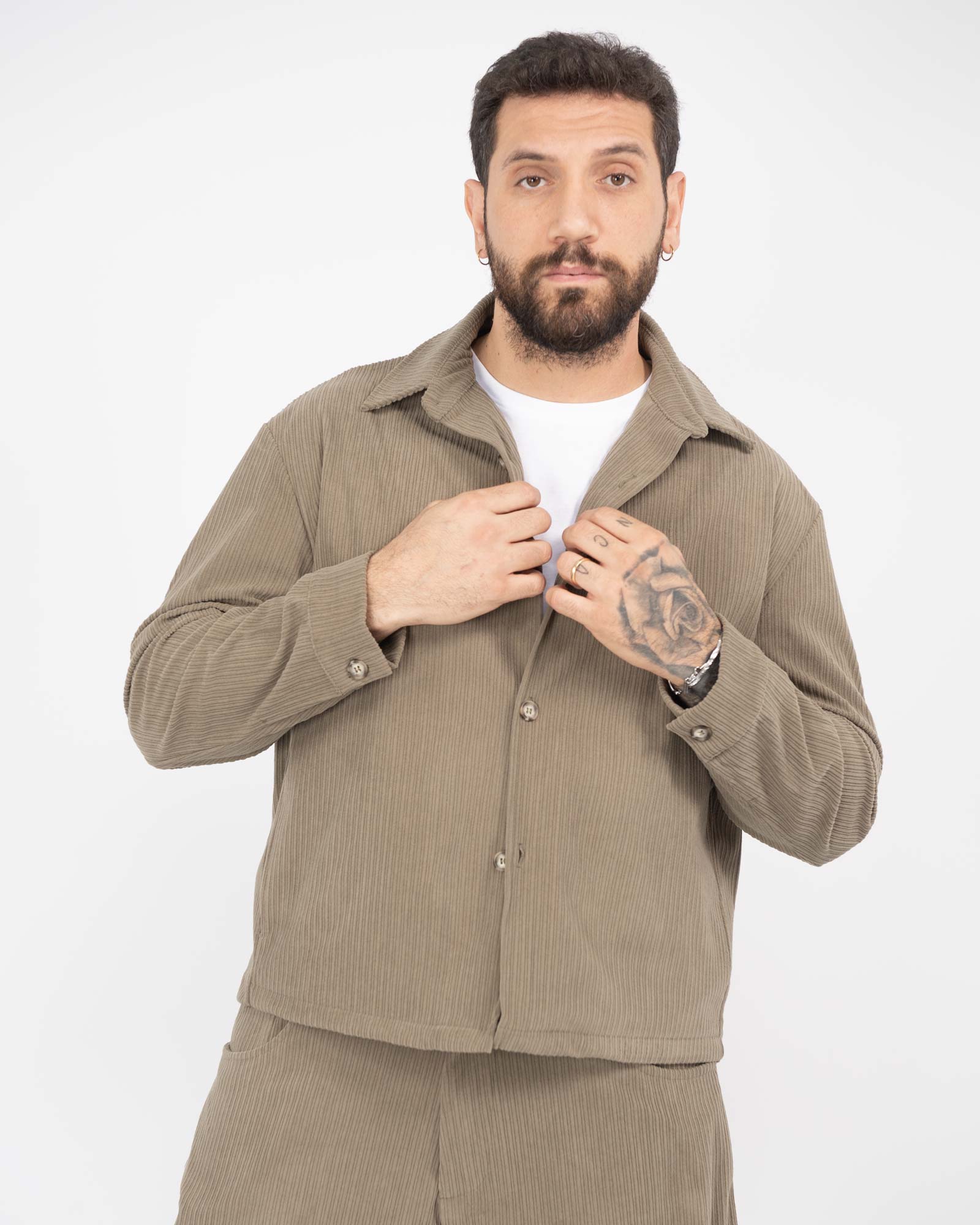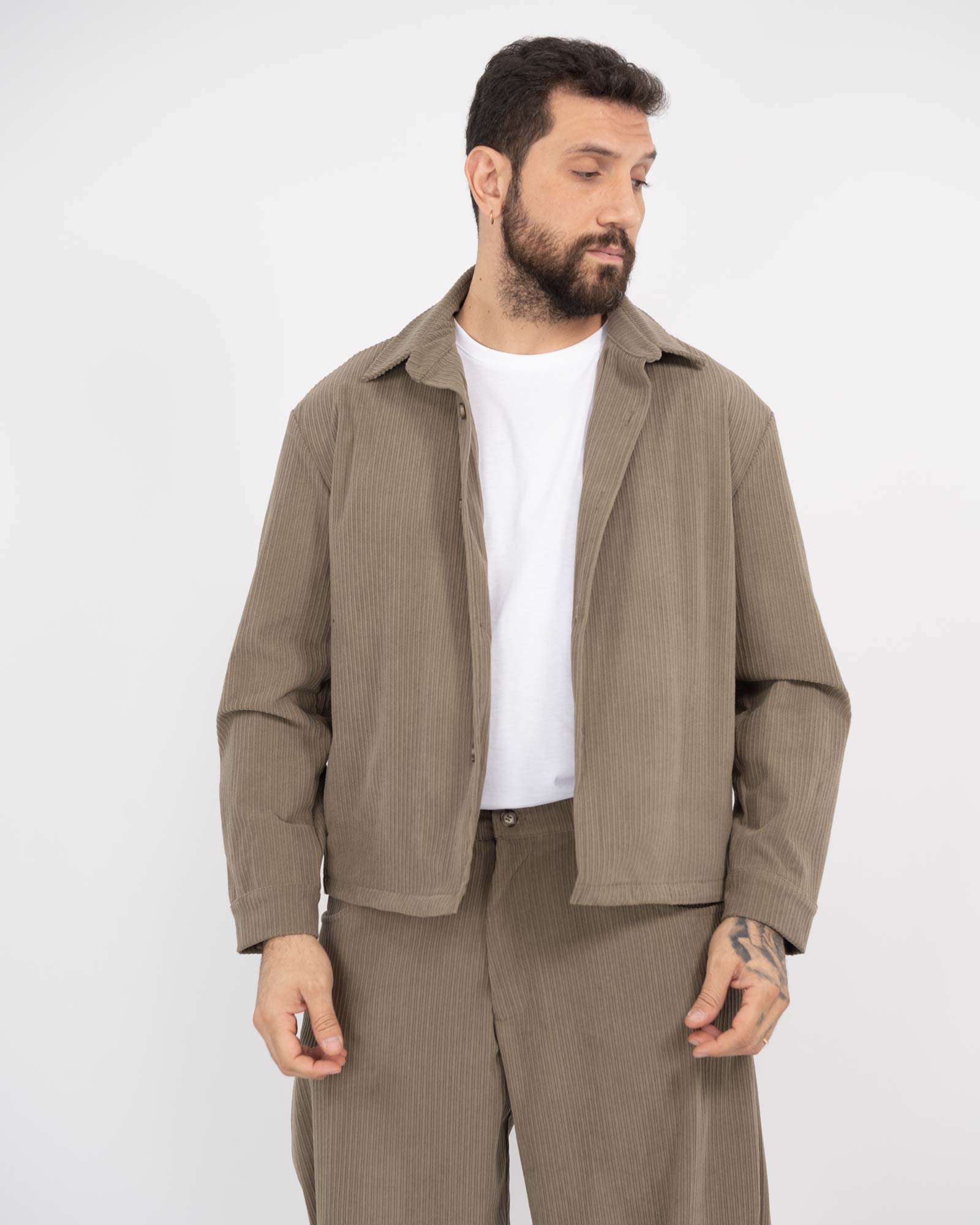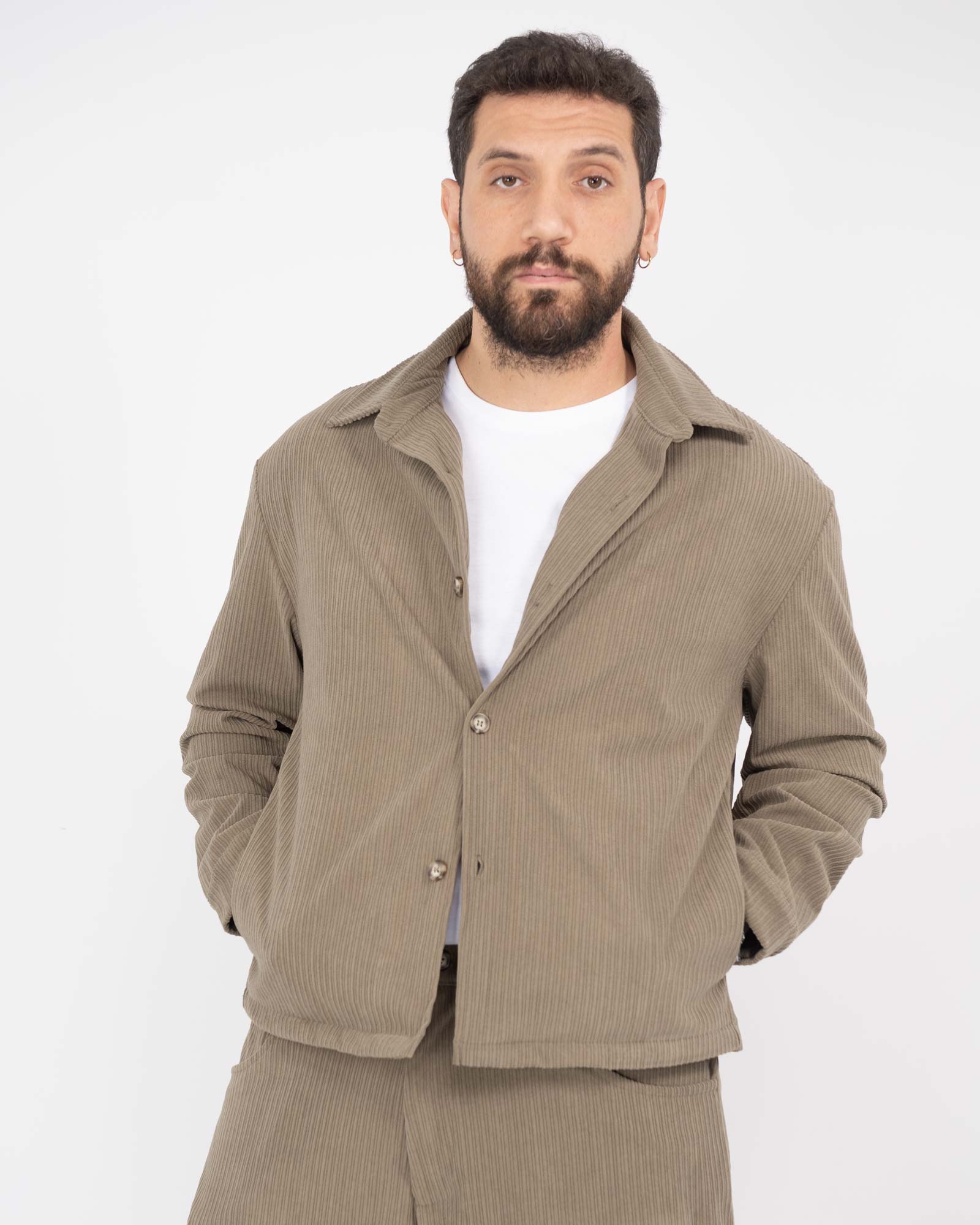 Giacca a camicia boxy fit realizzata in tessuto compatto. Presenta olletto a revers e maniche lunghe con bottone sul polsino. Tasche laterali nelle cuciture e chiusura frontale con abbottonatura. In foto è indossata la taglia XL per altezza 1,85cm e peso 97kg. Produzione made in Italy.
