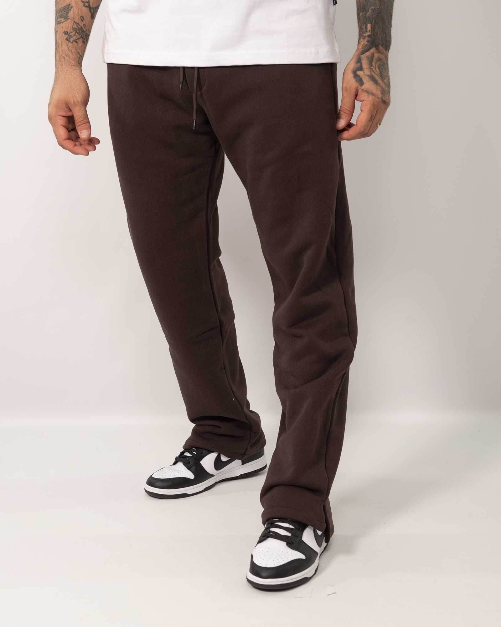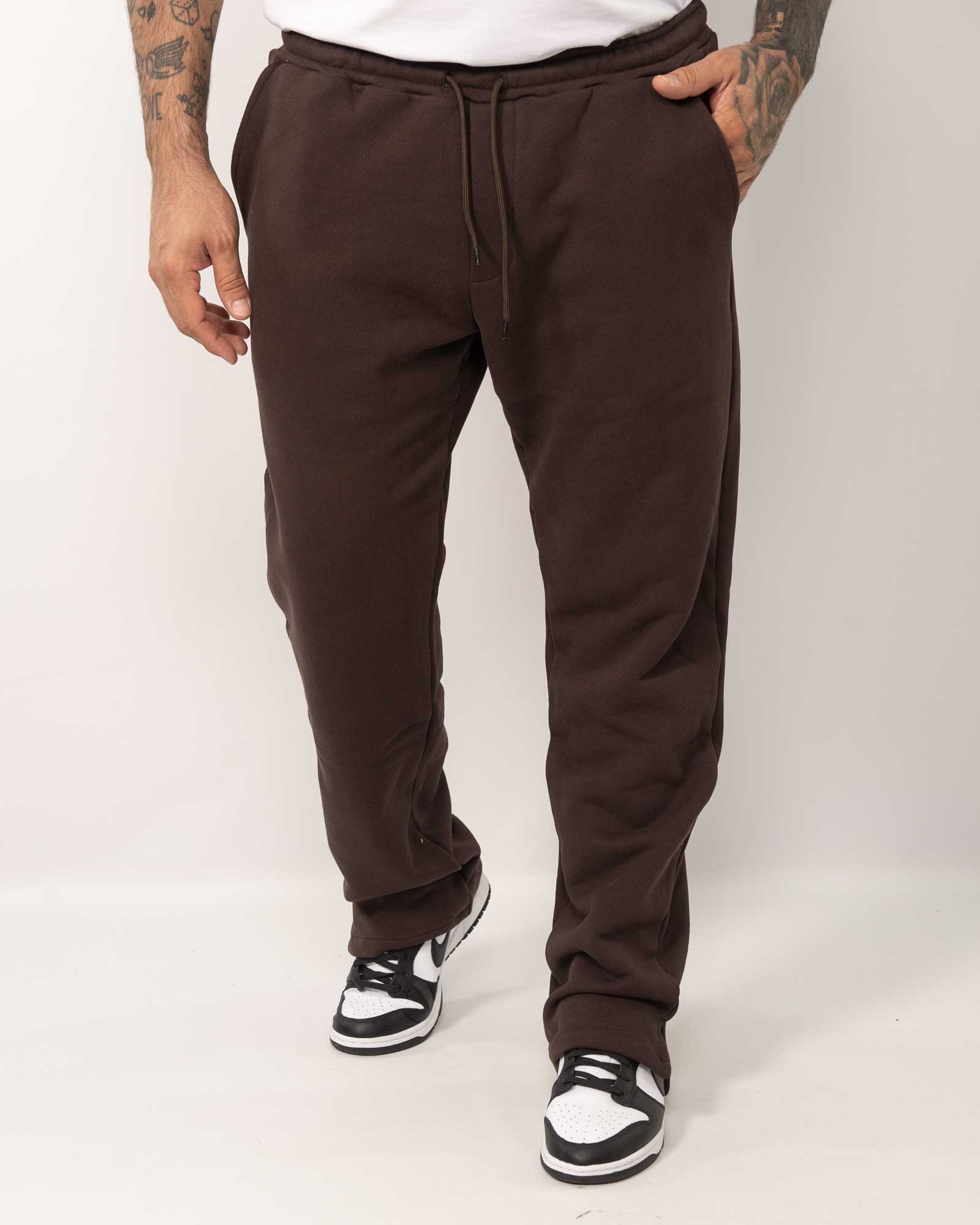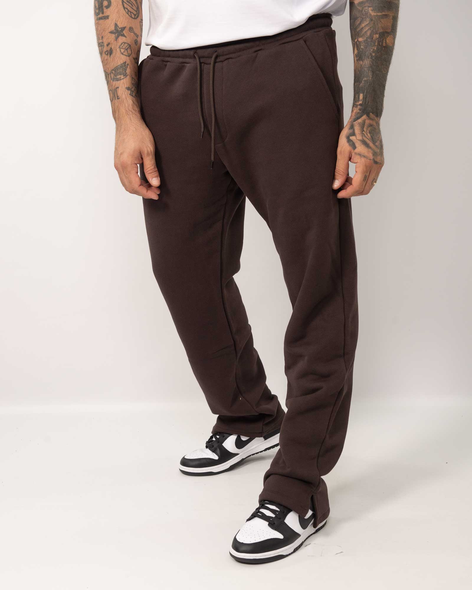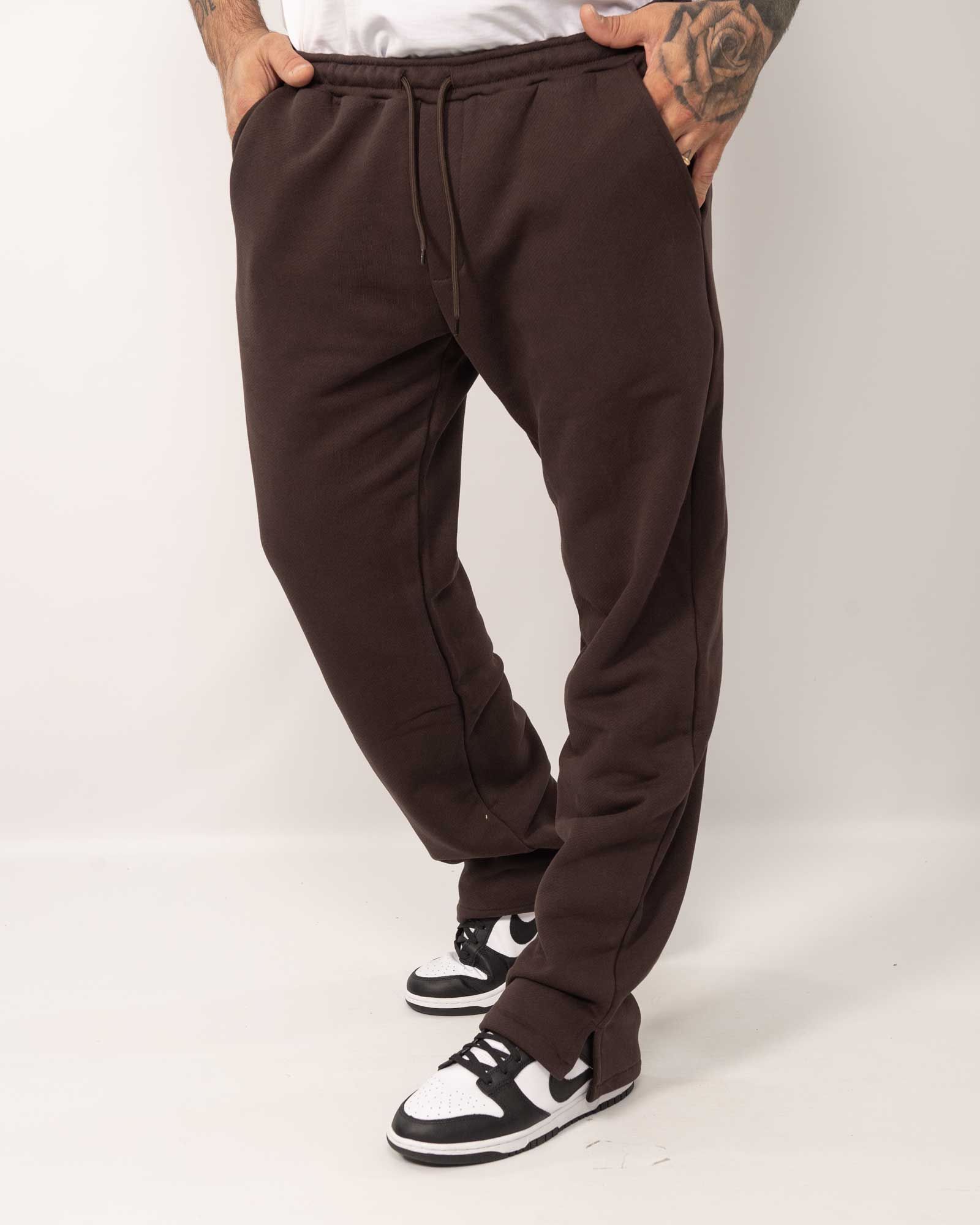 Pantaloni jogger in cotonee con fondo ampio e spaccato sui lati, con vita elasticizzata regolabile con laccio e presenta tasche laterali. In foto è indossata la taglia XL per altezza 1,85cm e peso 97Kg.
