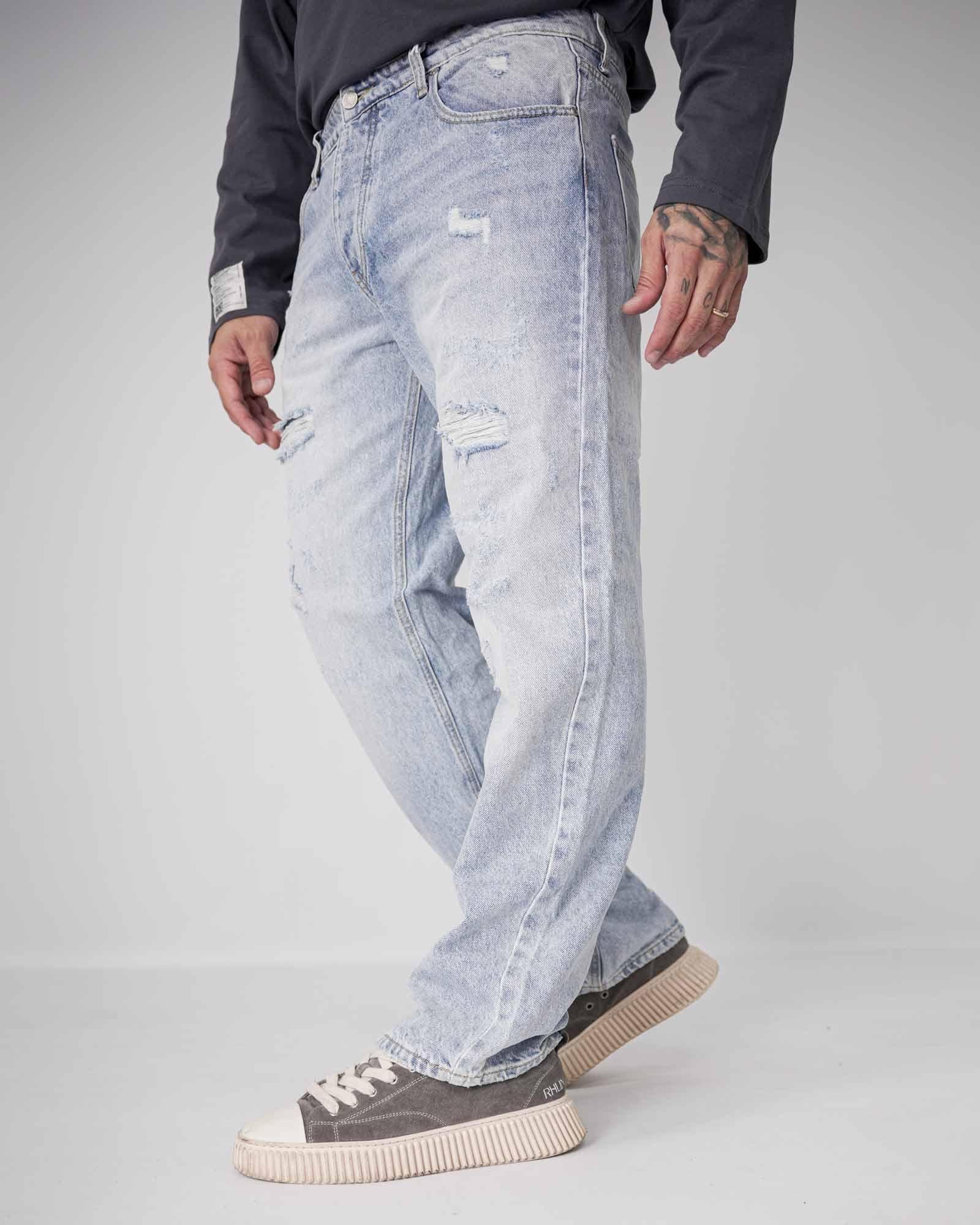 Jeans baggy fit con rotture in denim light blue