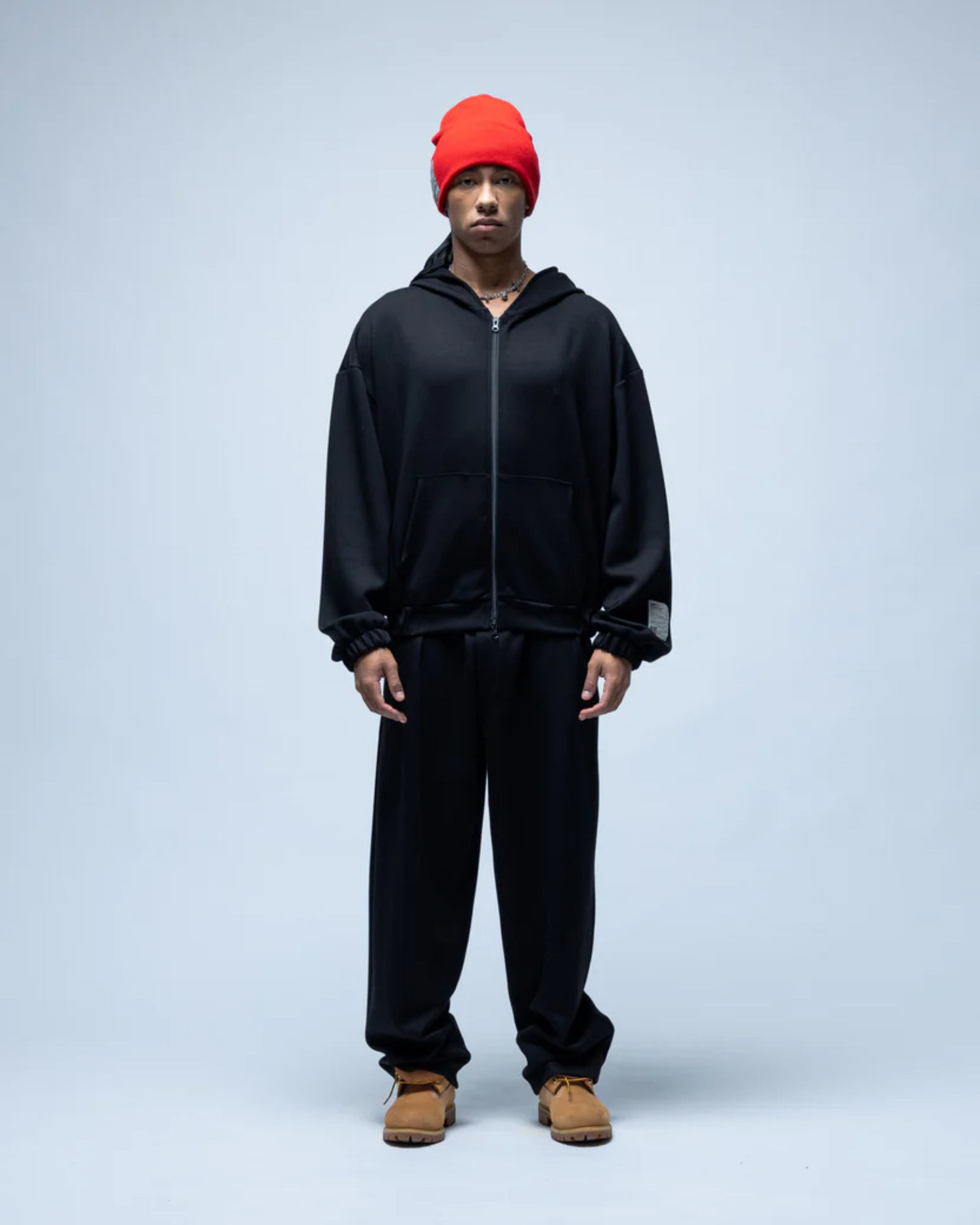Il coordinato Scuba è realizzato in morbido tessuto scuba per sostenere le forme e mantenere una silhouette pulita. Composto da una felpa con zip e pantaloni oversize che possono essere indossati insieme o separatamente, adattandosi al tuo ritmo quotidiano.