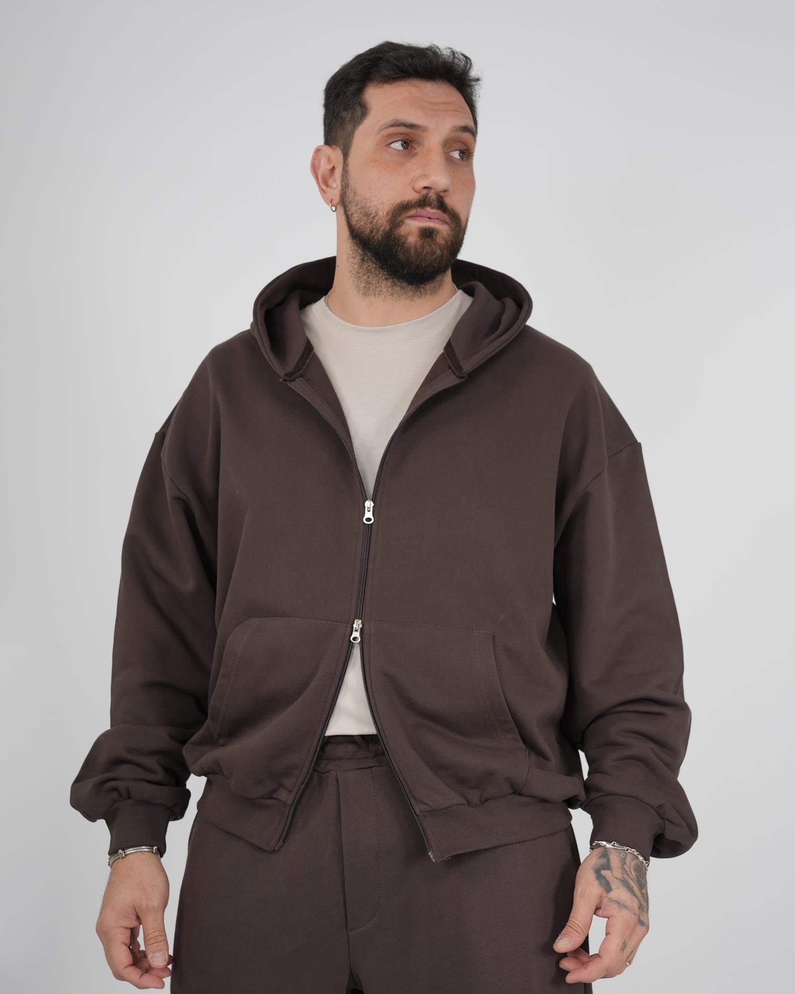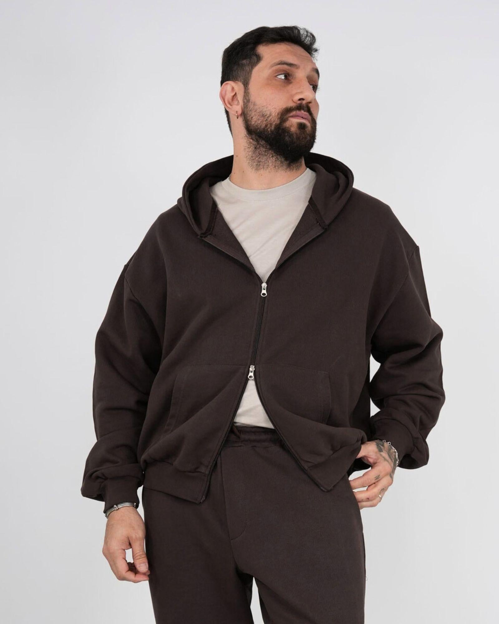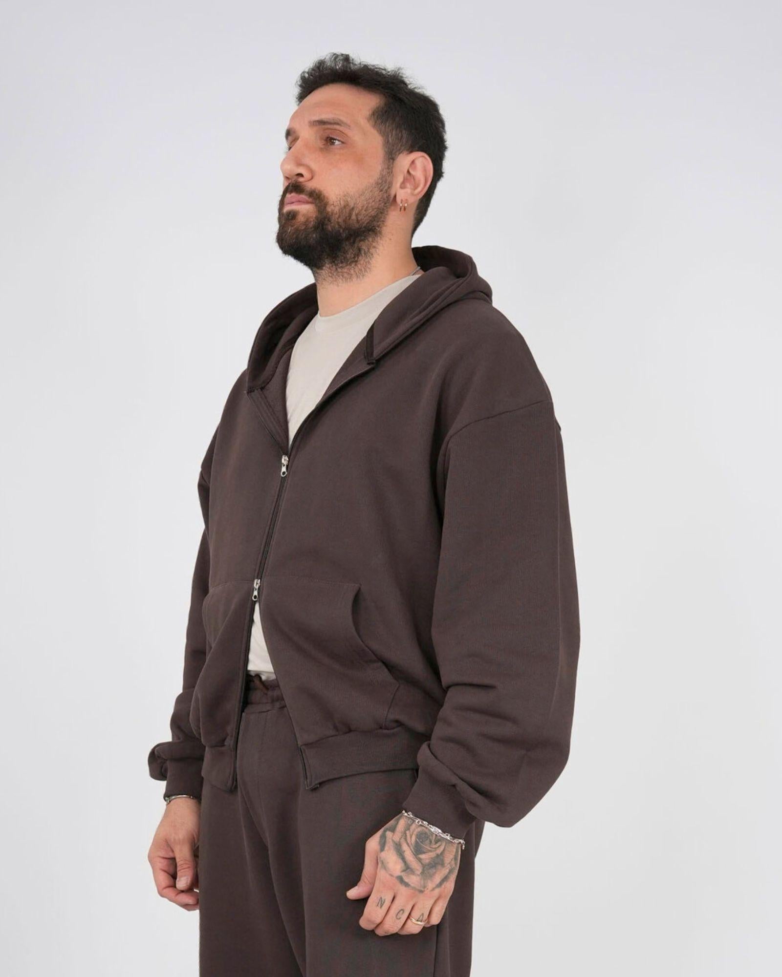 Felpa con cappuccio cropped in cotone, collo con cappuccio, zip con doppio cursore e maniche lunghe. Presenta tasche anteriori a marsupio con finitura a coste. Il modello indossa taglia XL è alto 1,85cm e pesa 97kg.