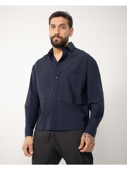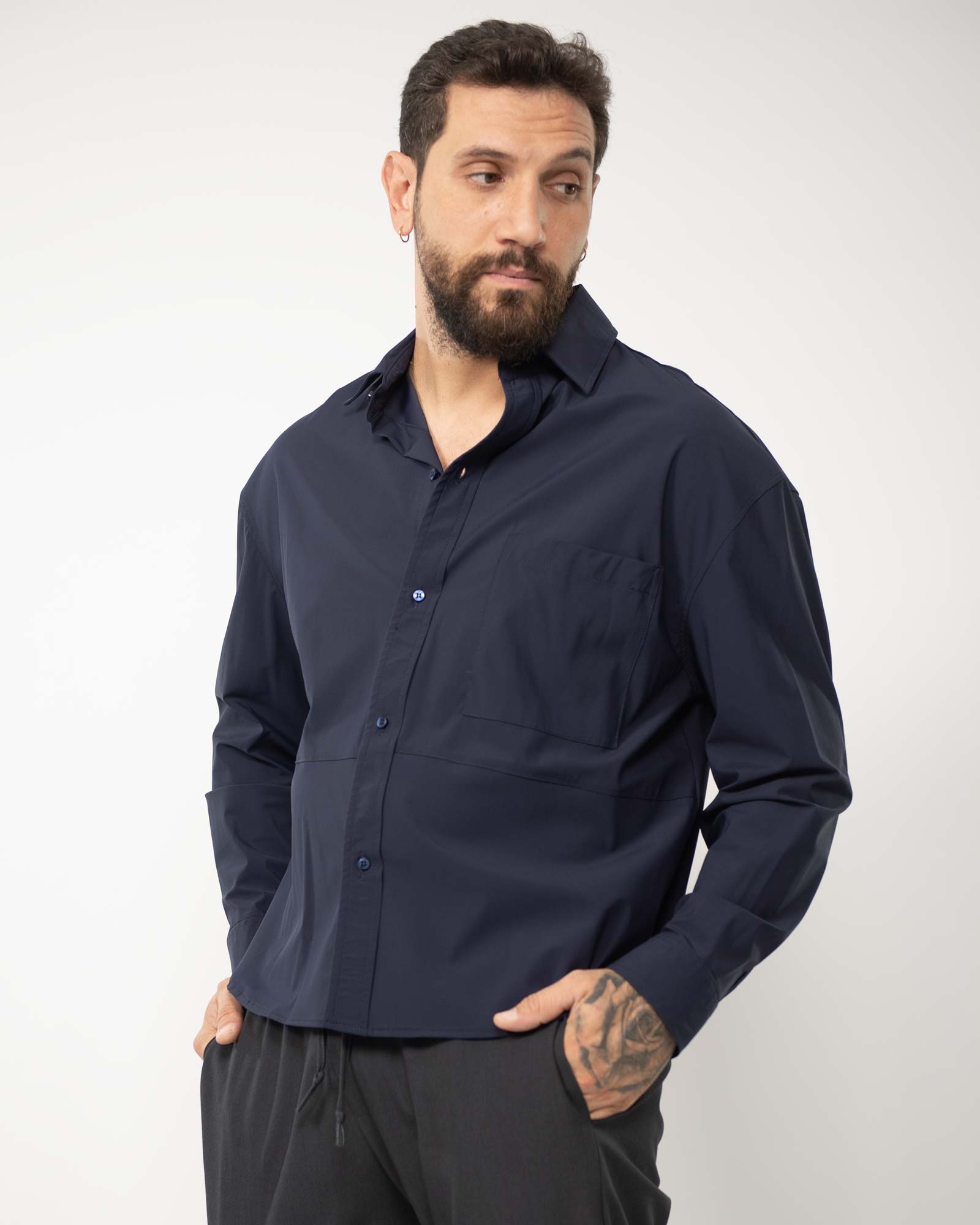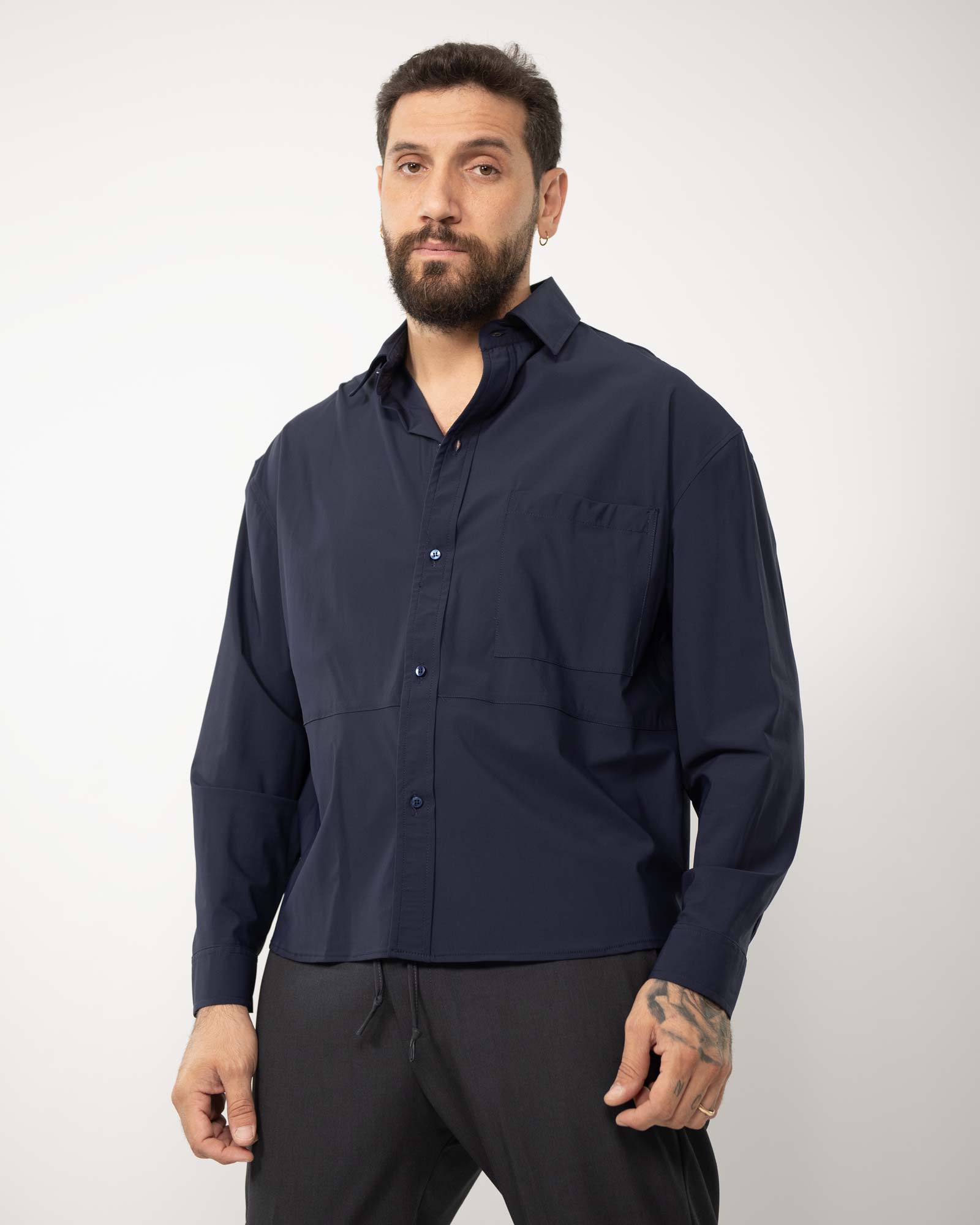 Camicia boxy fit realizzata in tessuto fluido composto da 60% viscosa, 38% poly e 2% elastan. Colletto a revers e maniche lunghe con polsino abbottonato. Chiusura frontale con abbottonatura. In foto è indossata la taglia L per latezza 1.85cm e peso 97kg.