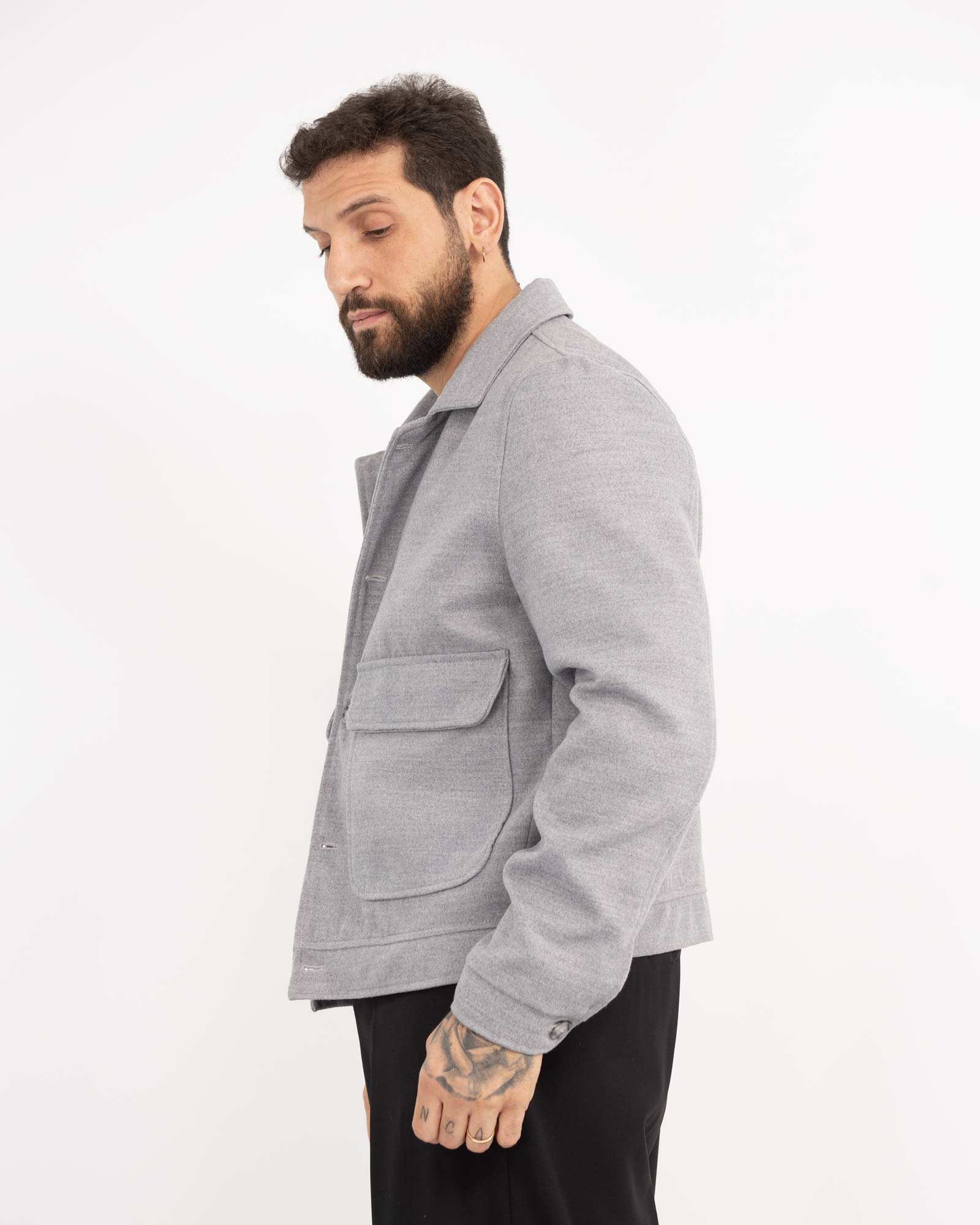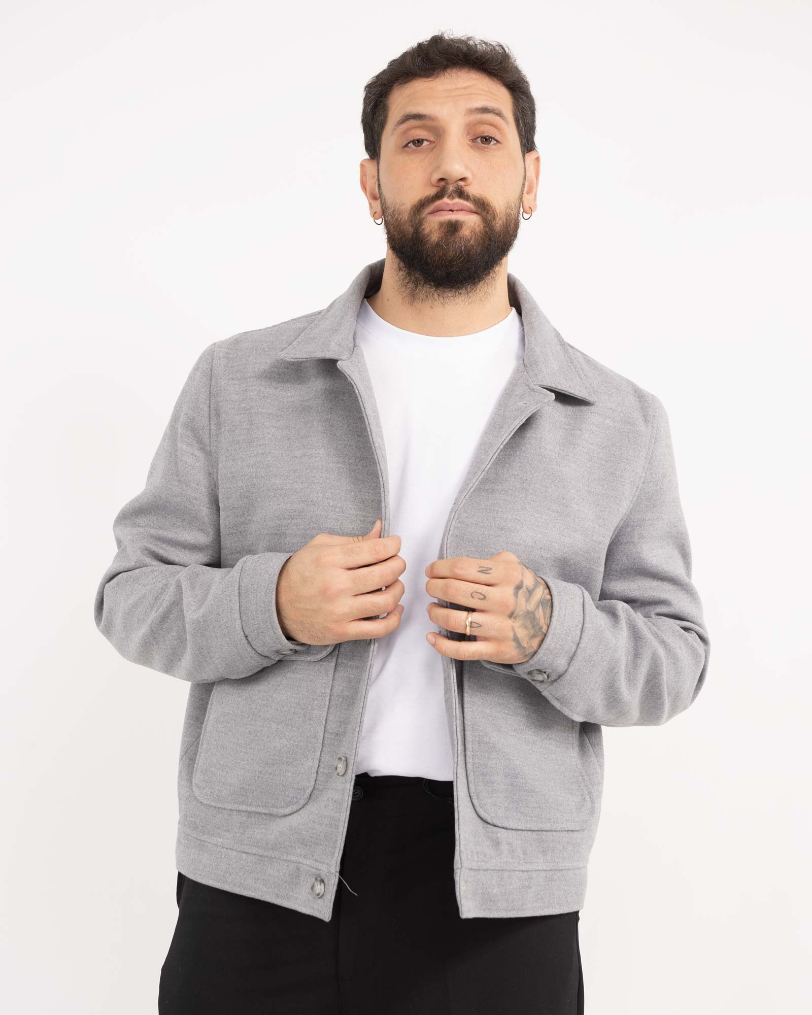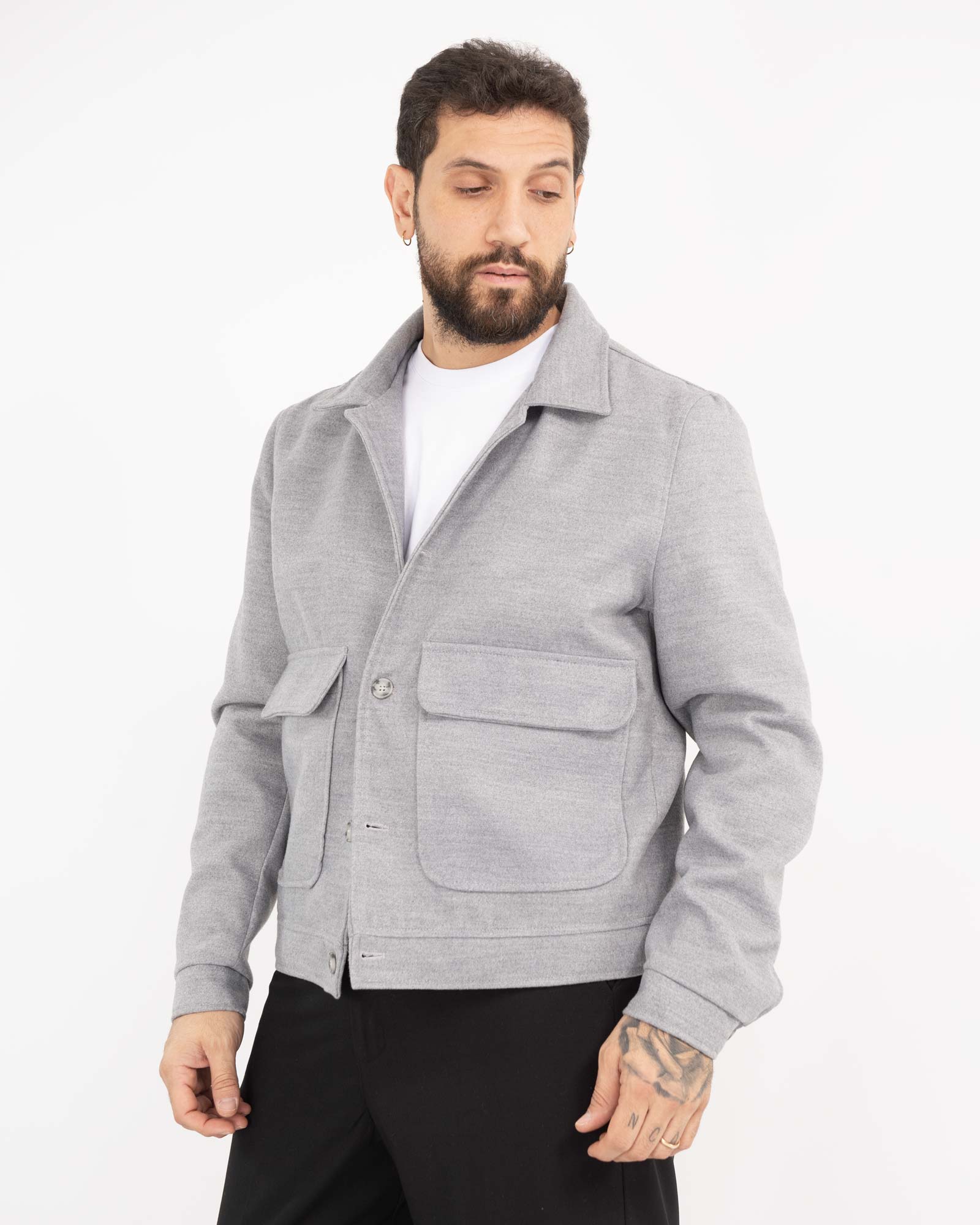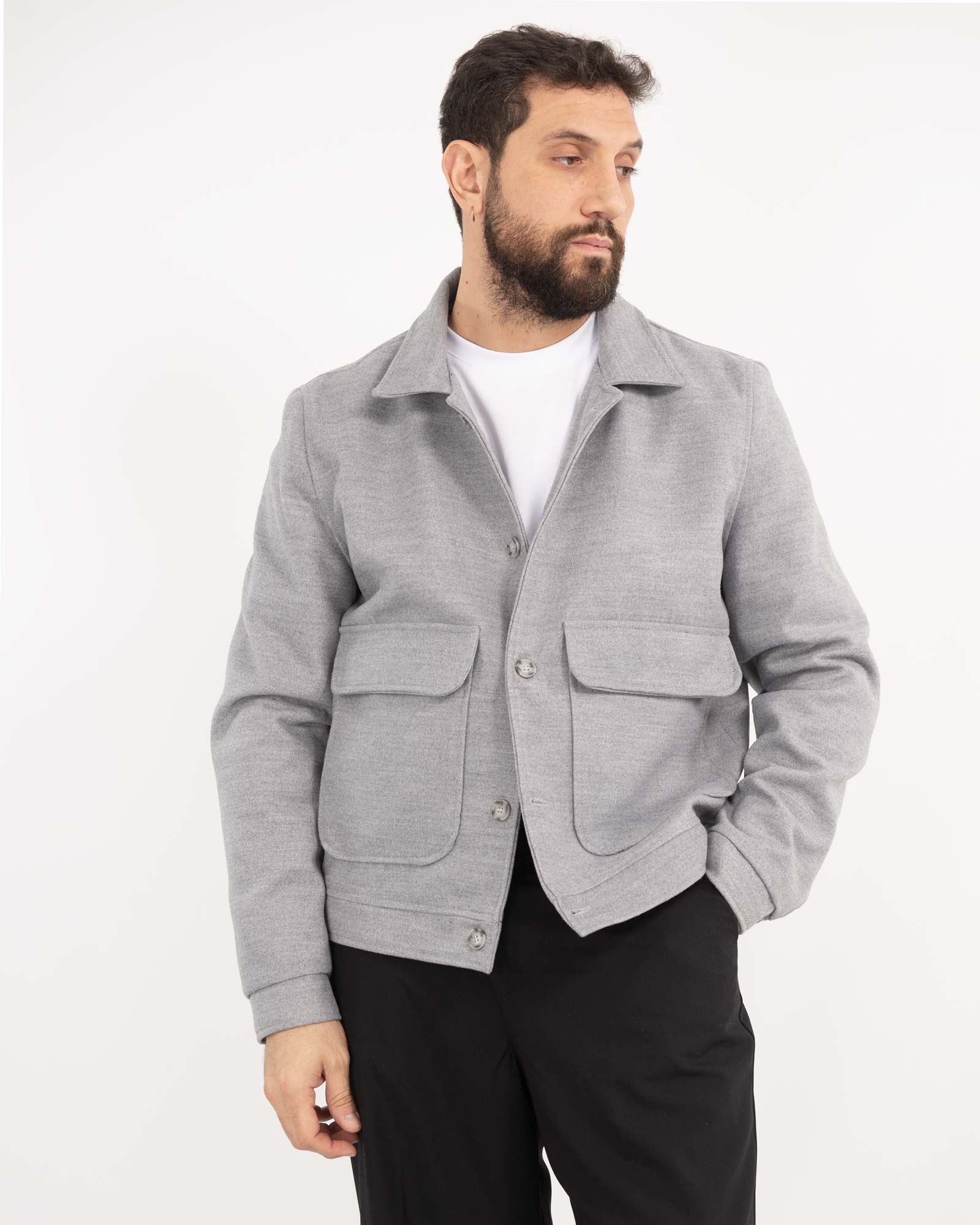 Cappotto corto in panno con abbottonatura frontale a bottoni e tasconi applicati sul davanti. La vestibilità regular fit offre una linea comoda e pulita, perfetta per completare diversi tipi di outfit. Il modello in foto è alto 1,85 m, pesa 97 kg e indossa la taglia XXL. Produzione Made in Italy.