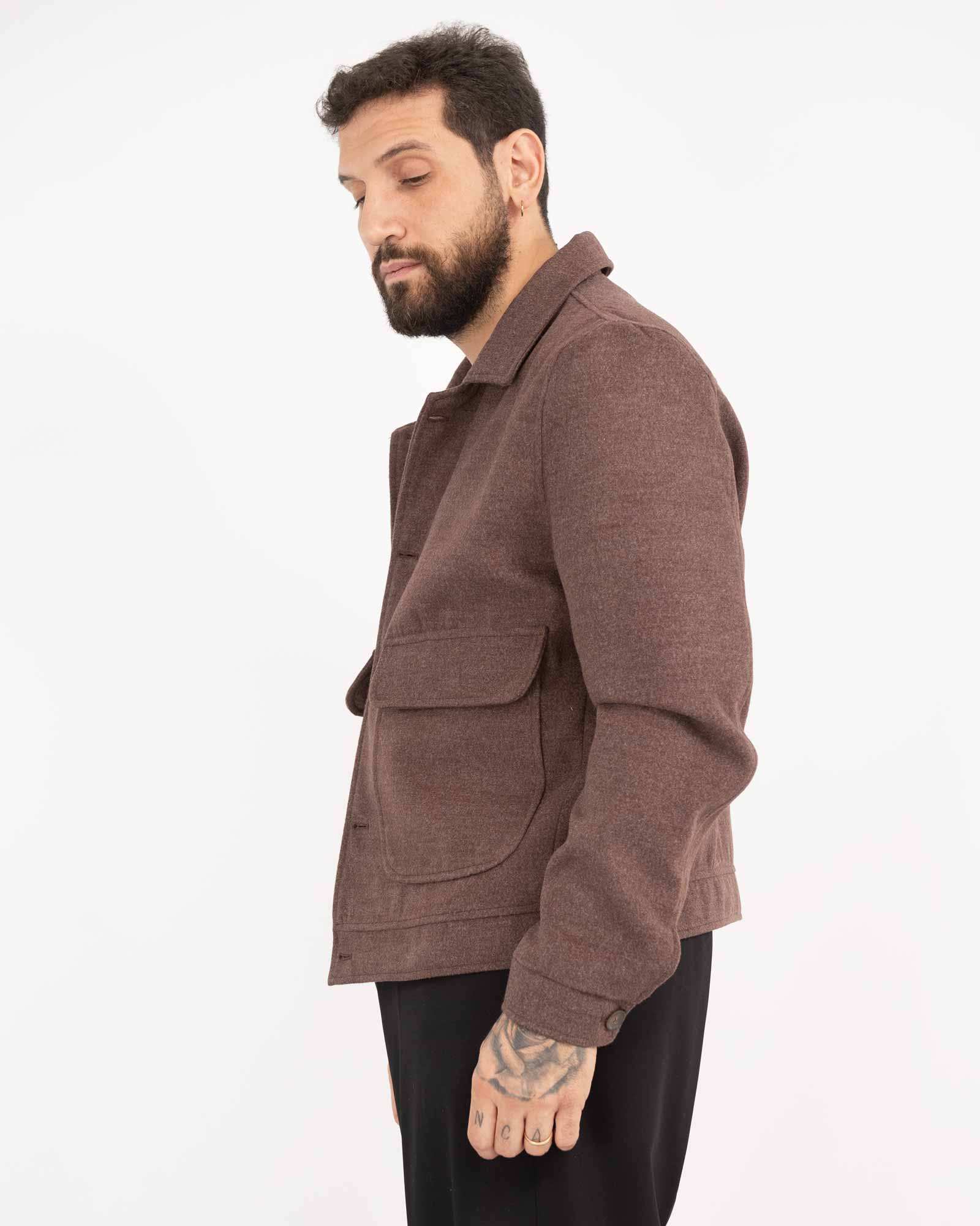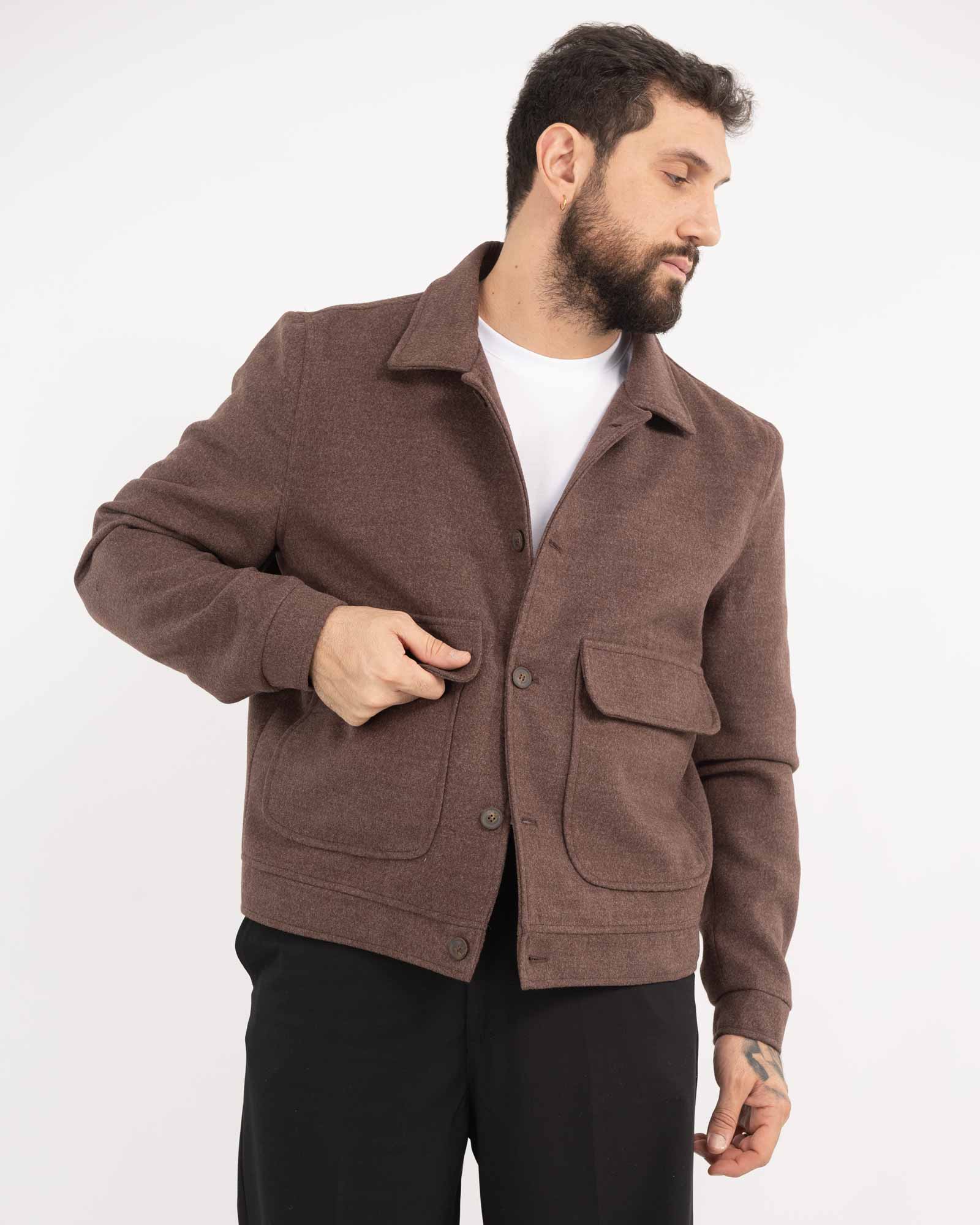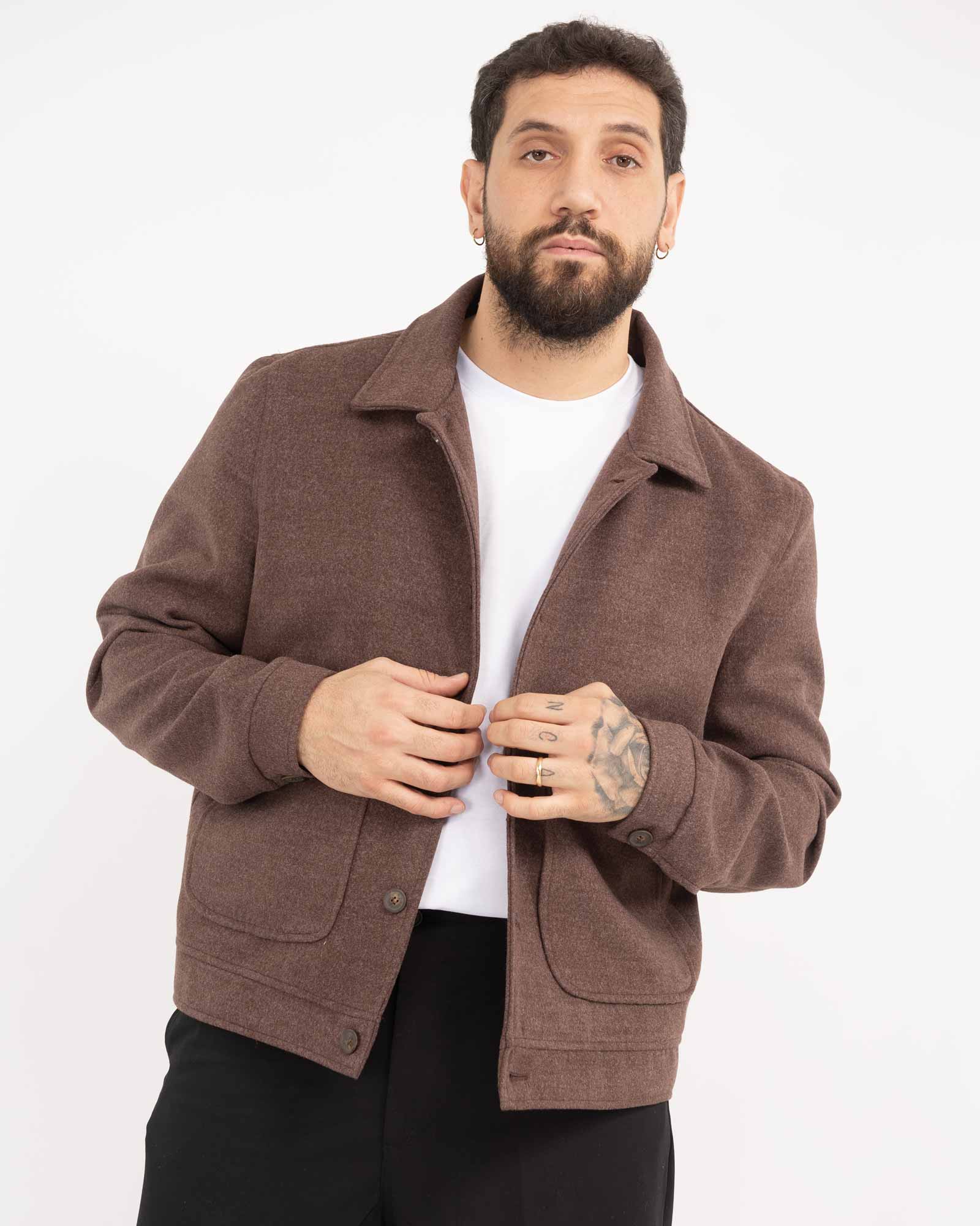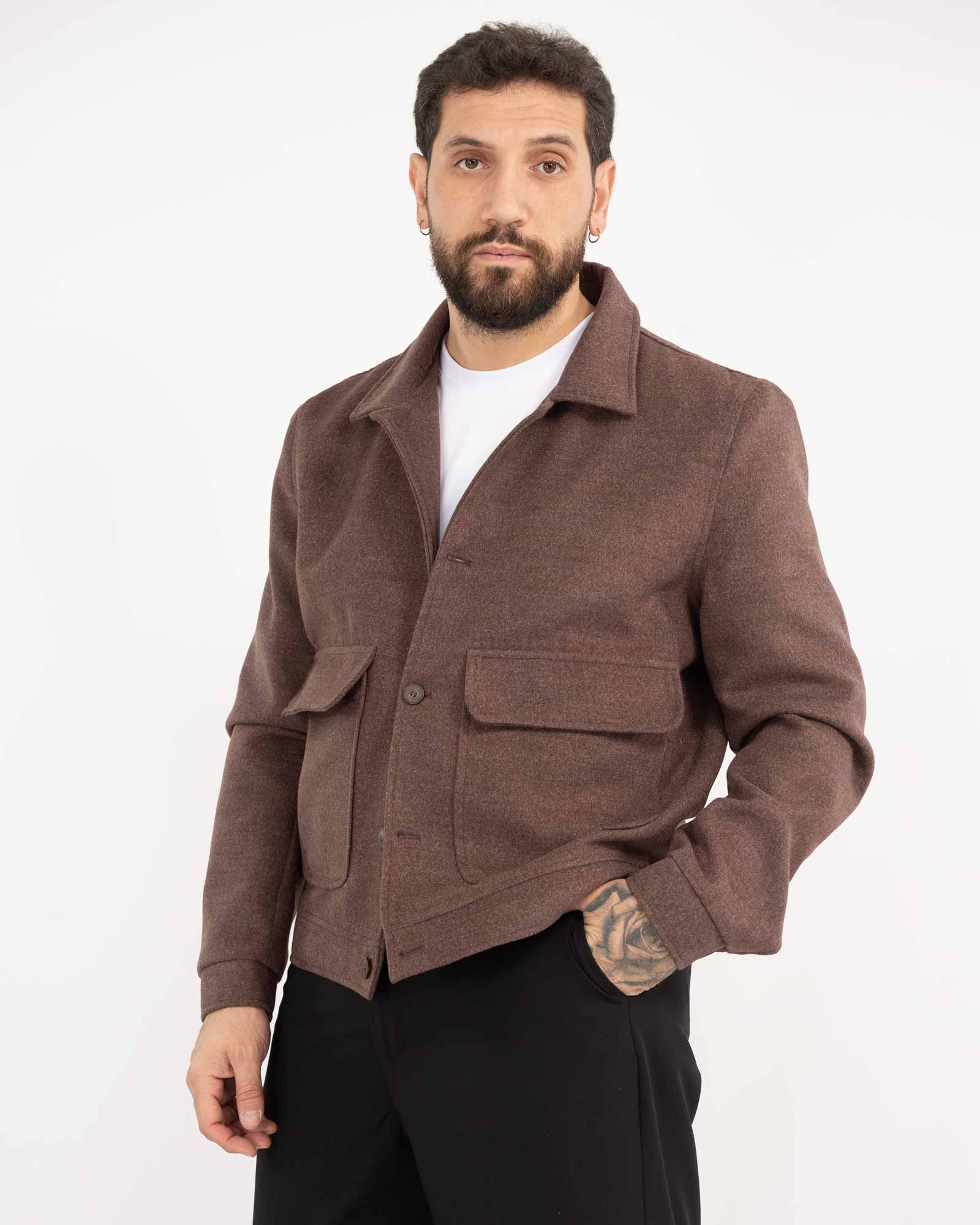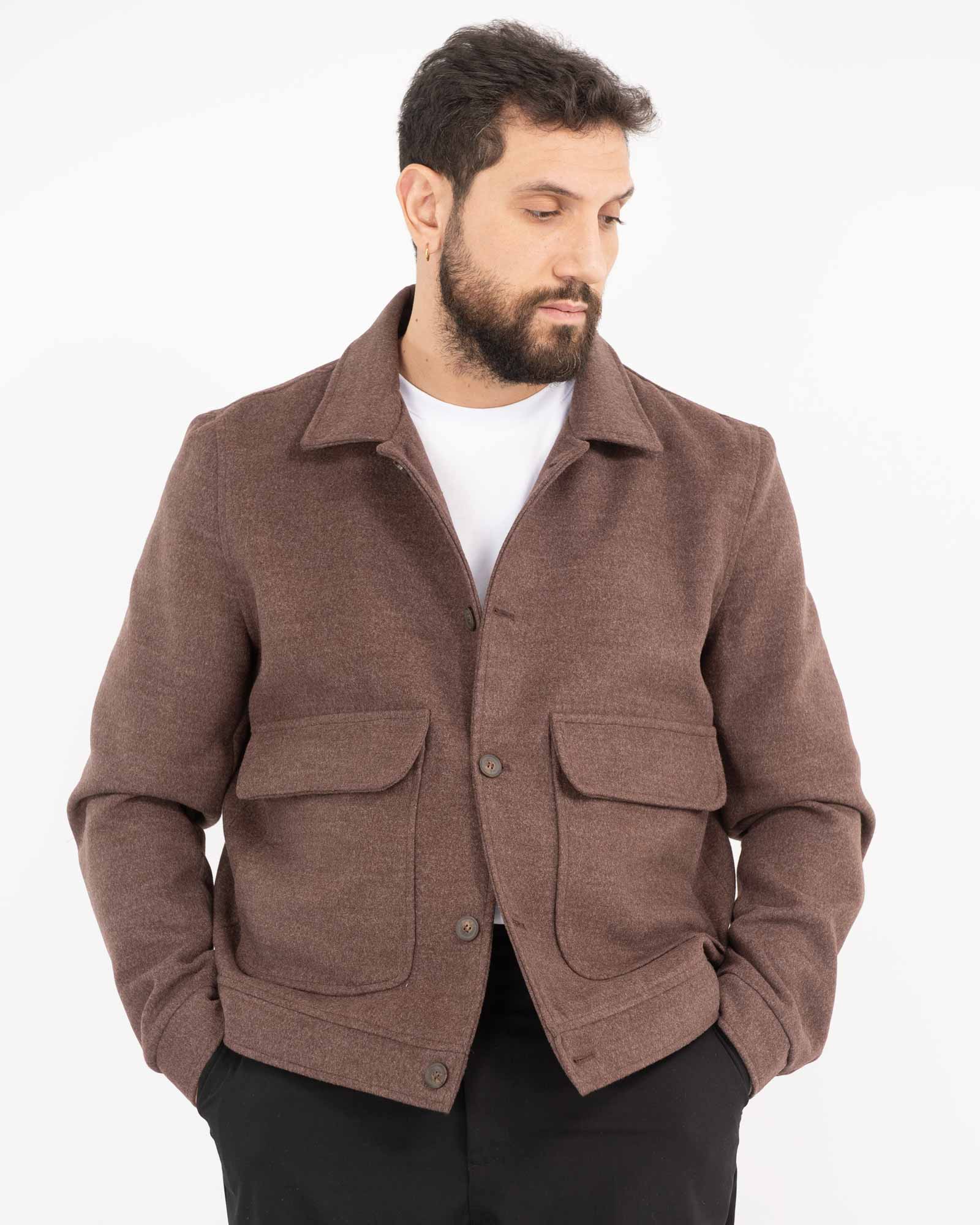 Cappotto corto in panno con abbottonatura frontale a bottoni e tasconi applicati sul davanti. La vestibilità regular fit offre una linea comoda e pulita, perfetta per completare diversi tipi di outfit. Il modello in foto è alto 1,85 m, pesa 97 kg e indossa la taglia XXL. Produzione Made in Italy.