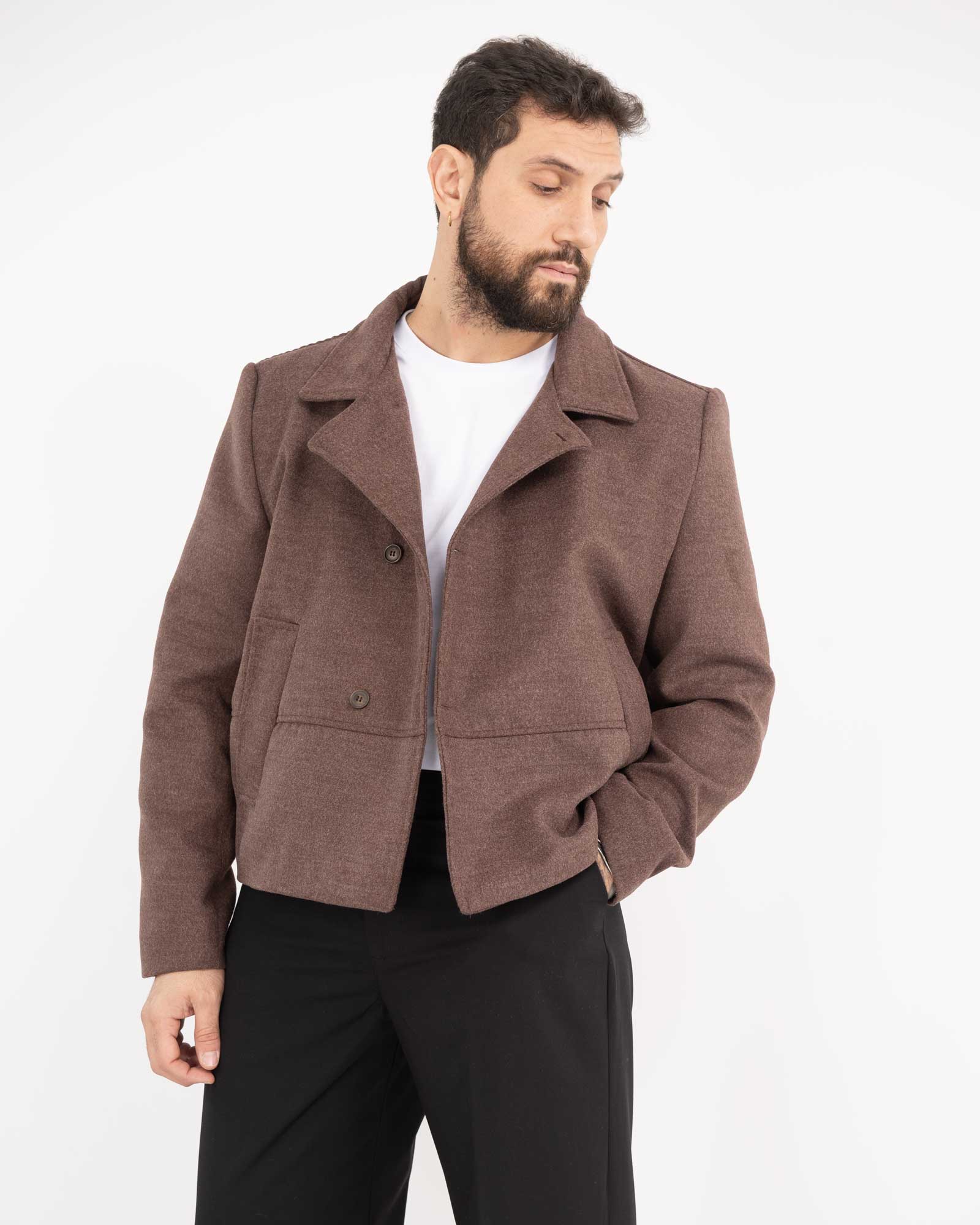 Cappotto cropped fit moro