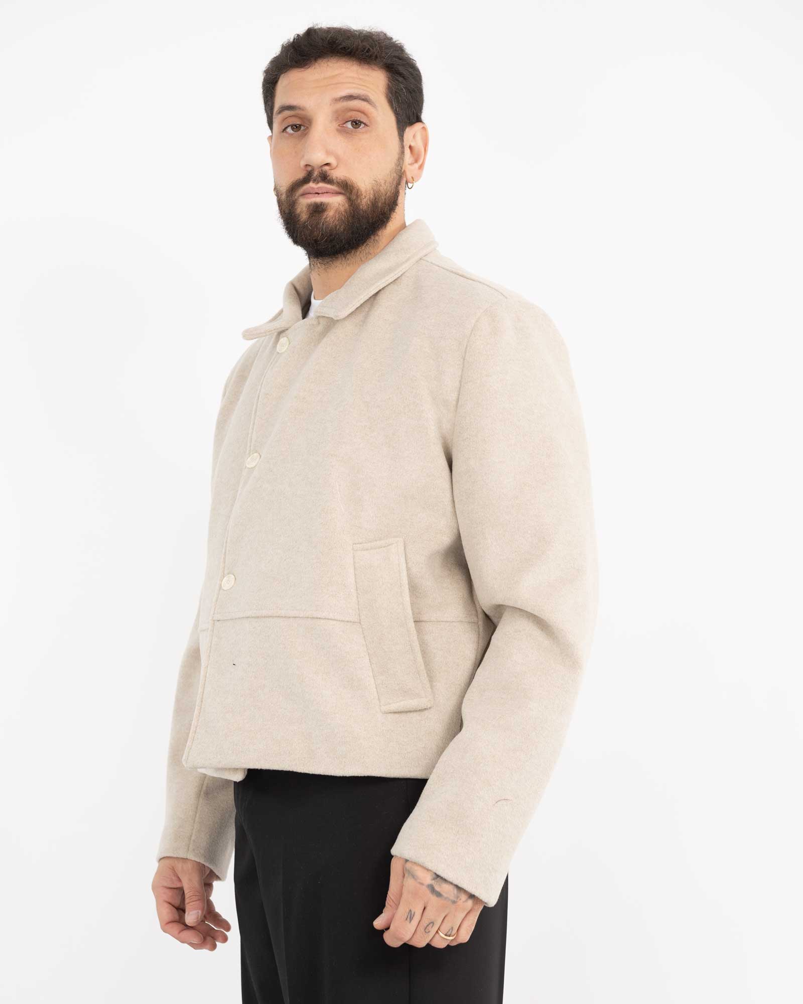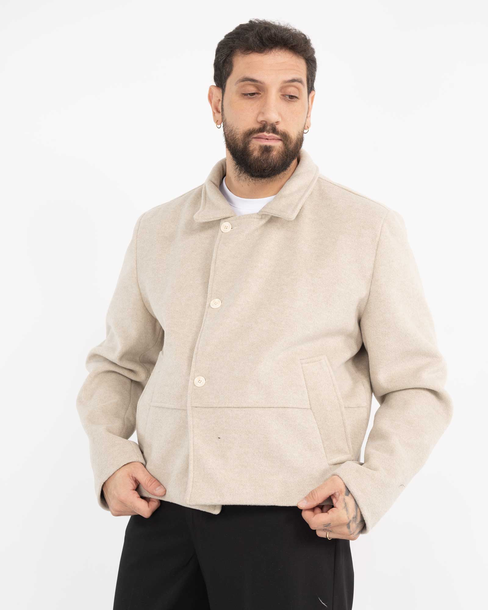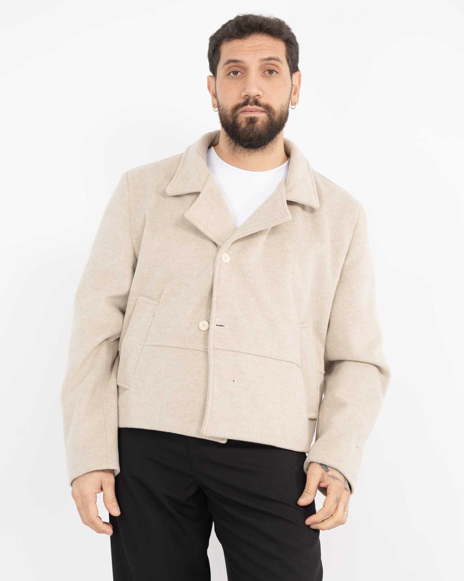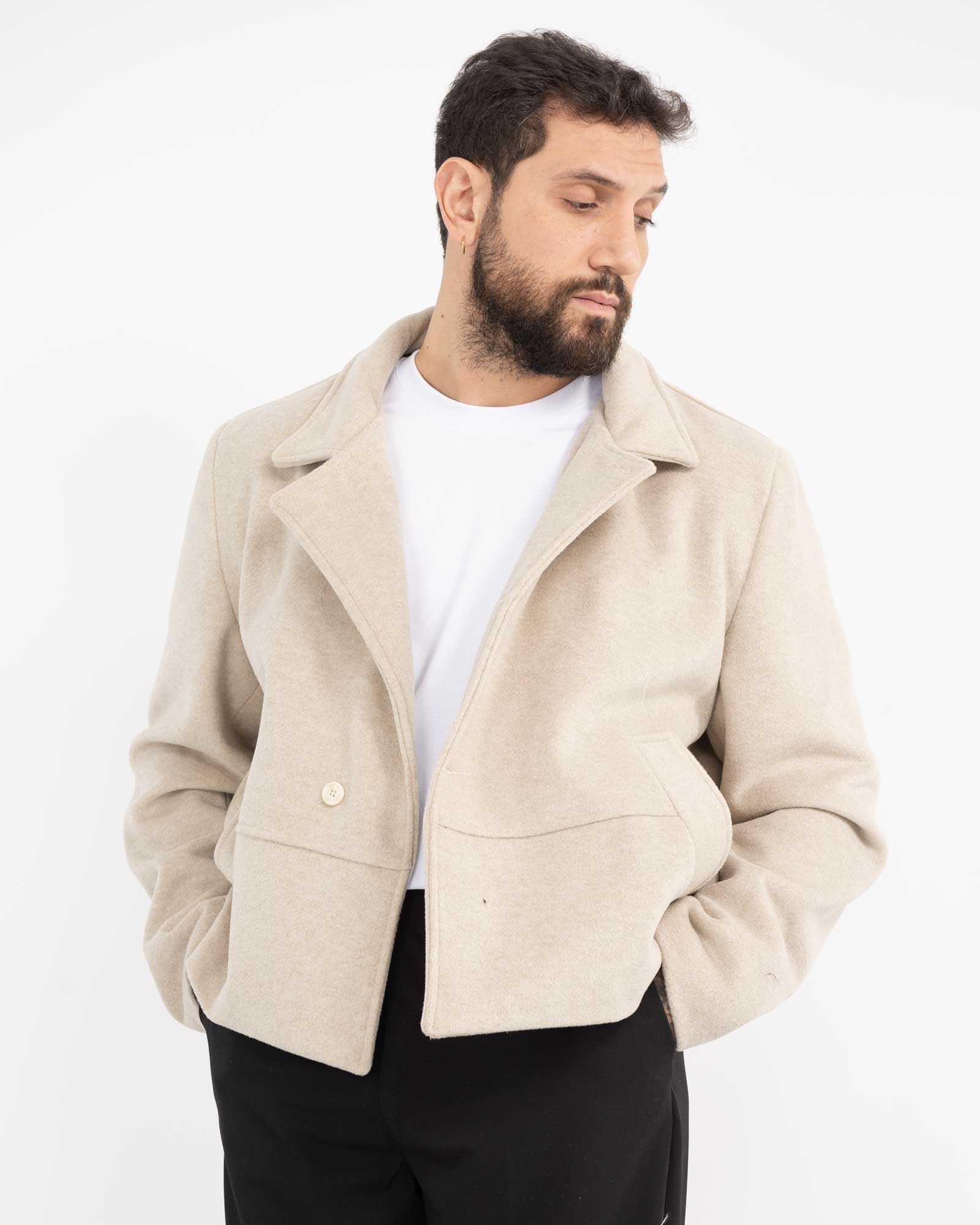 Cappotto cropped fit con abbottonatura frontale a bottoni, tasche laterali e colletto classico. La vestibilità corta dona un look moderno e deciso, mantenendo una linea pulita e versatile. Il modello in foto è alto 1,85 m, pesa 97 kg e indossa la taglia XXL. Produzione Made in Italy.