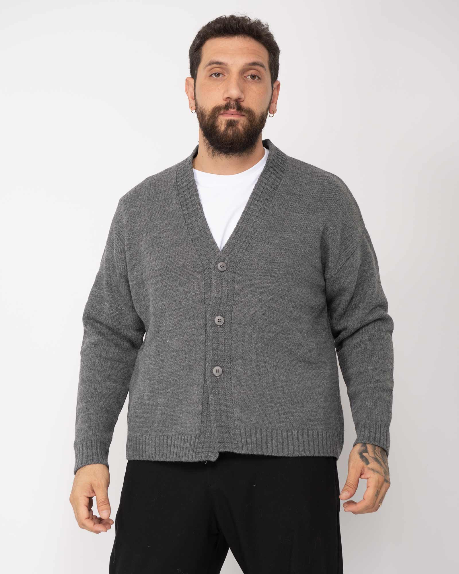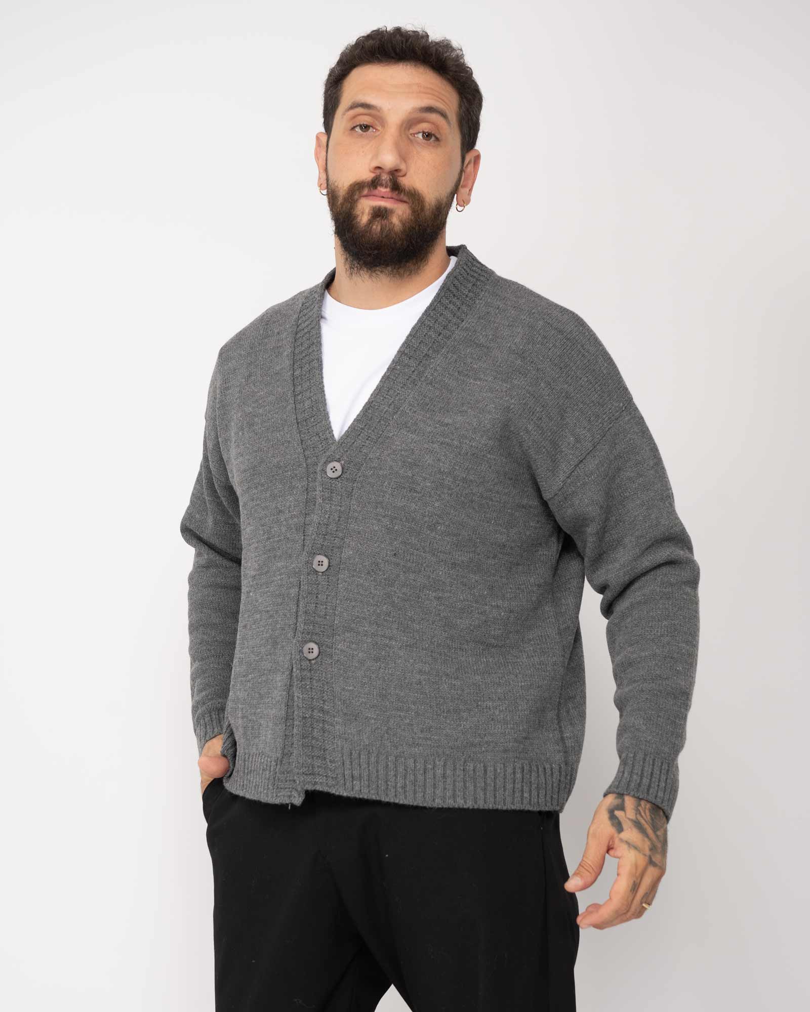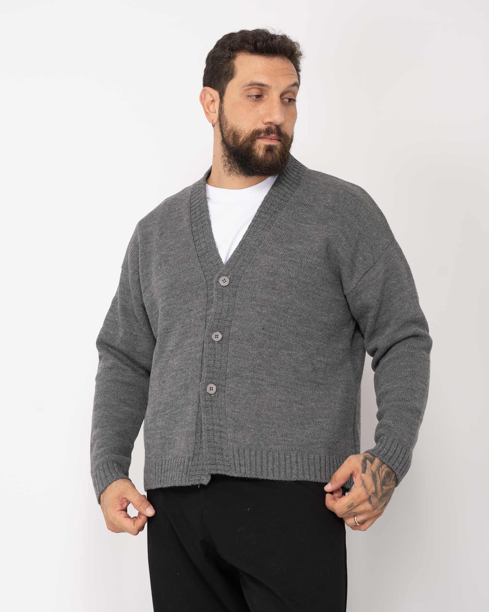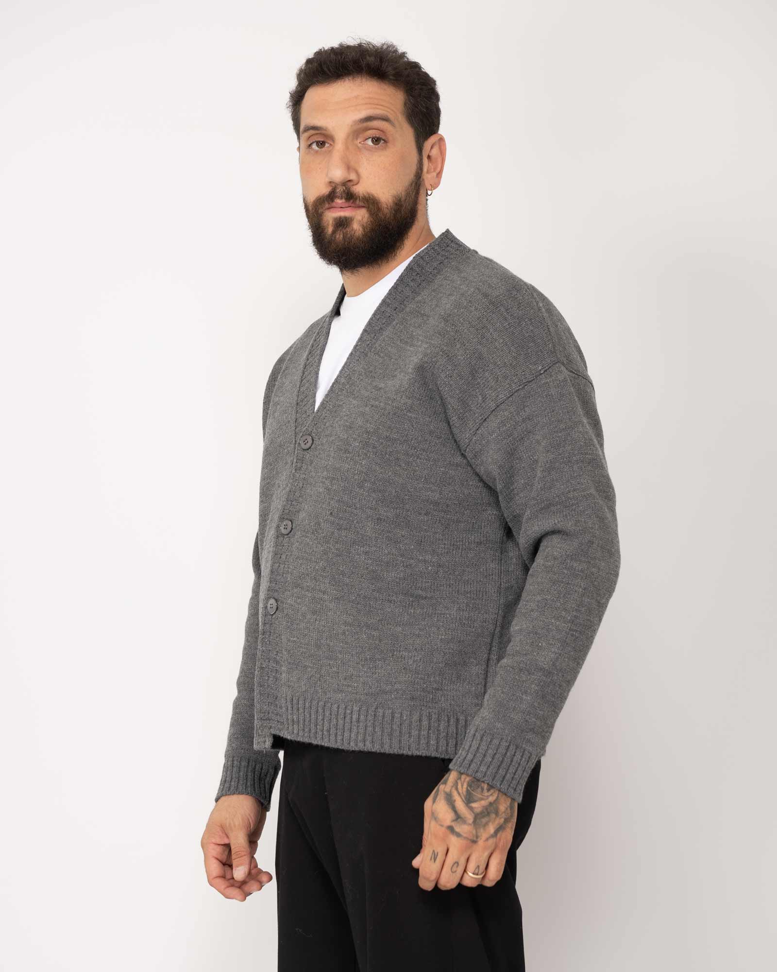 Cardigan cropped rasato grigio scuro