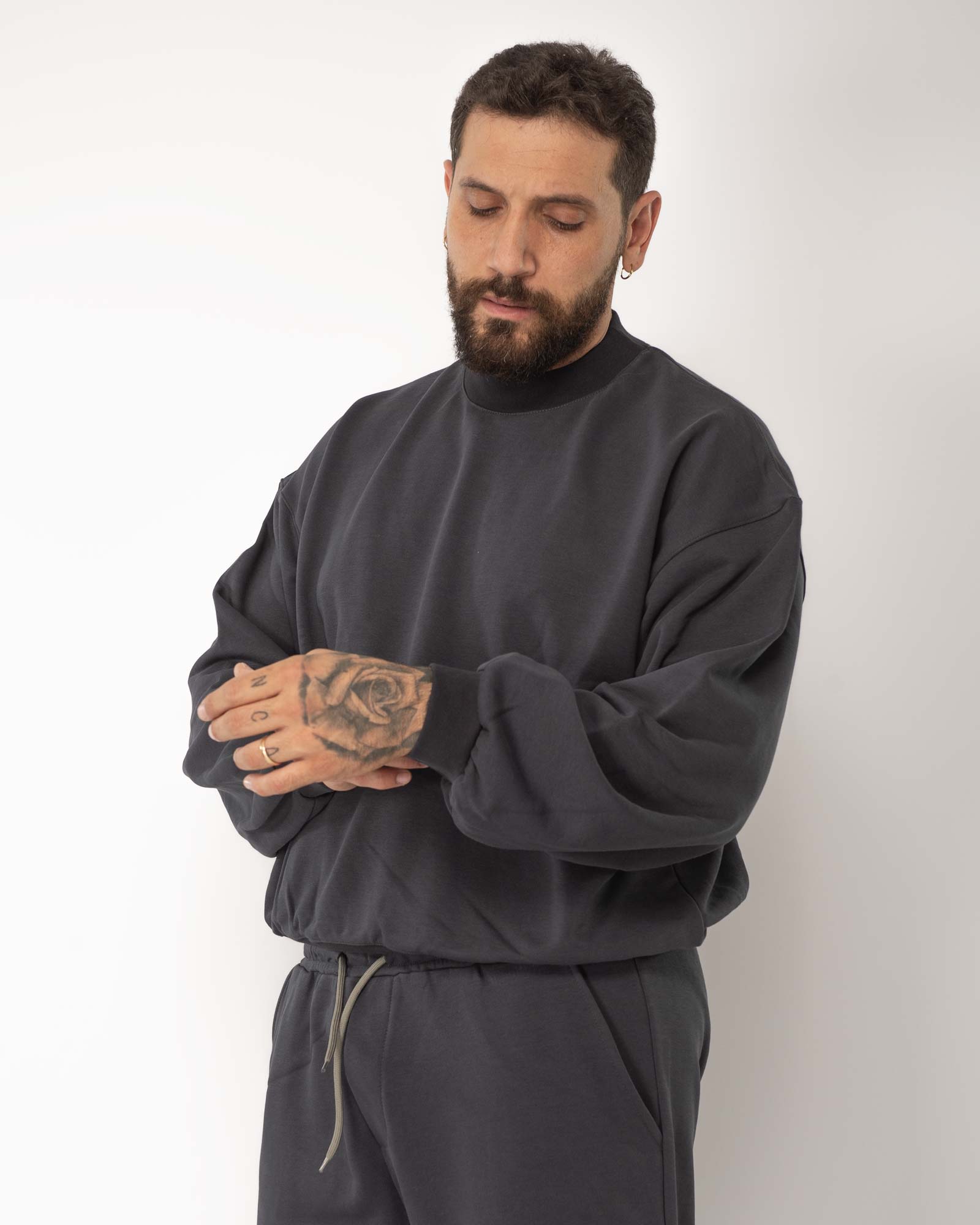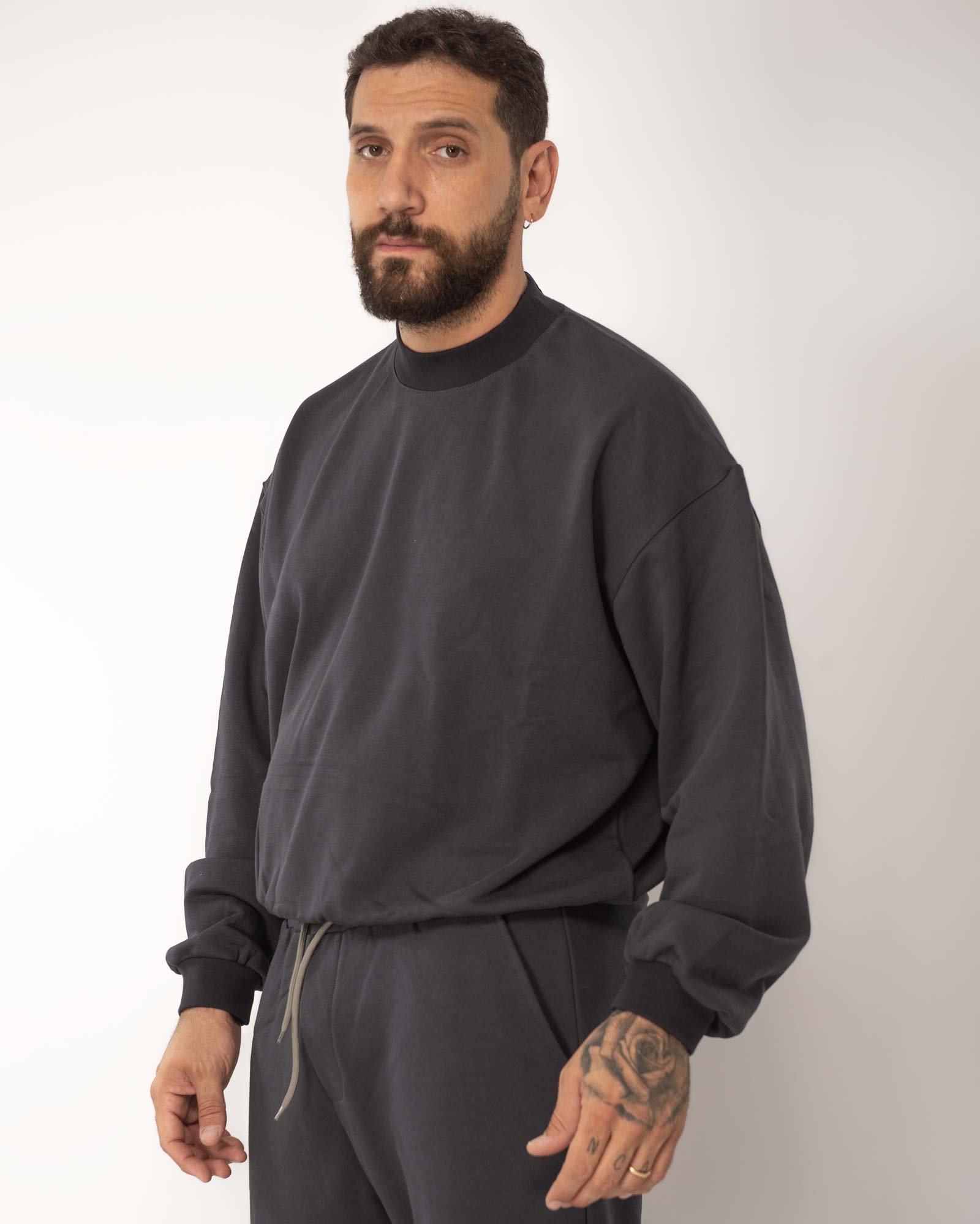 Felpa cropped girocollo piombo