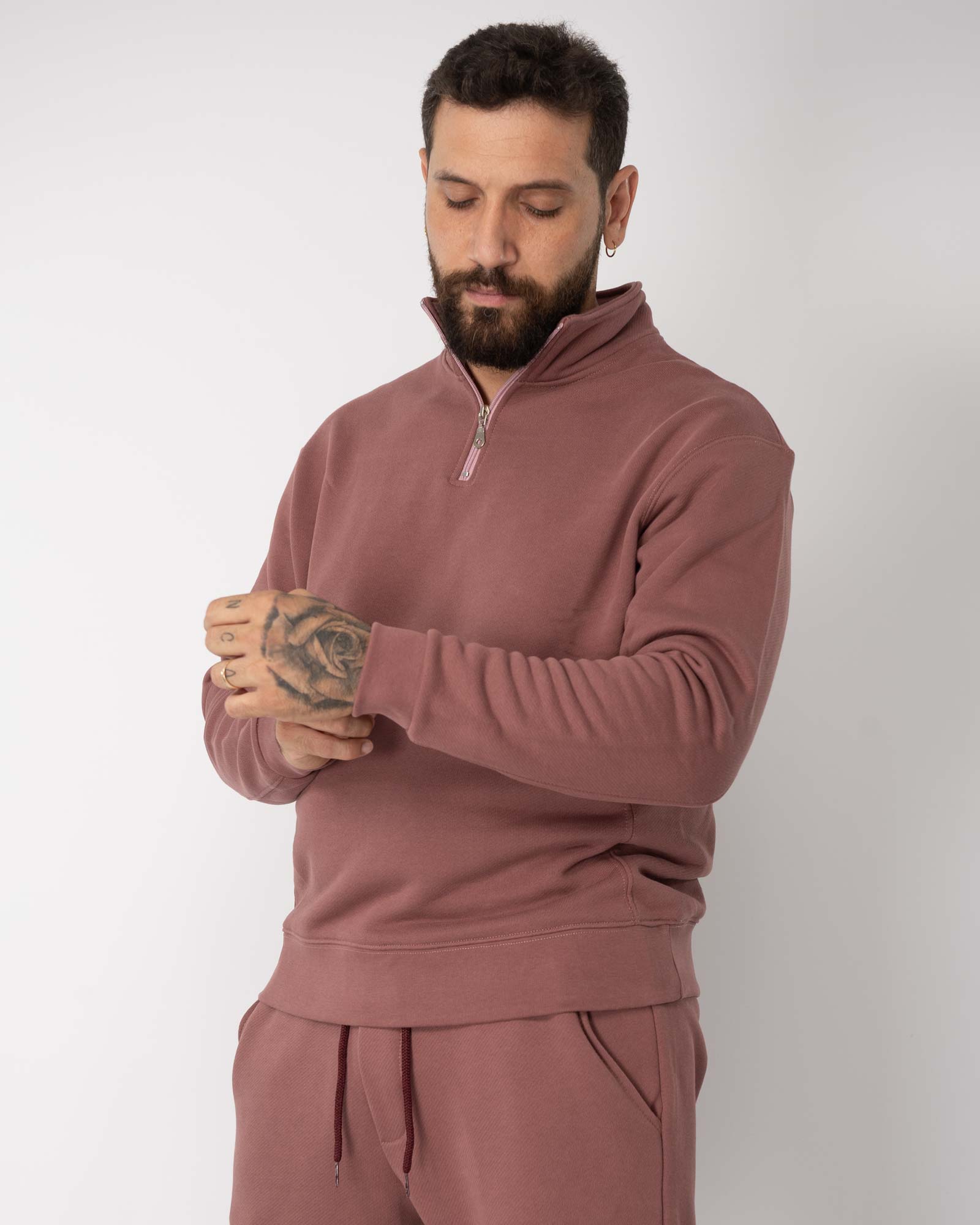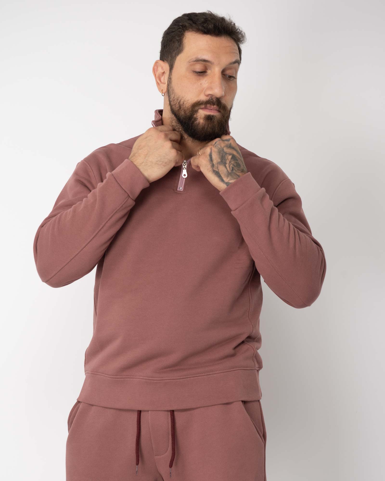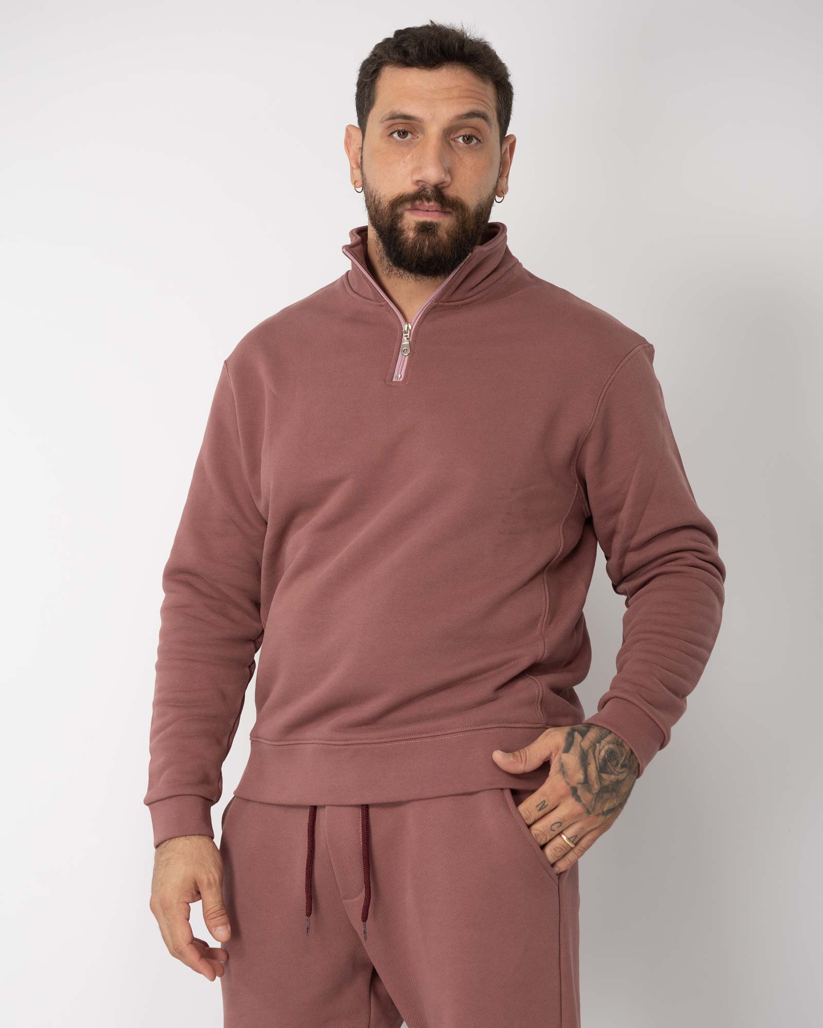 Felpa regular fit mezza zip cipolla
