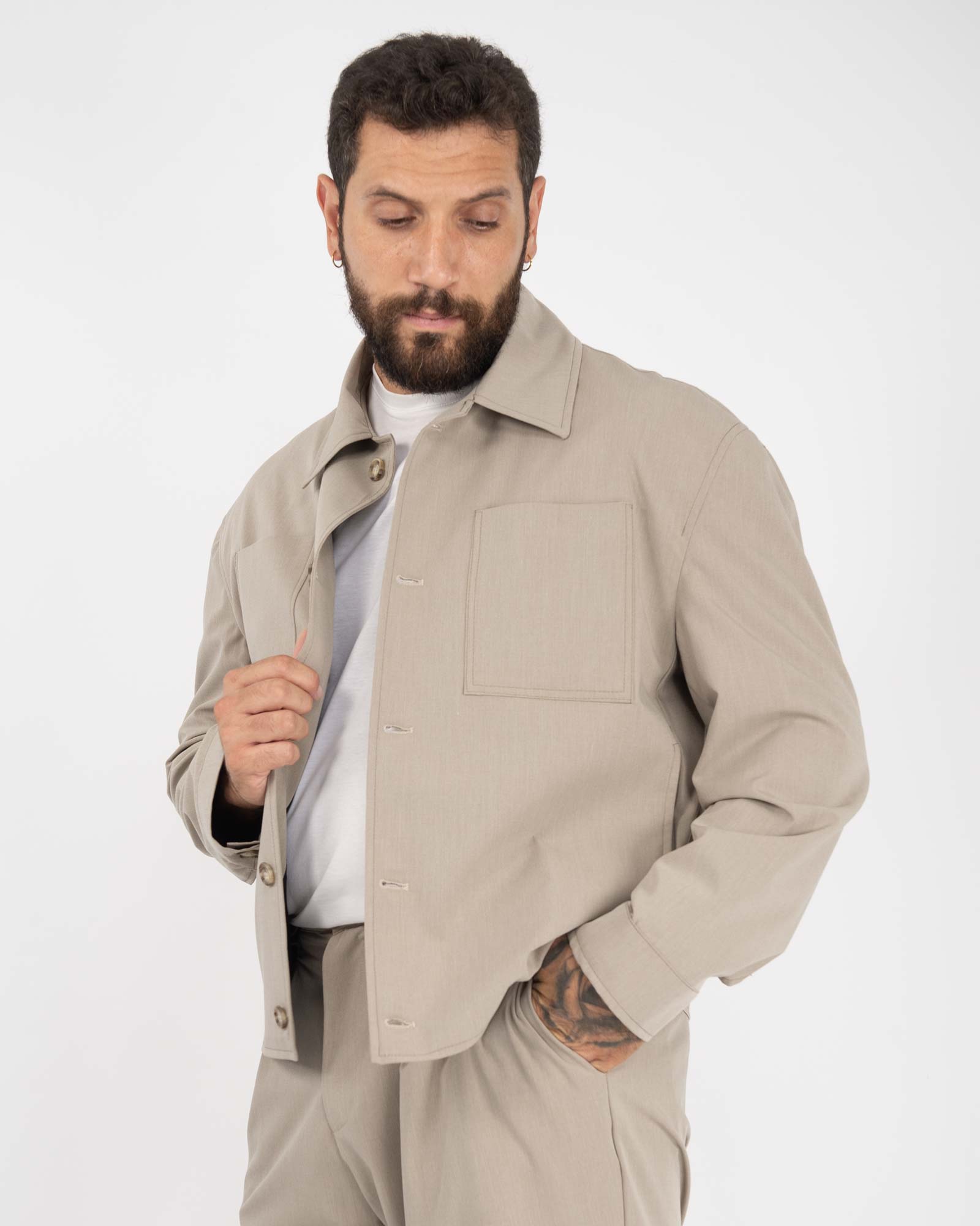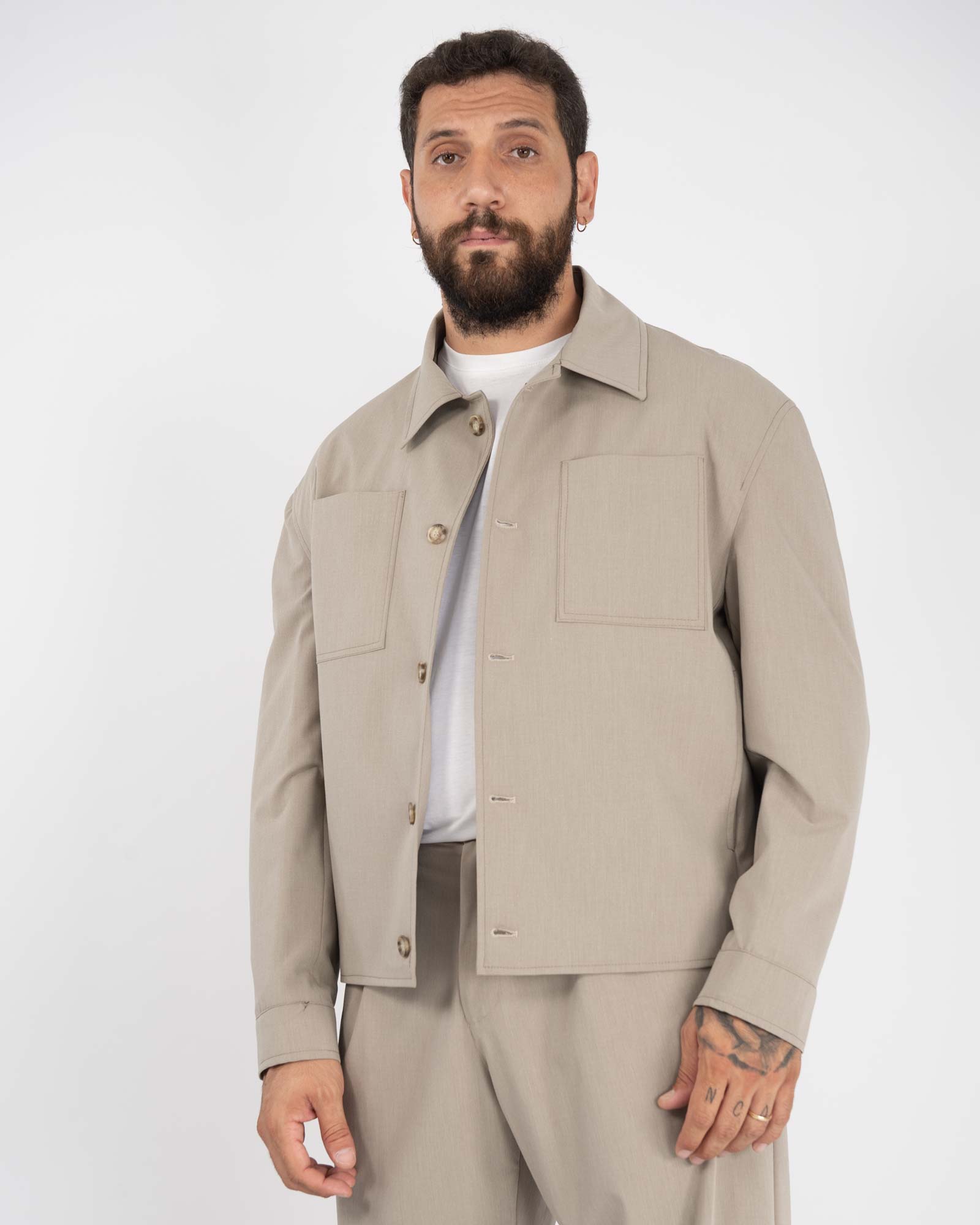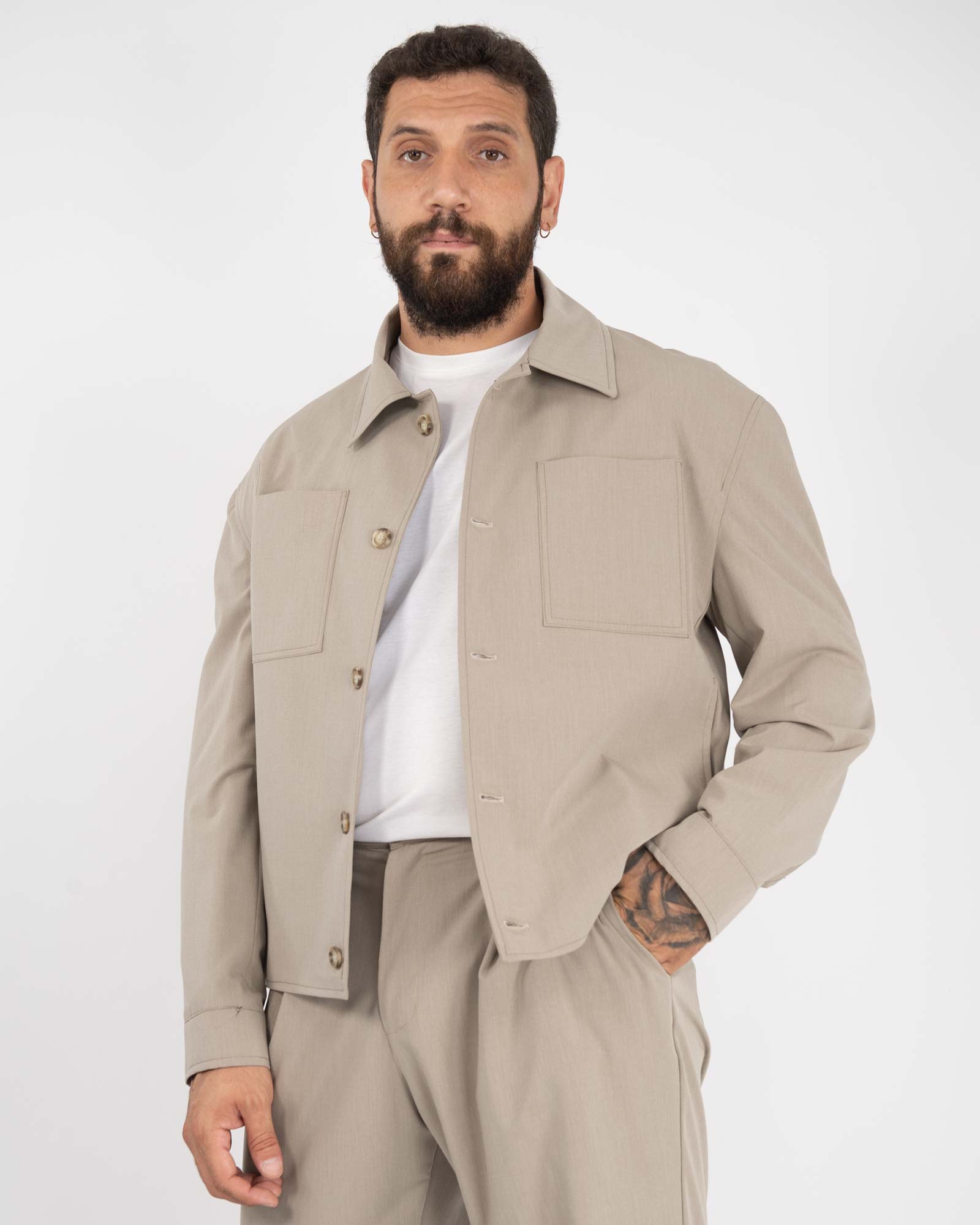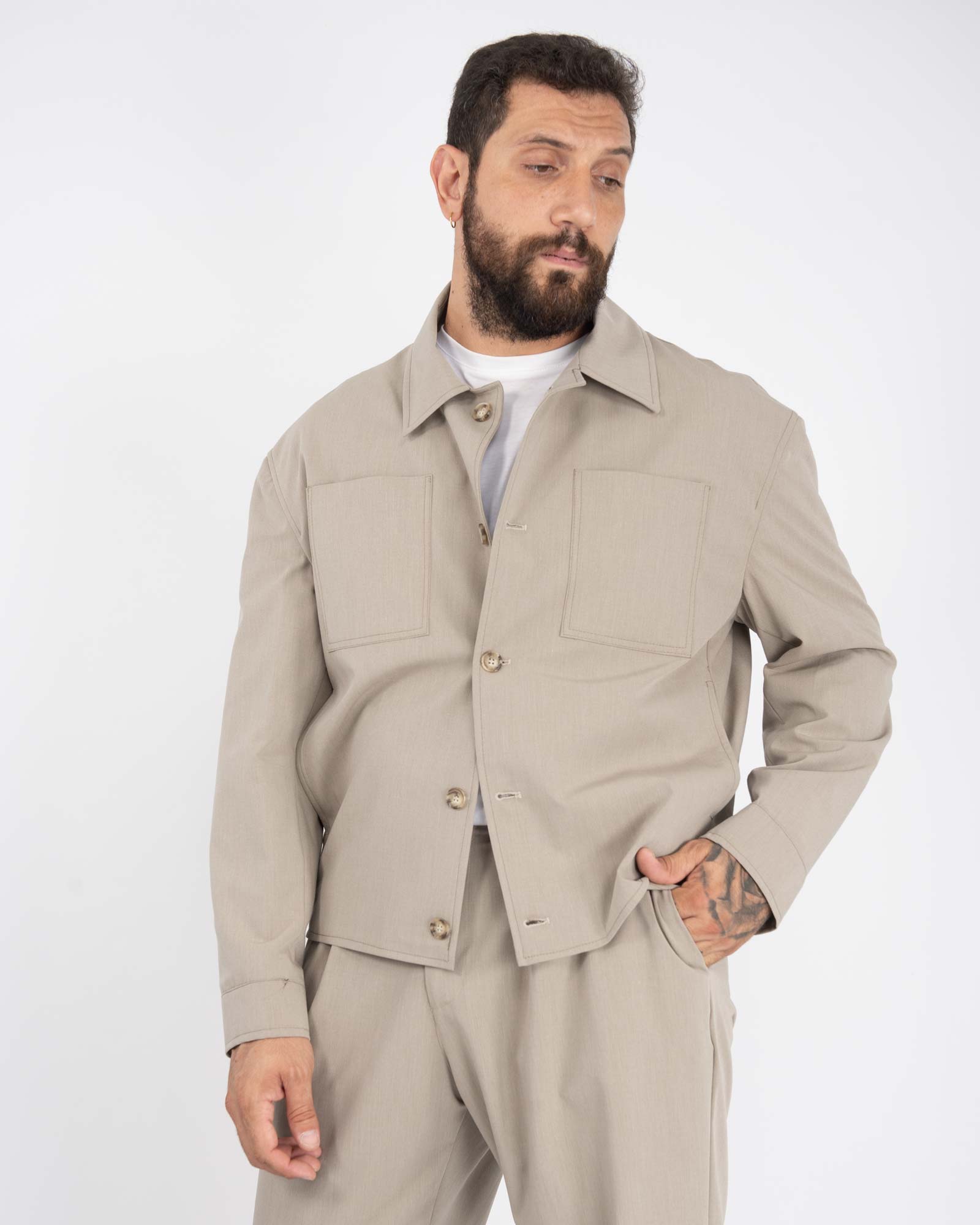 Giacca camicia con tasche sul petto beige