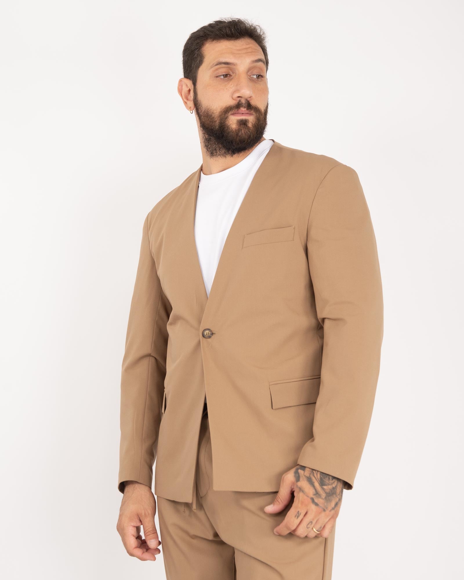 Giacca senza rever con spallina cammello