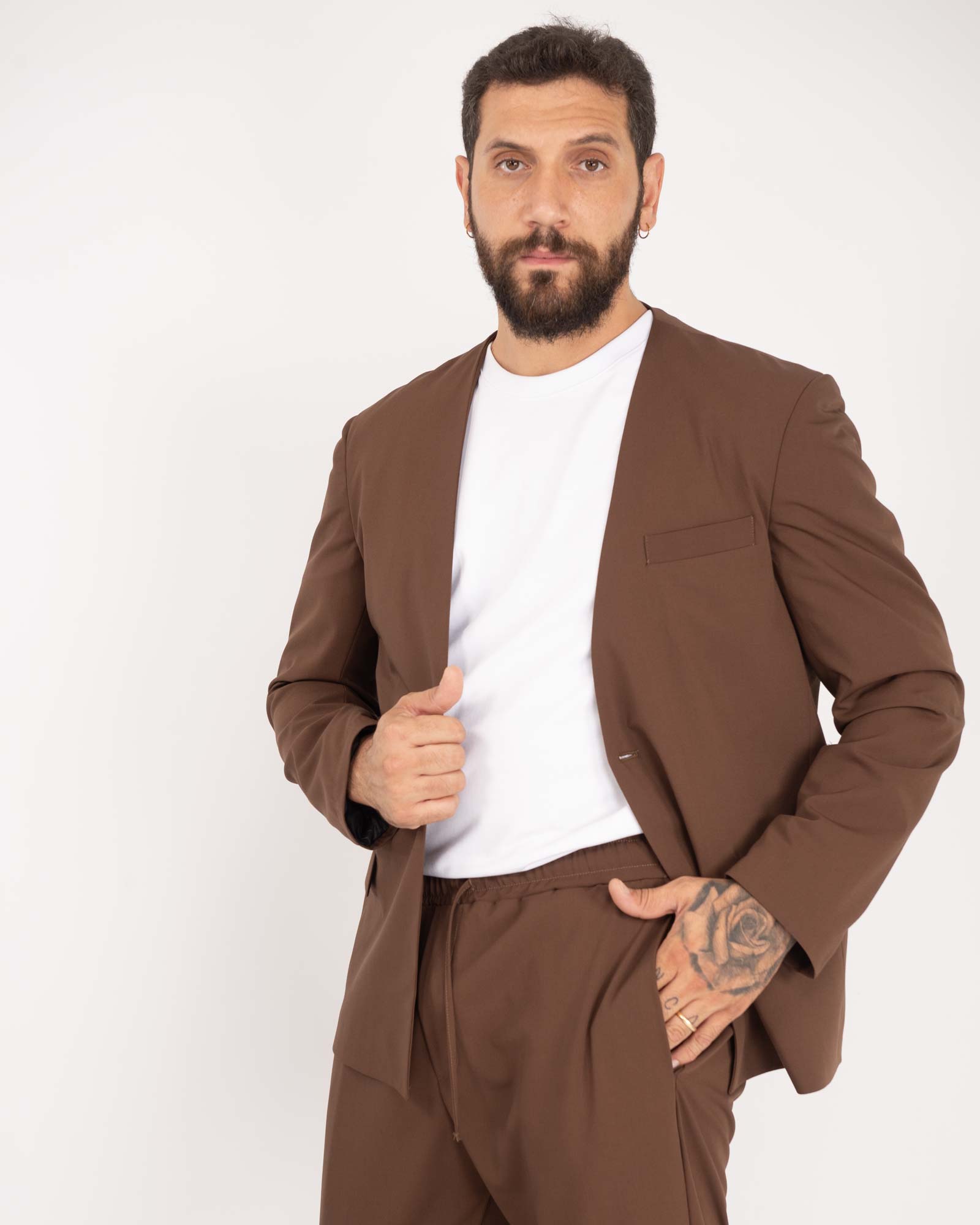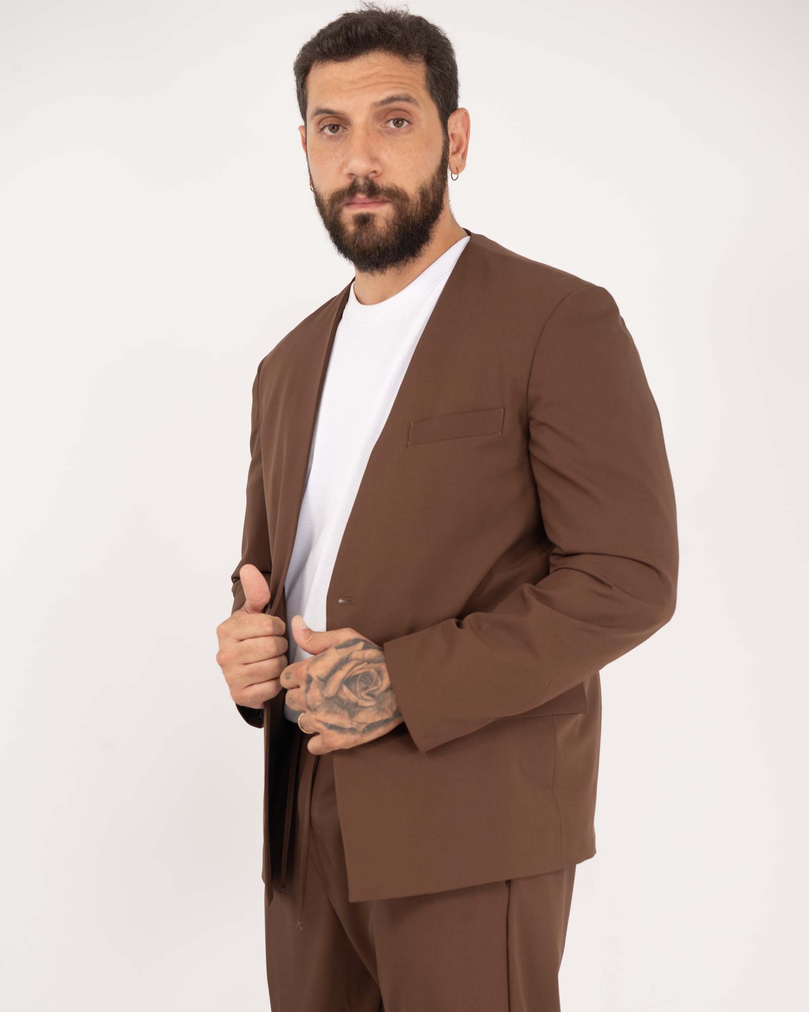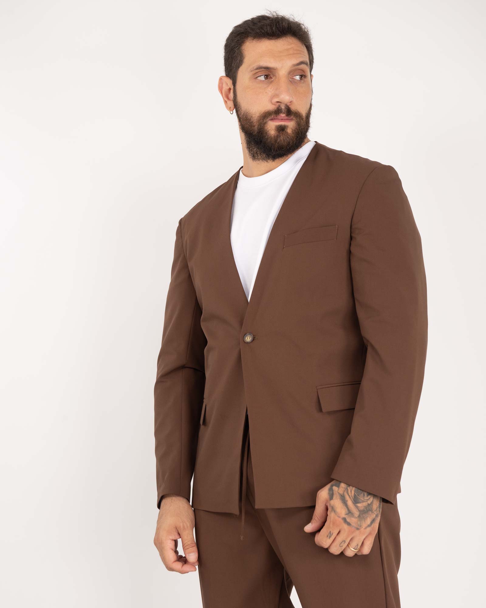 Giacca senza rever con spallina tabacco