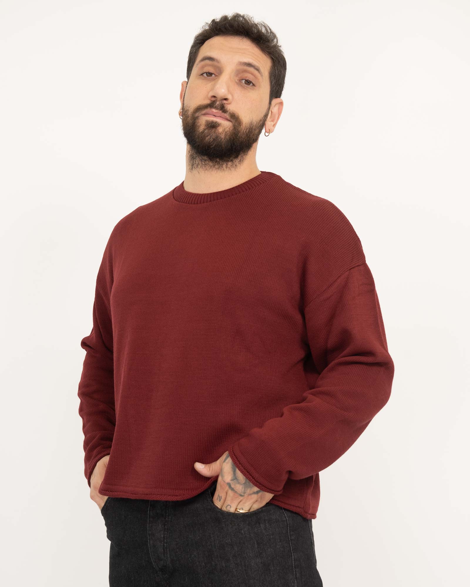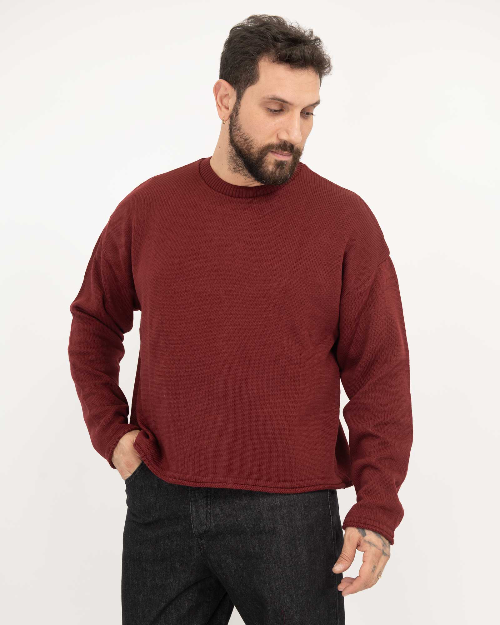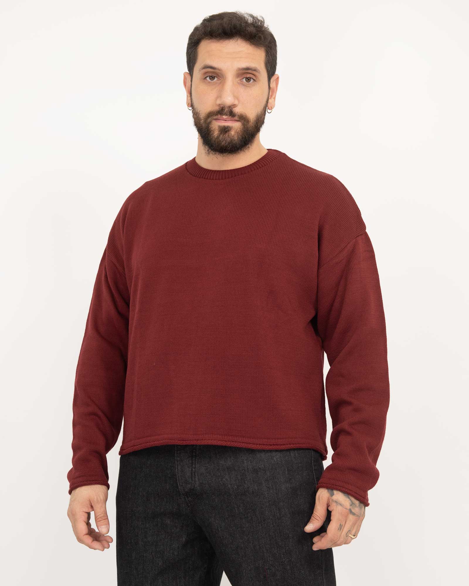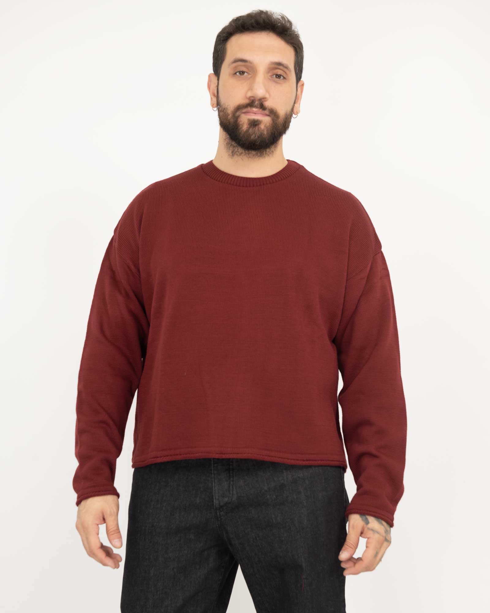 Maglia cropped fit bordi arrotolati bordeaux