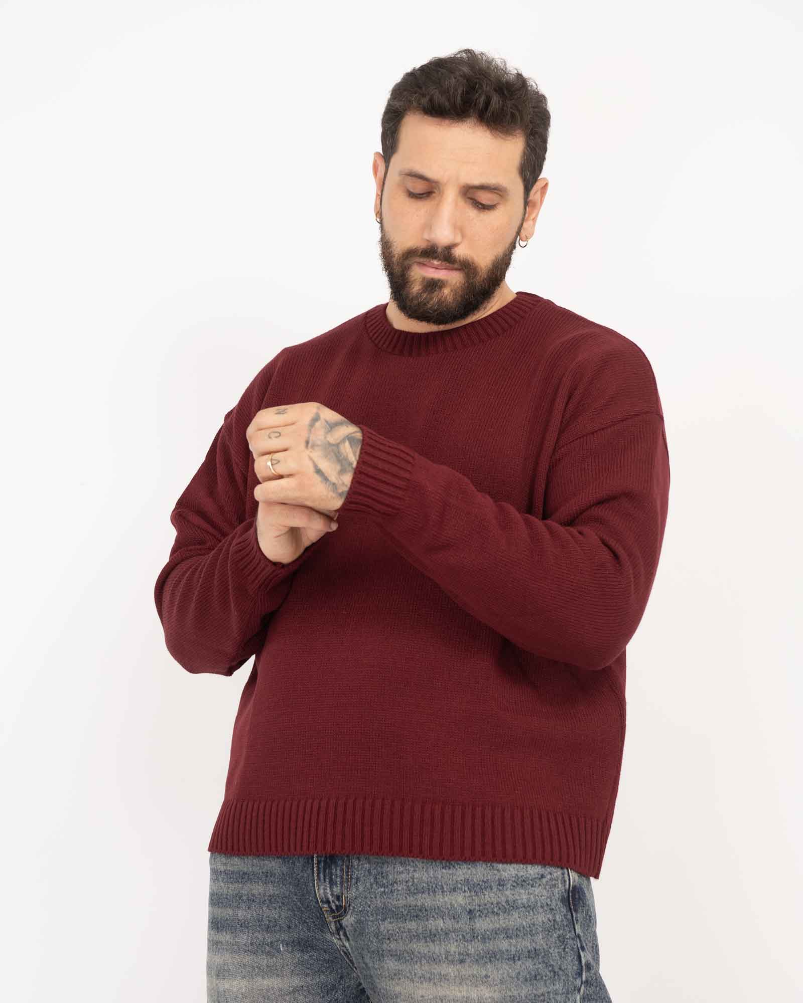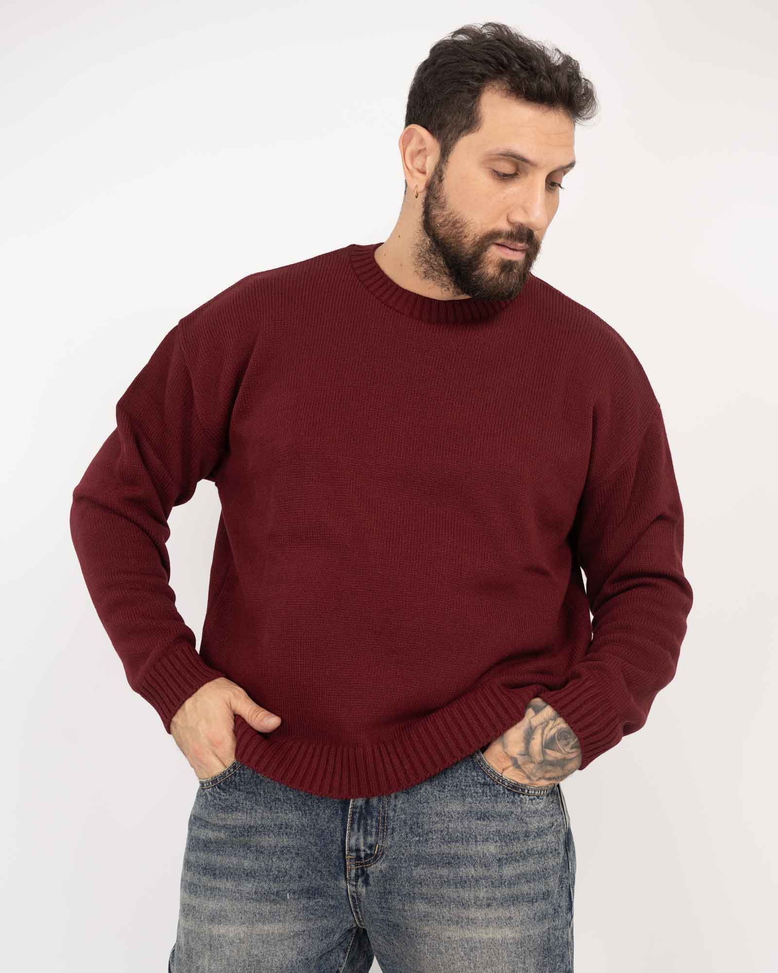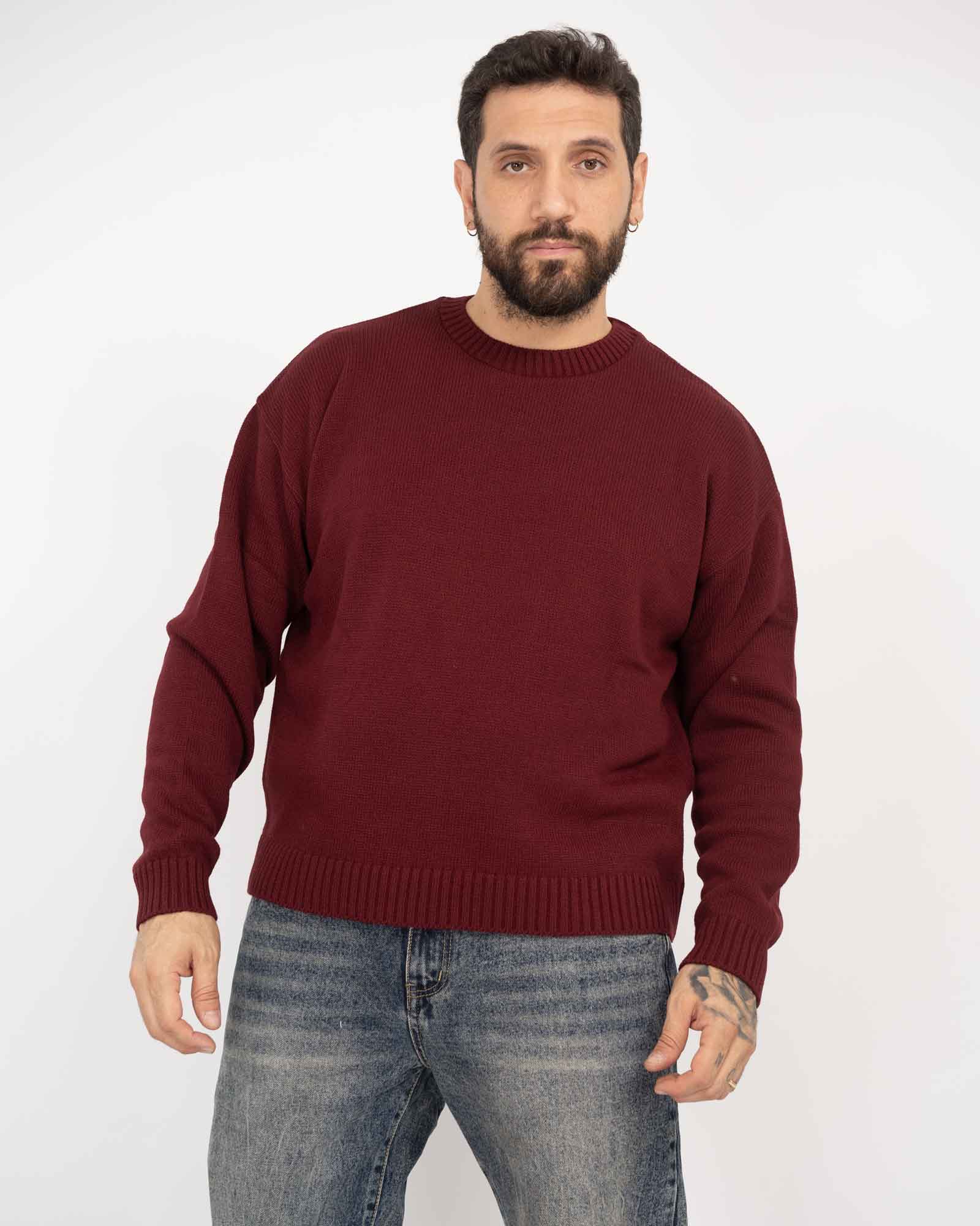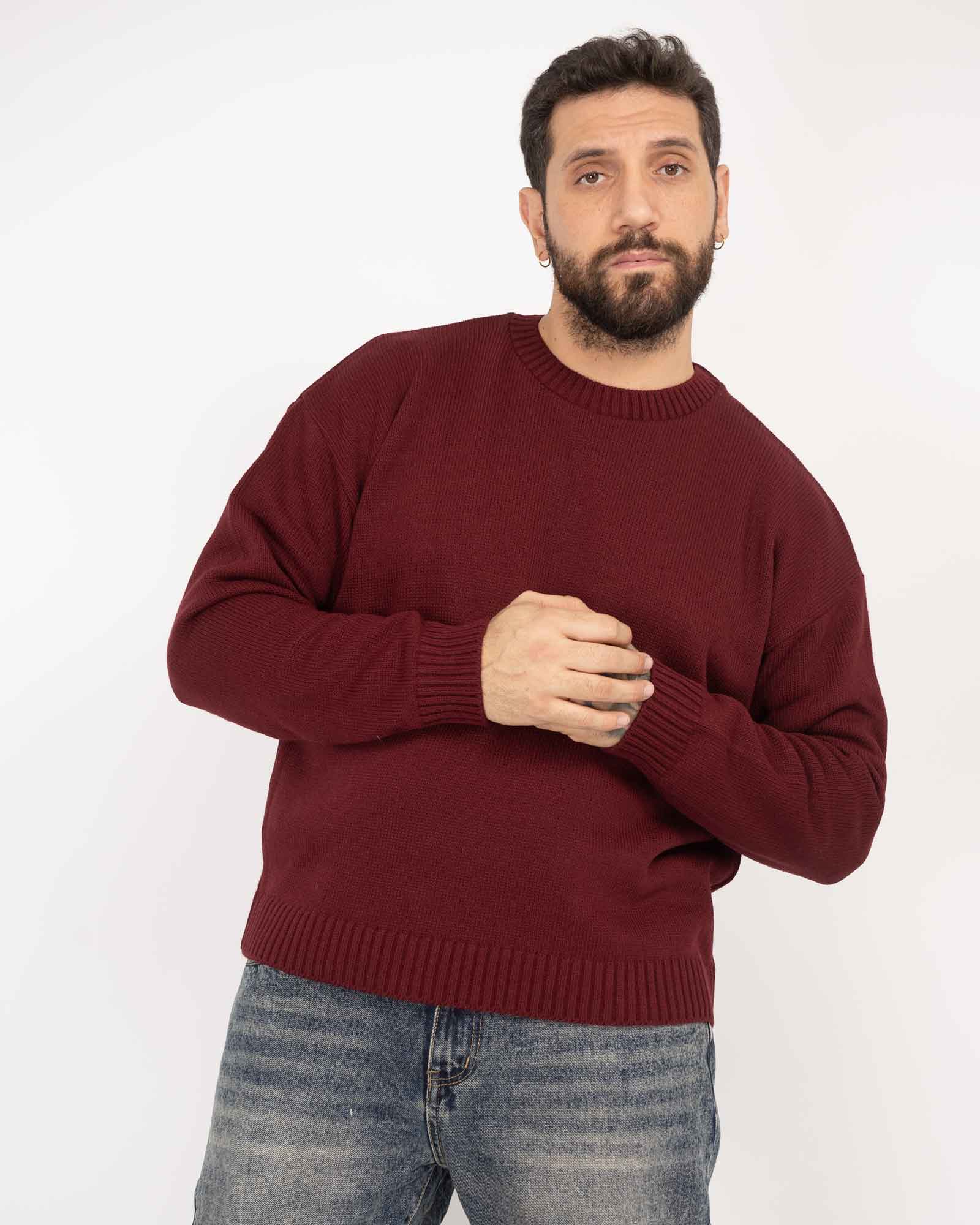 Maglia cropped fit in filato con collo rotondo e maniche lunghe, presenta finiture a costine. Produzione made in Italy. In foto è indossata taglia XL per altezza 1,85cm e peso 97kg.
