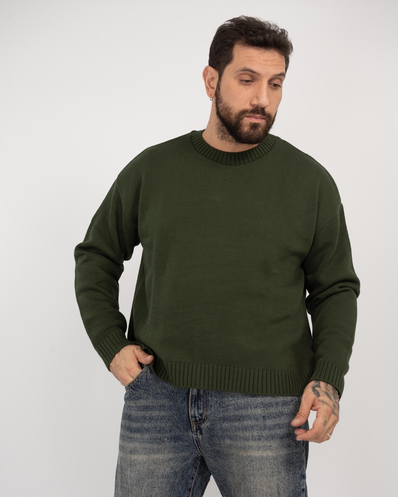 Maglia cropped fit rasata verde militare