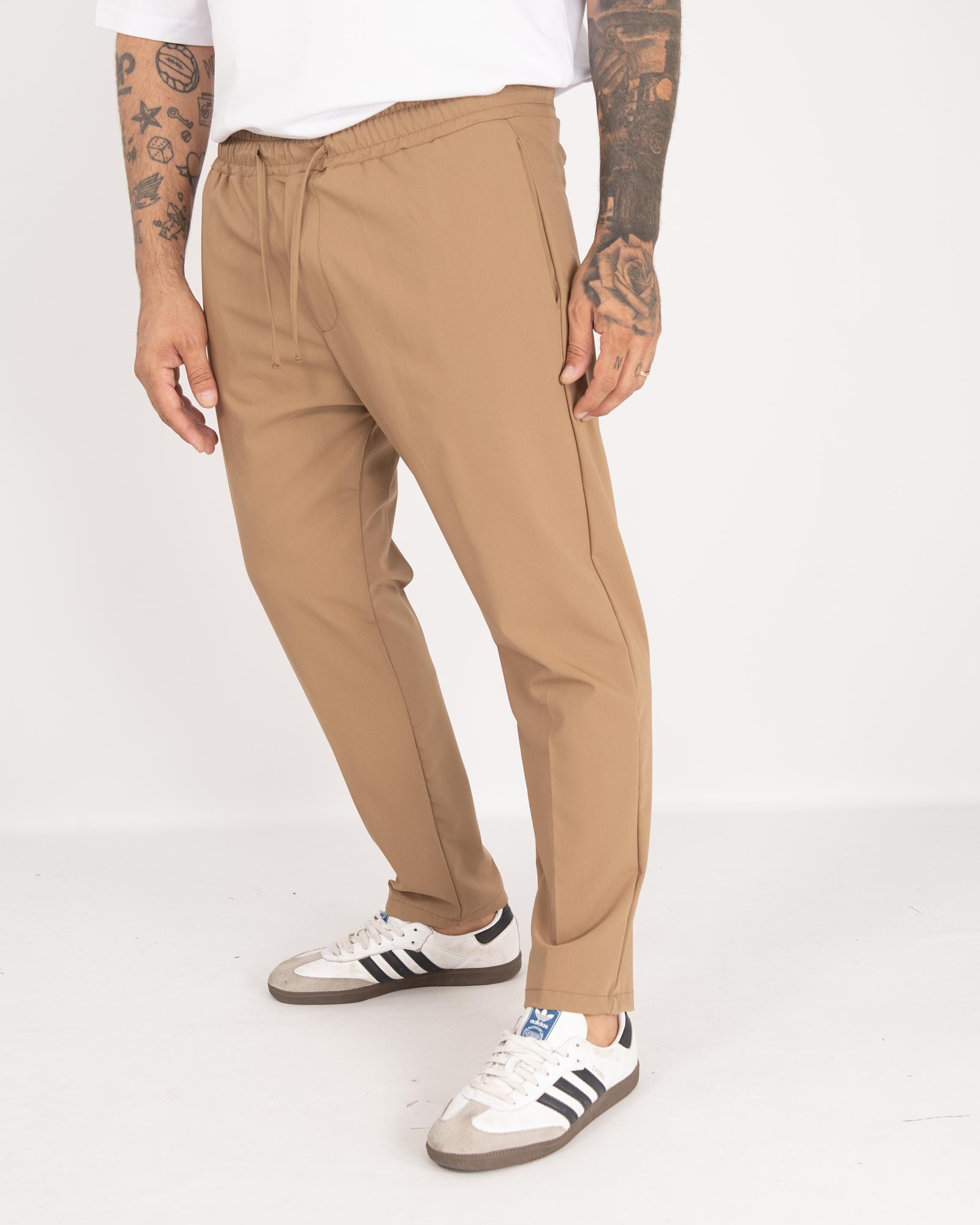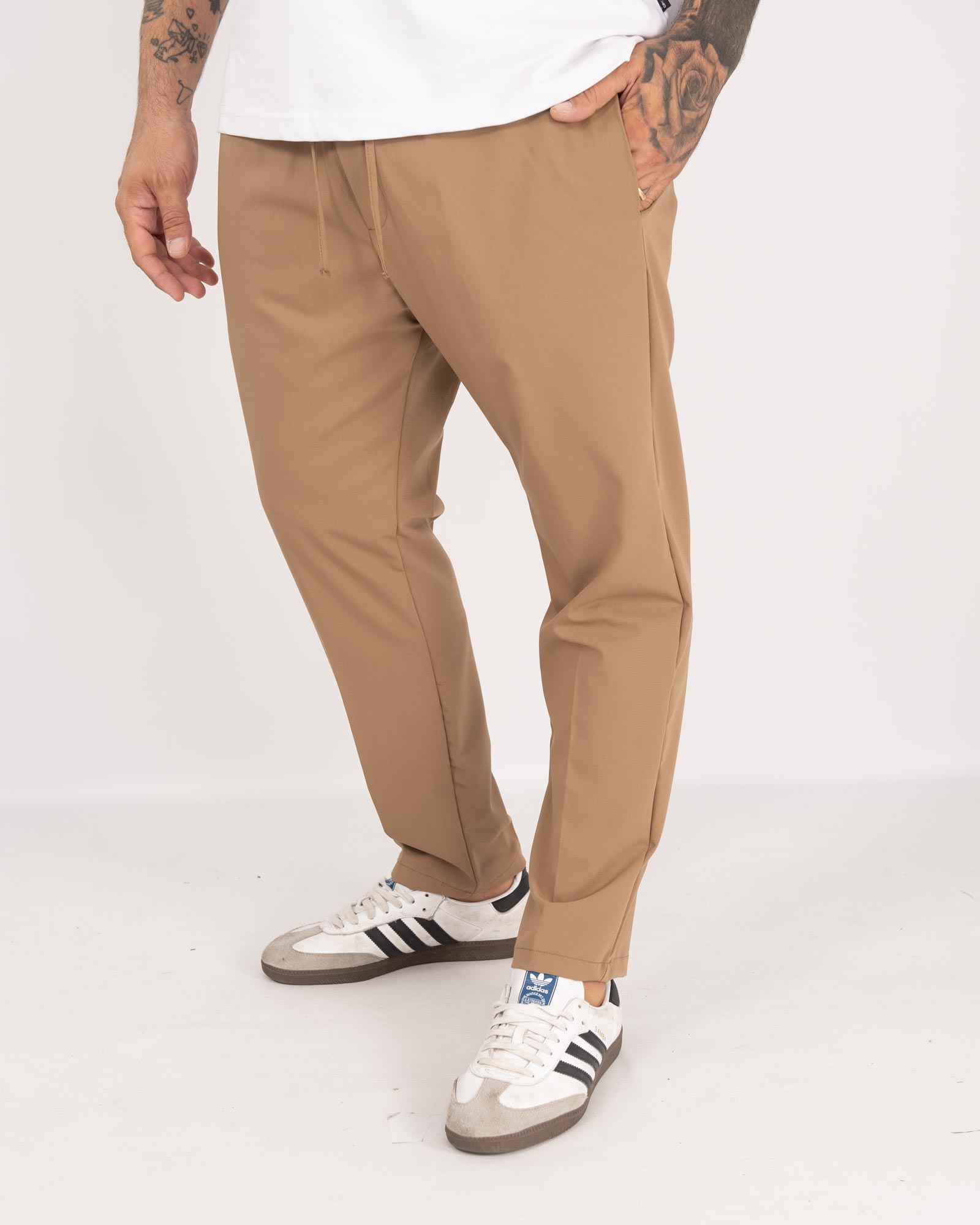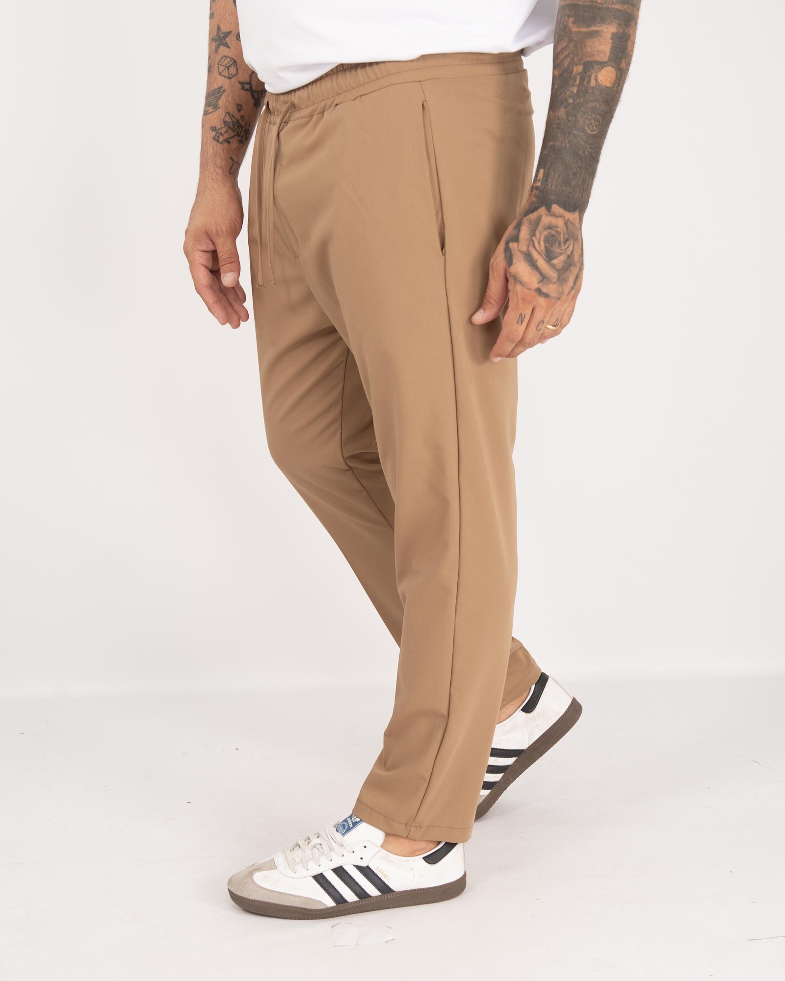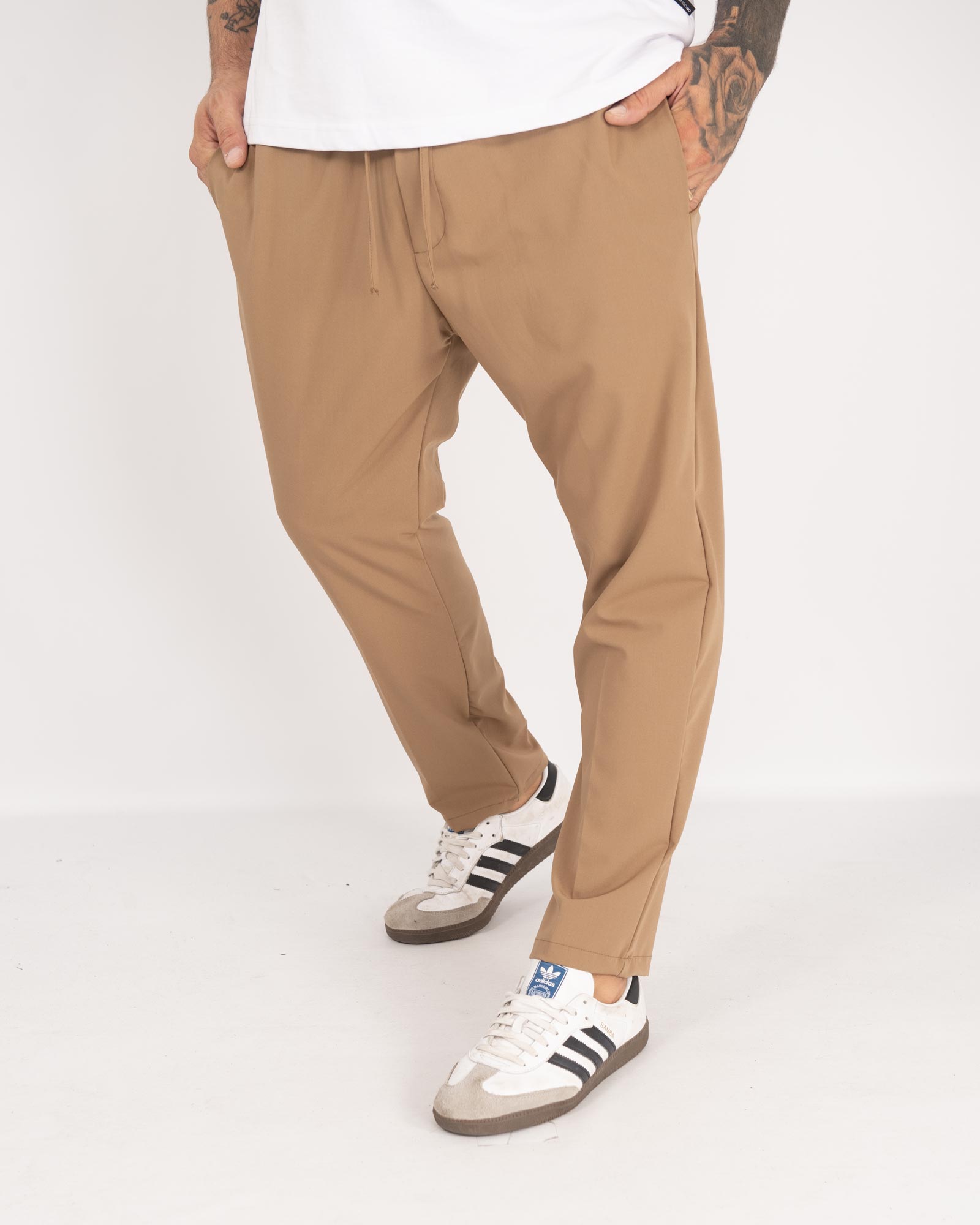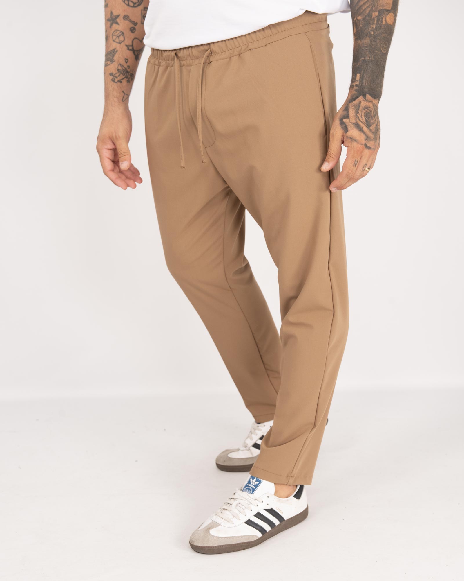 Pantalaccio fluido fondo stretto e lunghezza alla caviglia in misto viscosa e poliestere. Vita elastacizzata con coulisse regolabile. Produzione e manifattura completamente italiana.Taglia indossata in foto XXL per altezza 1,85 cm e 97 Kg.