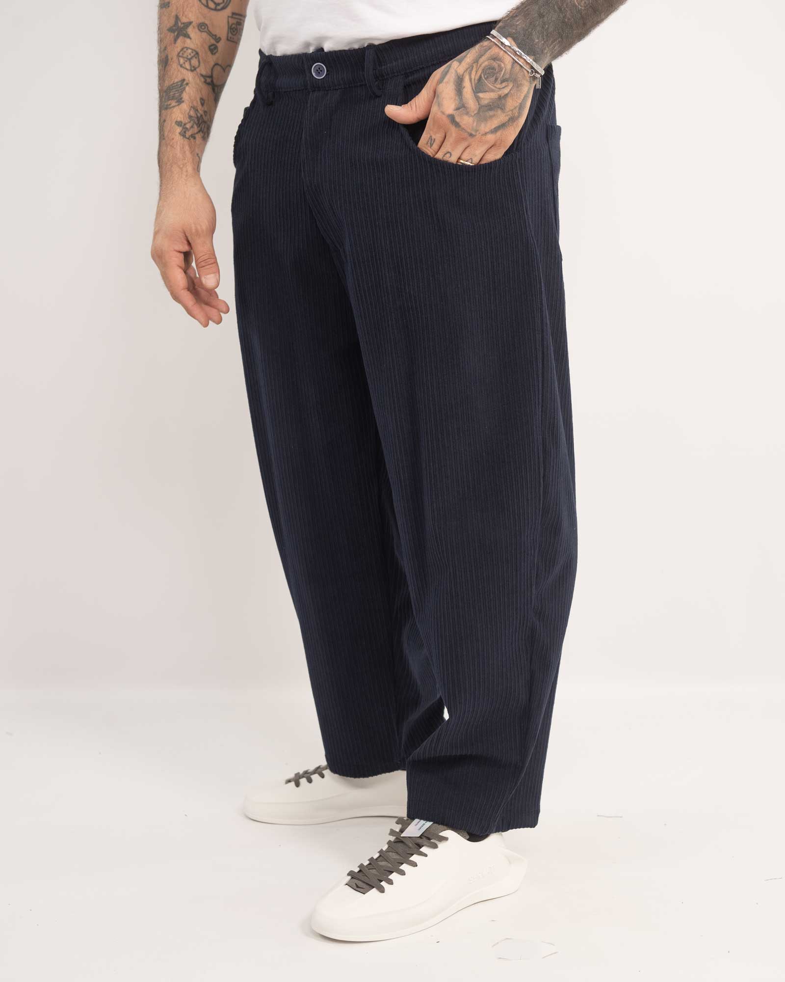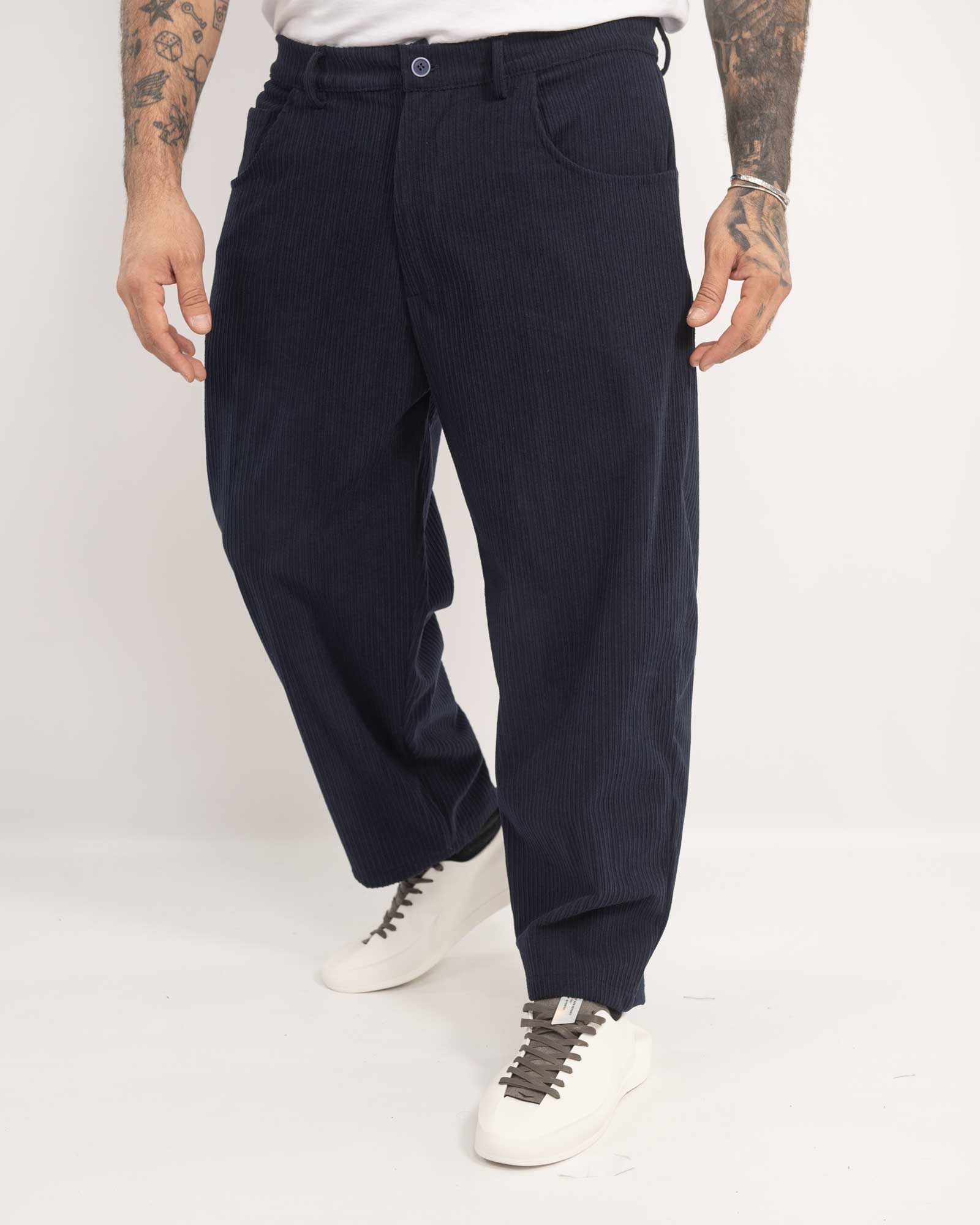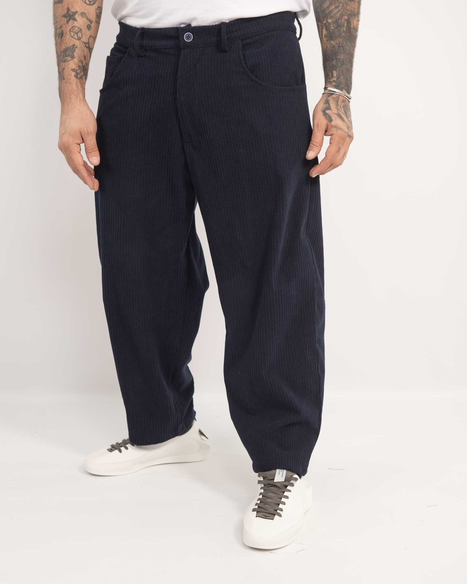 Pantalone balloon fit in velluto blu