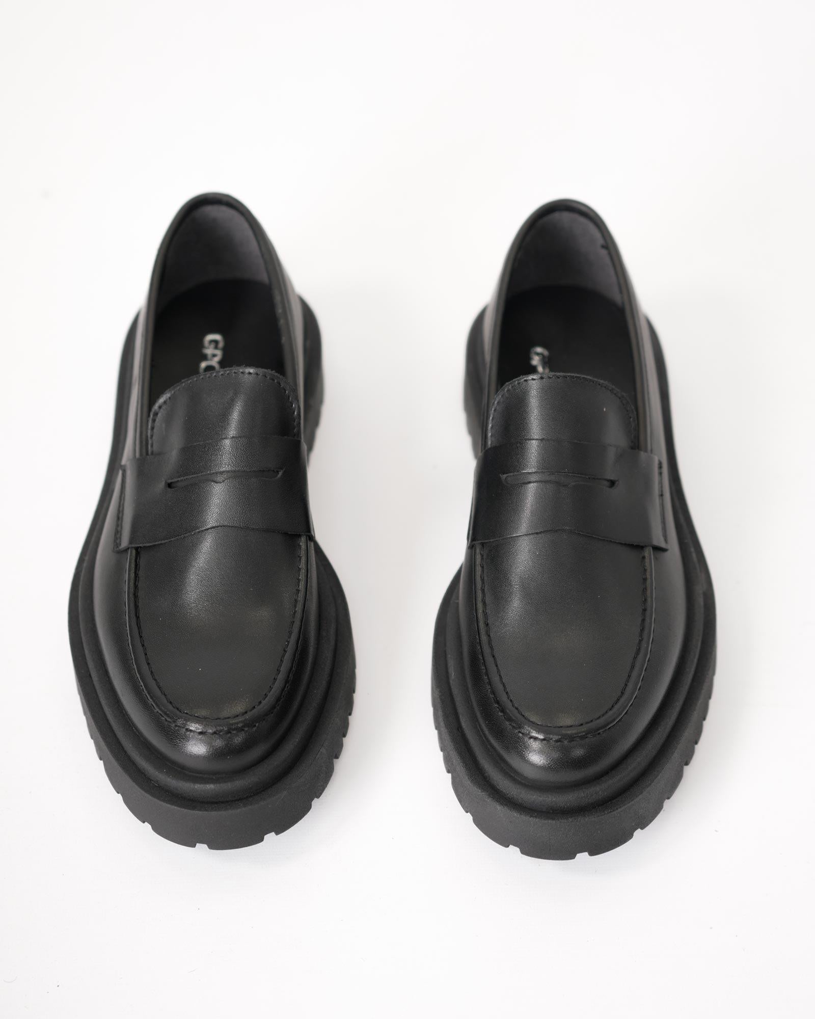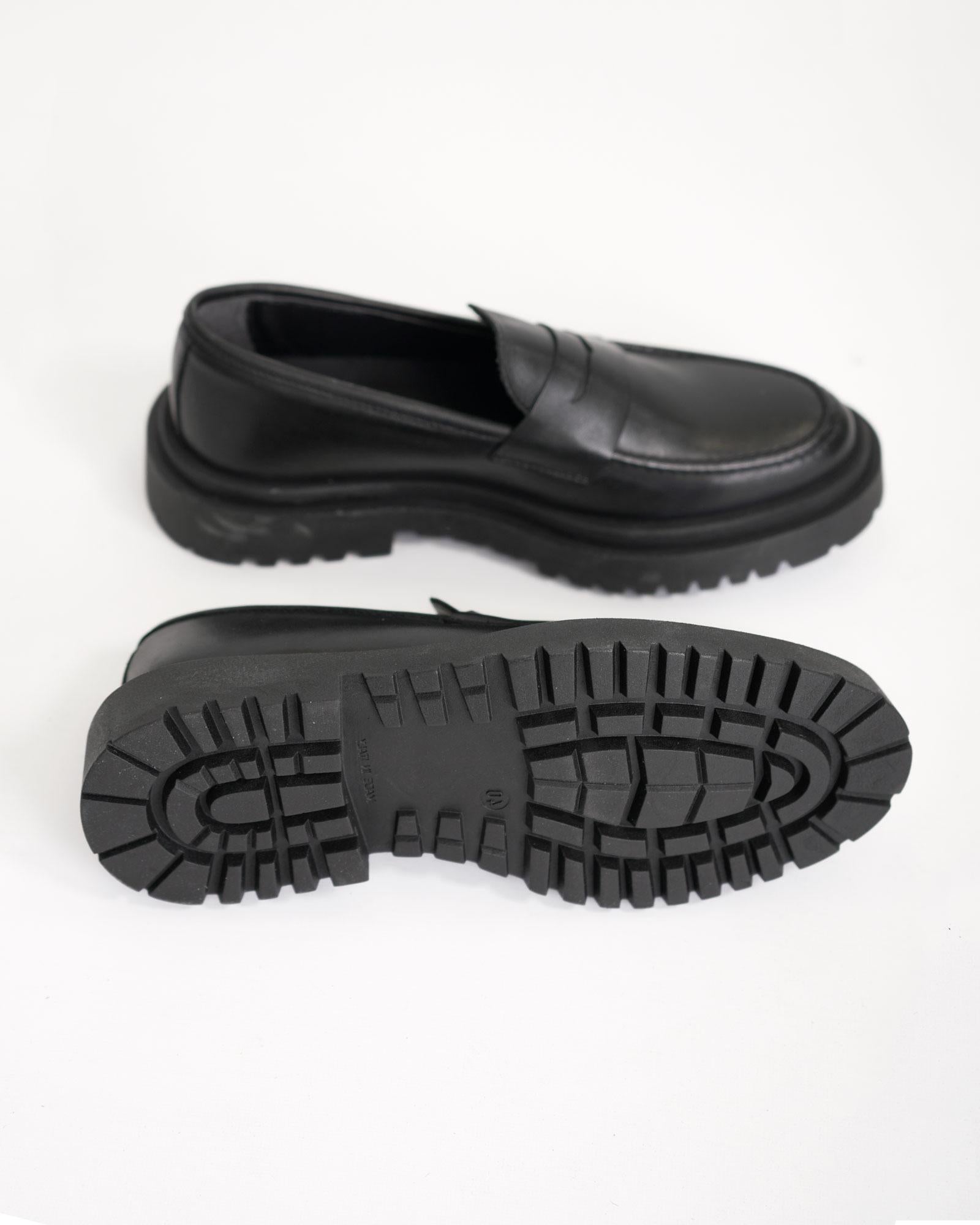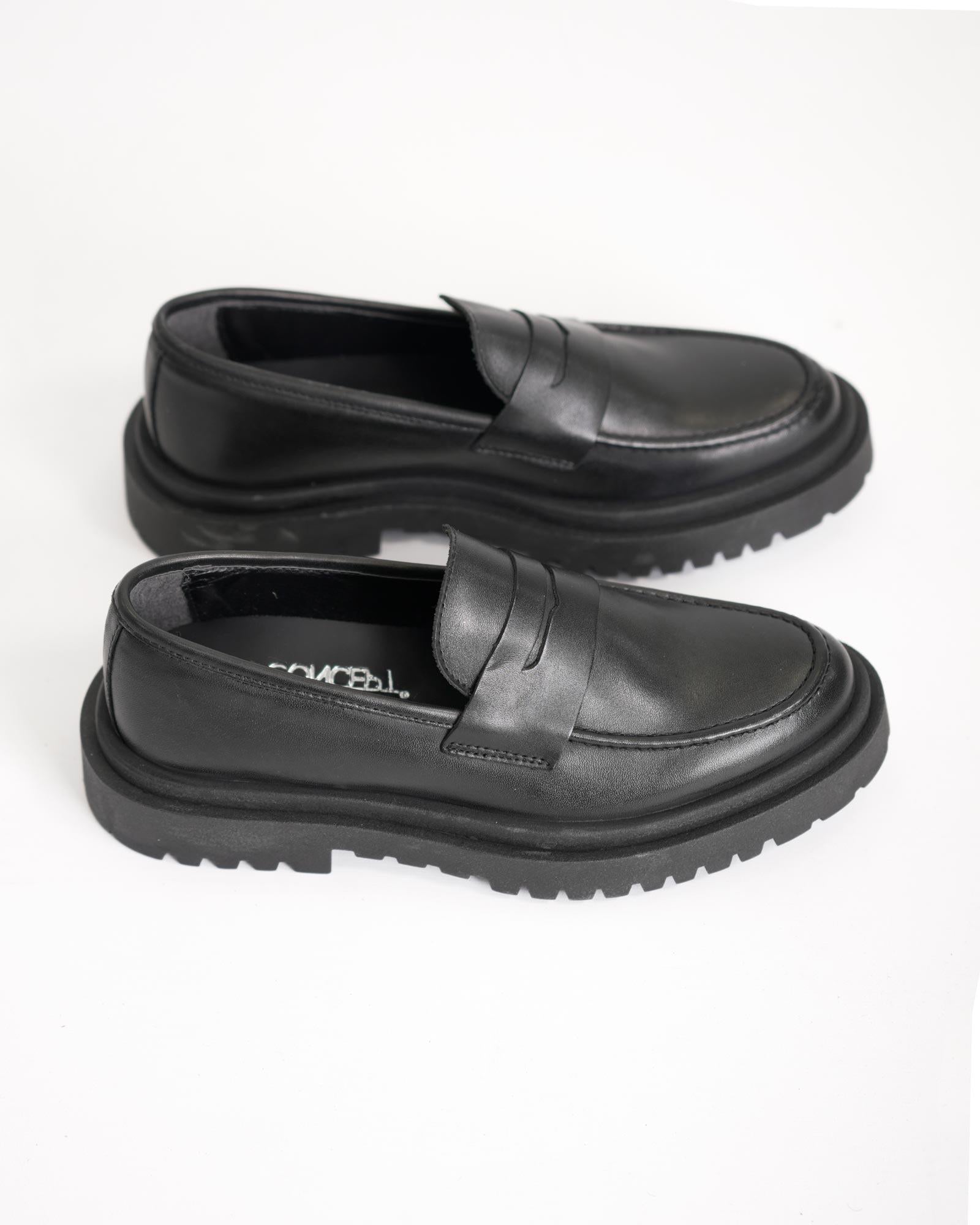 Mocassino college fondo alto in pelle nero