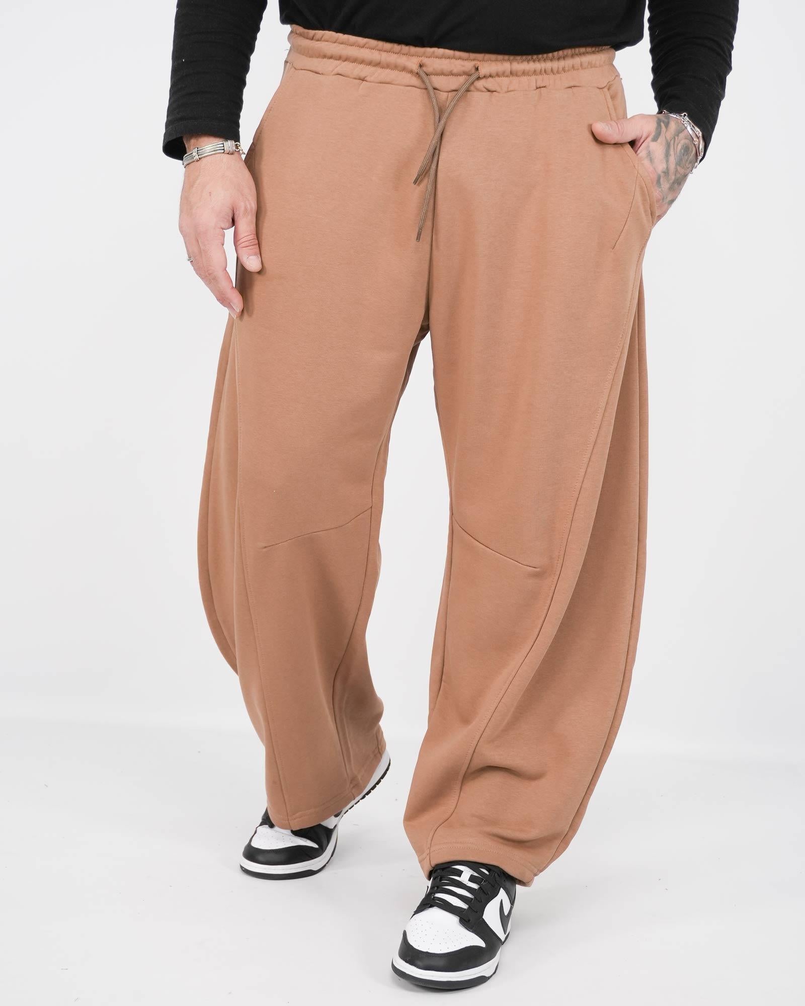 Pantatuta balloon fit realizzati in felpa. Tasche anteriori e vita elasticizzata con coulisse regolabile. In foto è indossata taglia XL per altezza 1,85cm e peso 97kg.