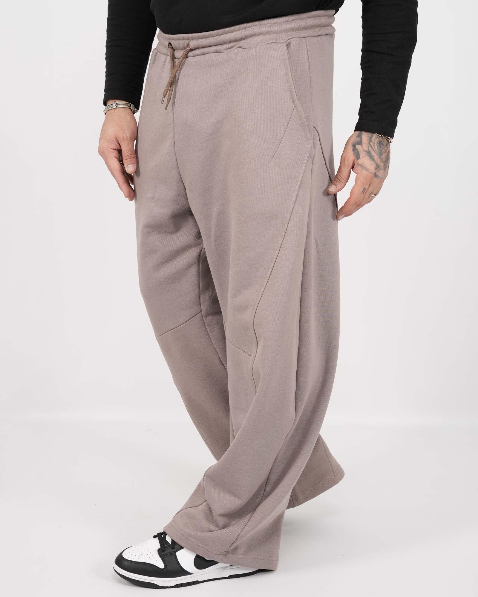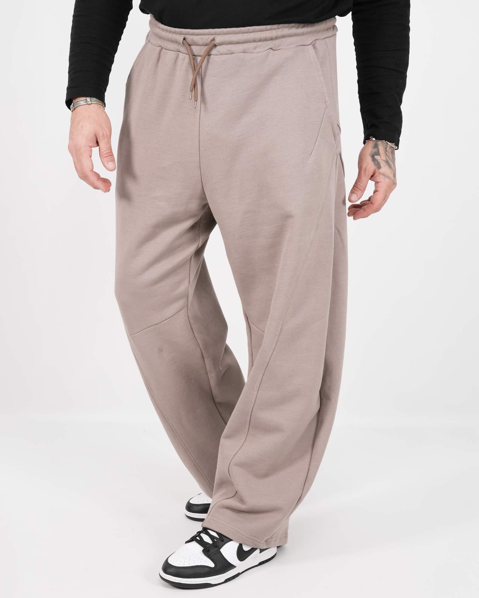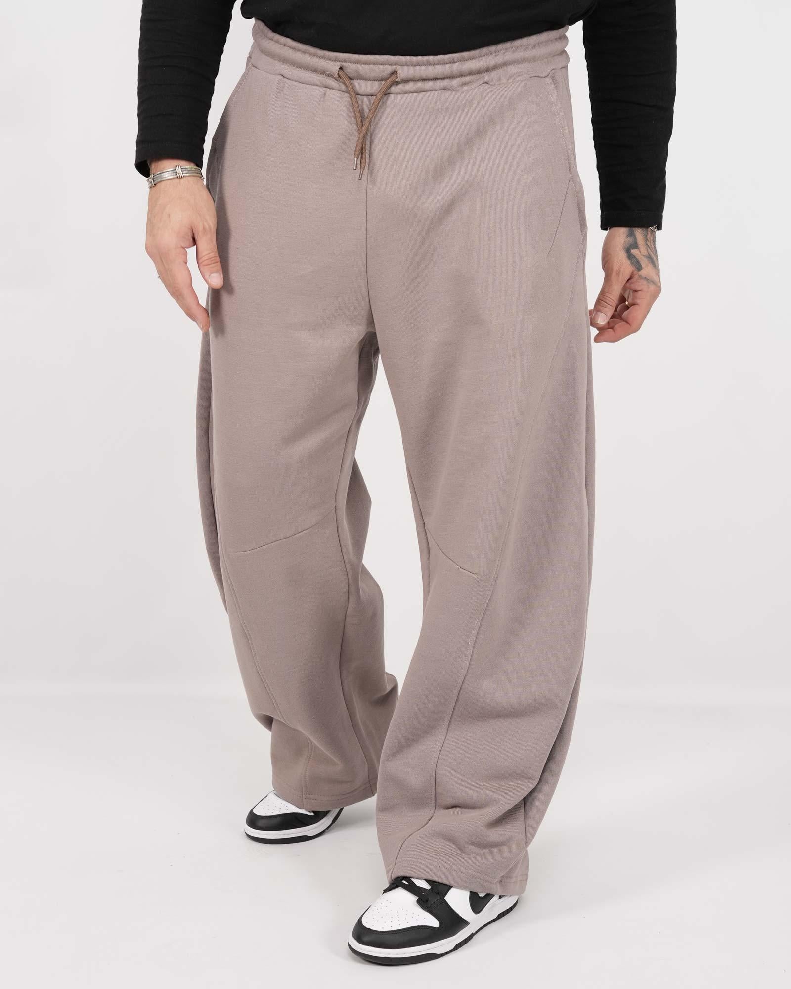 Pantatuta balloon fit realizzati in felpa. Tasche anteriori e vita elasticizzata con coulisse regolabile. In foto è indossata taglia XL per altezza 1,85cm e peso 97kg.