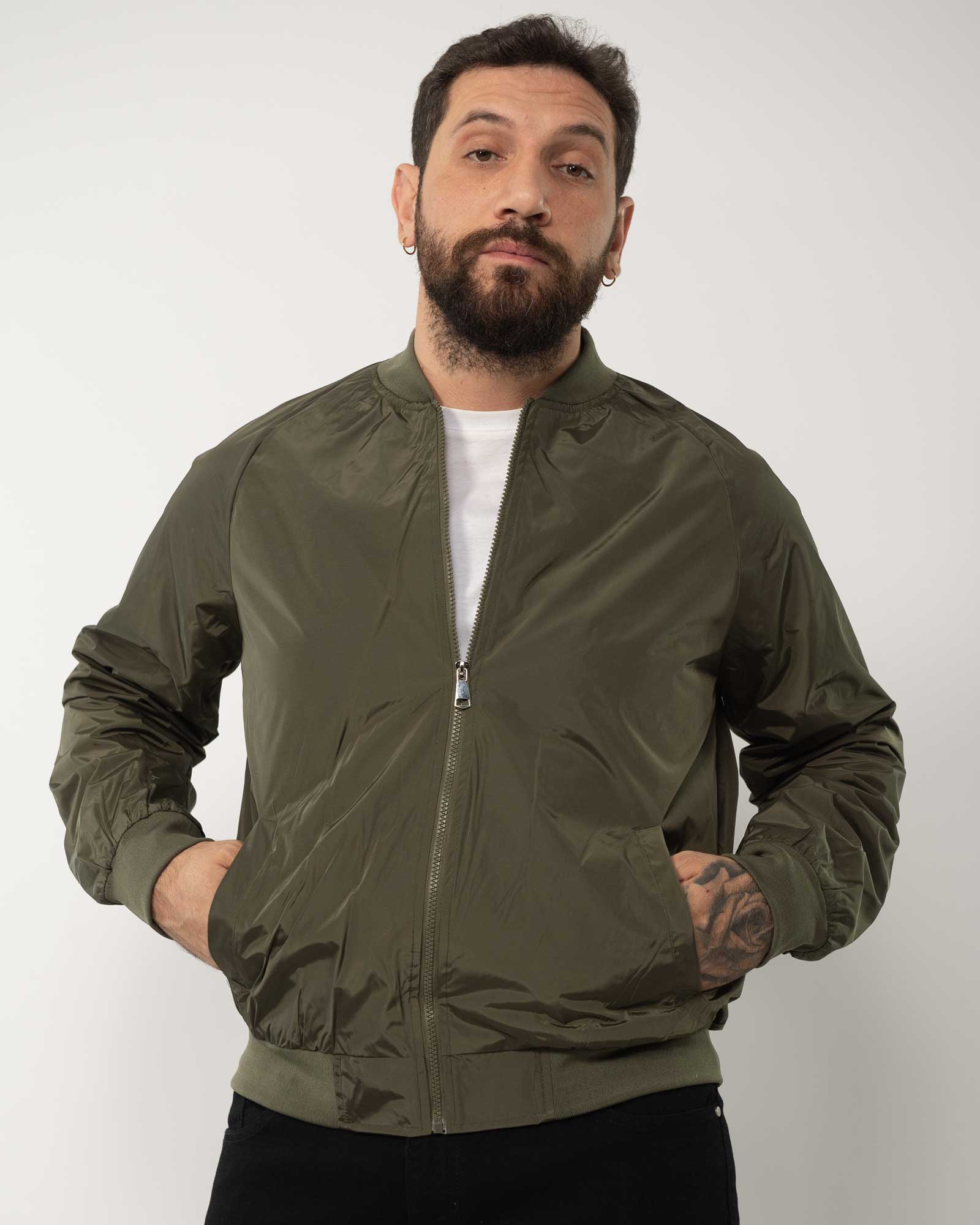 Giubbino in tessuto tecnico con collo in costine elastiche e maniche lunghe. Presenta tasche sui fianchi e orlo con finiture elastiche in tinta unita. Il modello in foto indossa taglia 54 è alto 1,85cm e pesa 97kg.