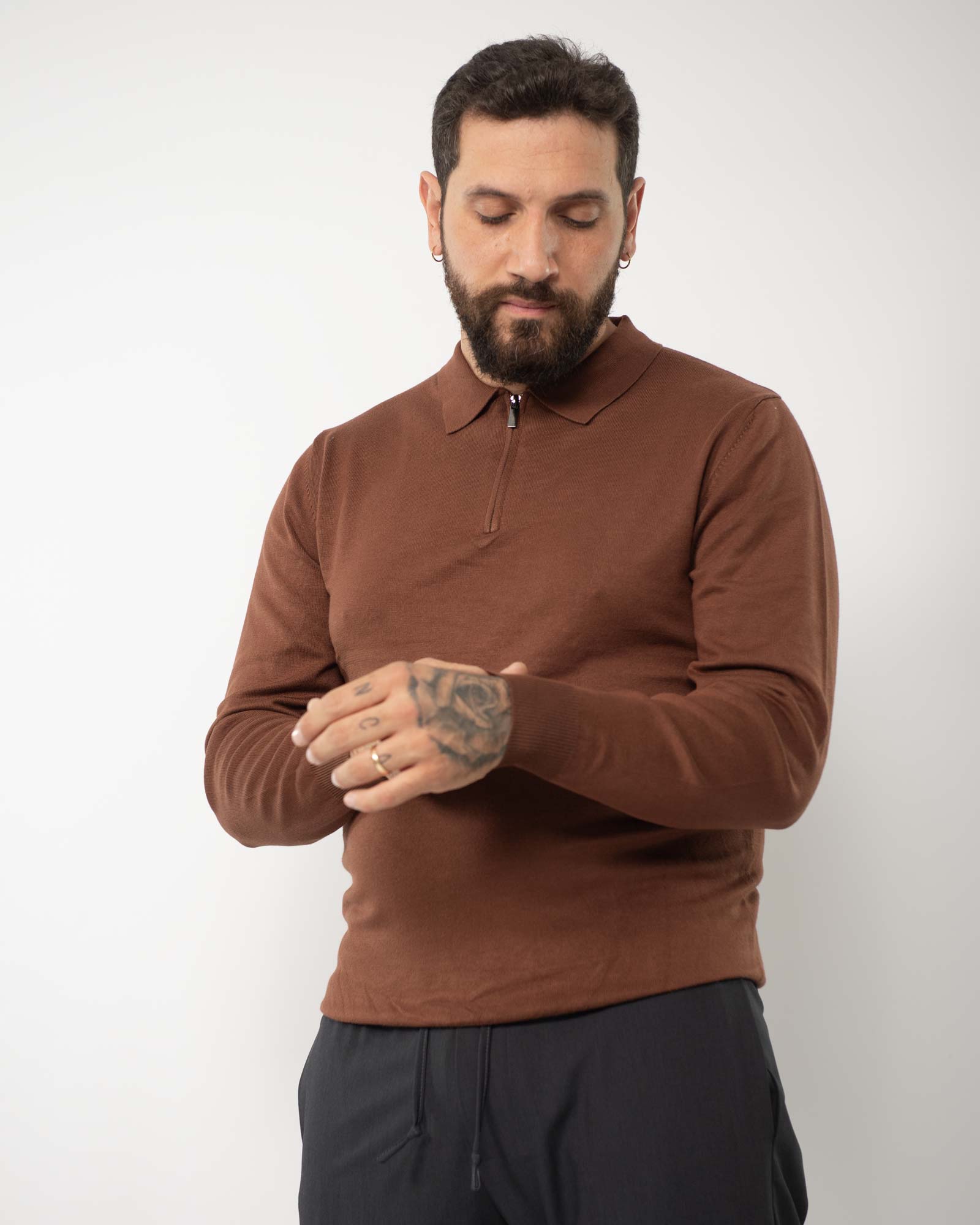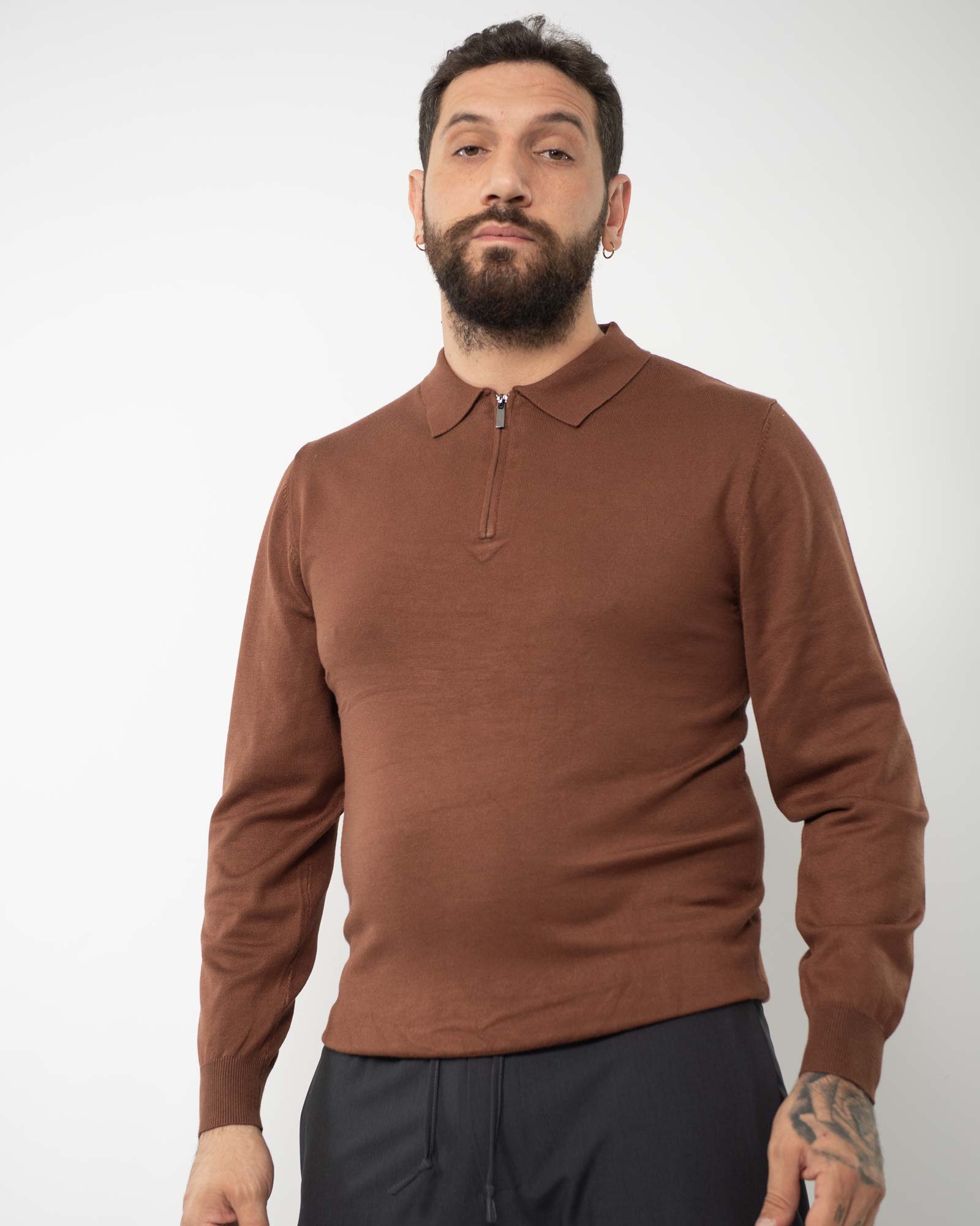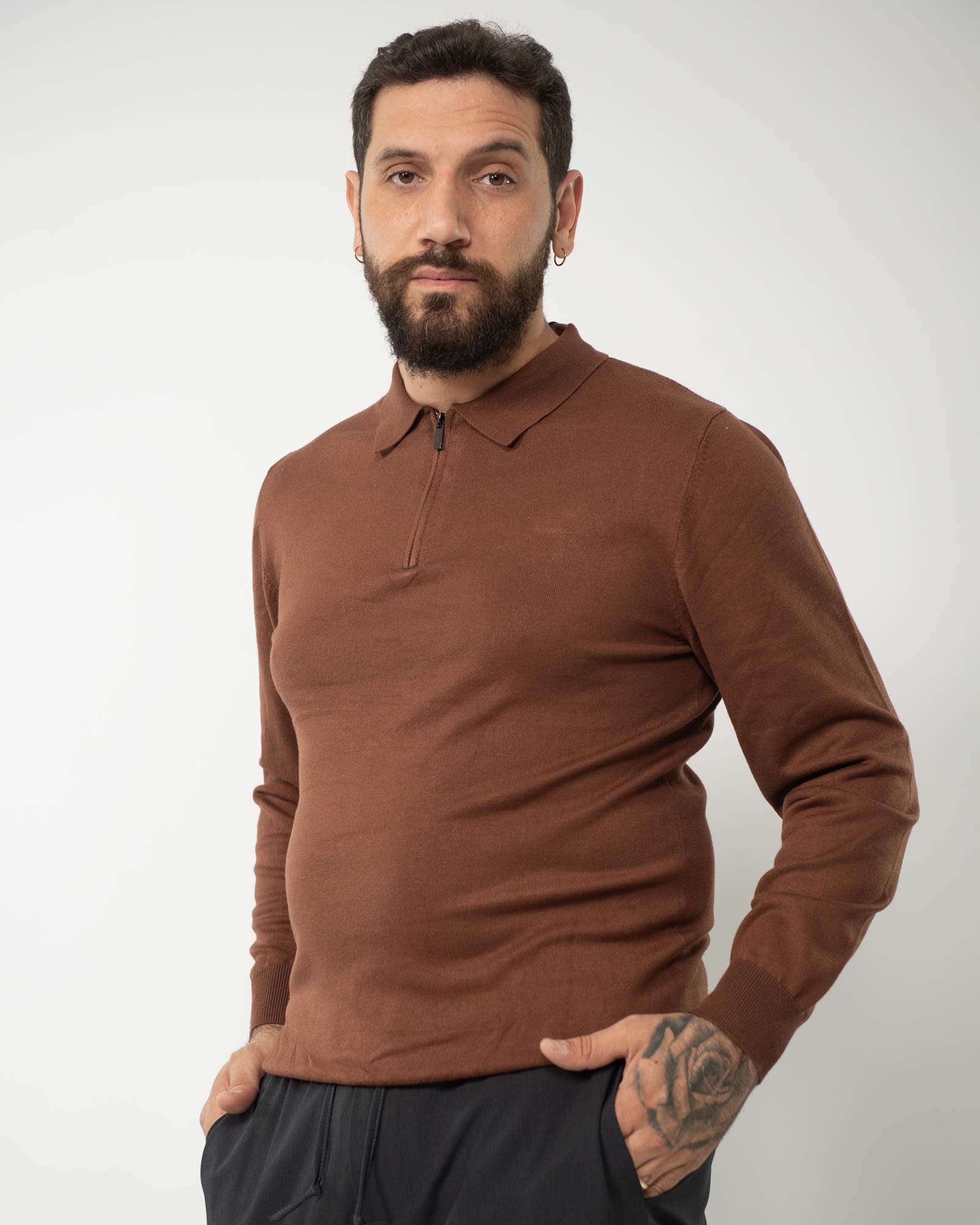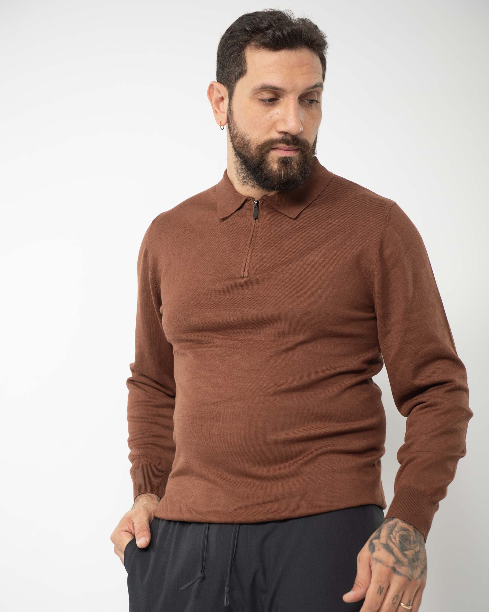 Polo collo camicia con chiusura frontale con zip e maniche lunghe. Presenta finiture a coste, in foto è indossata la taglia XXL per altezza 1,85cm e peso 97kg.