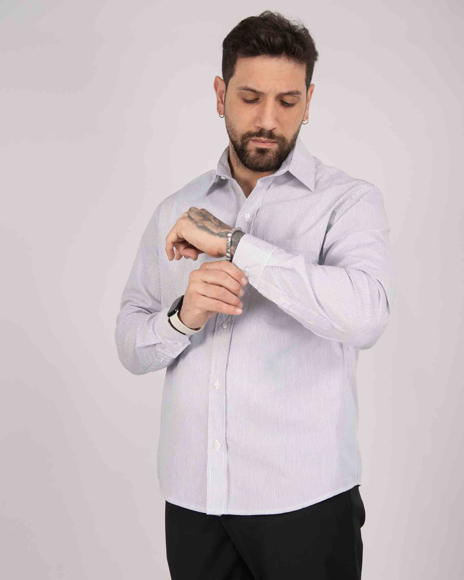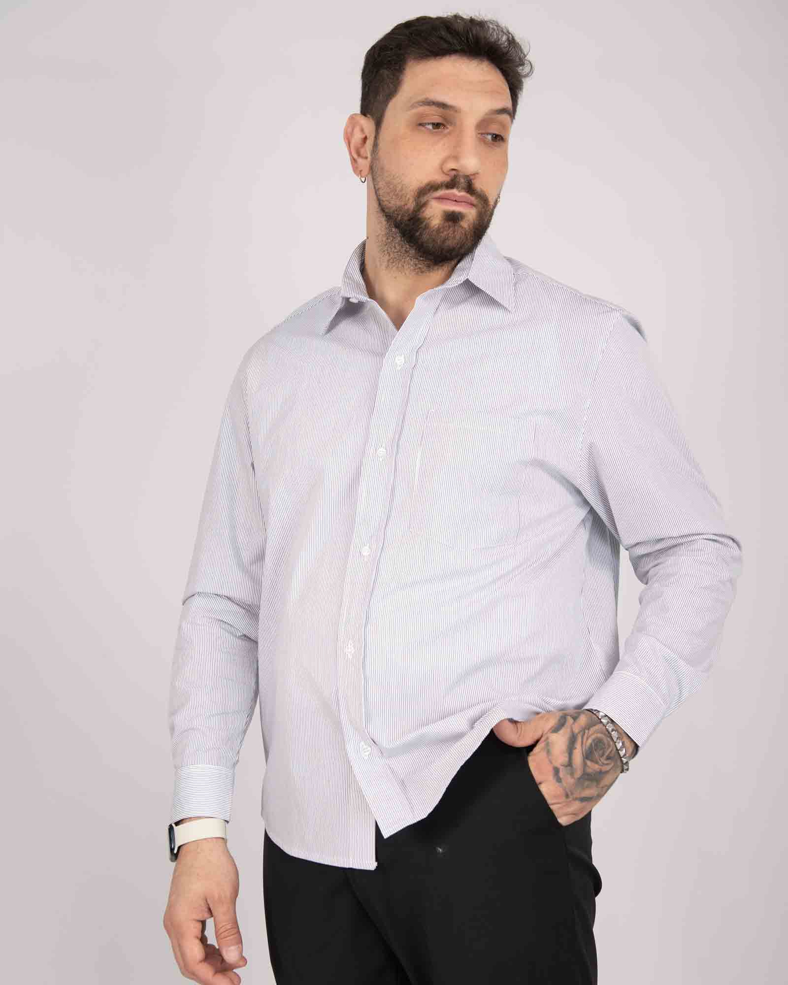 Camicia relaxed fit in cotone, presenra collo a revers e maniche lunghe rifinite con polsino con bottone e chiusura frontale con bottoni. In foto è indossata la taglia L per altezza 1,85cm e peso 97kg.