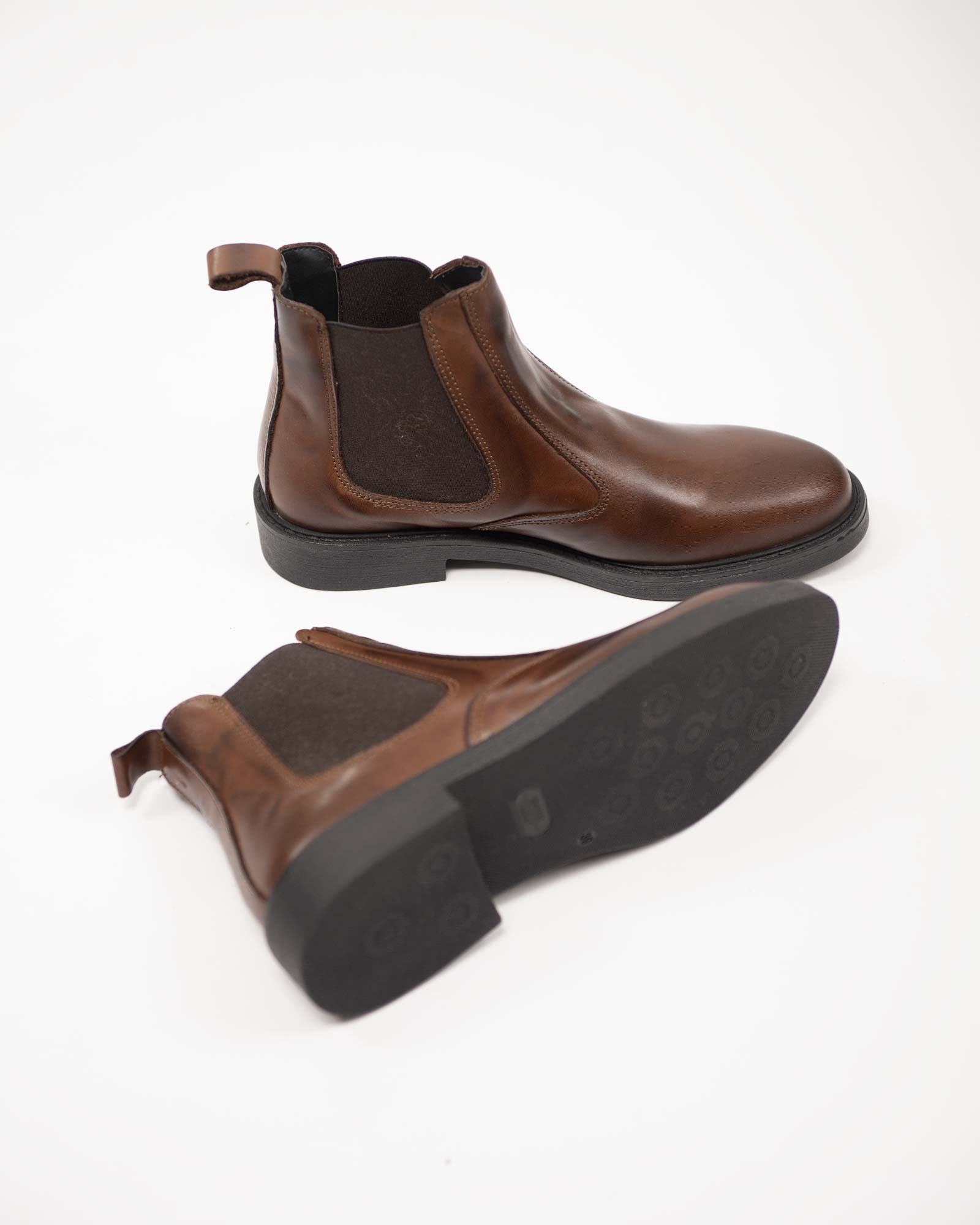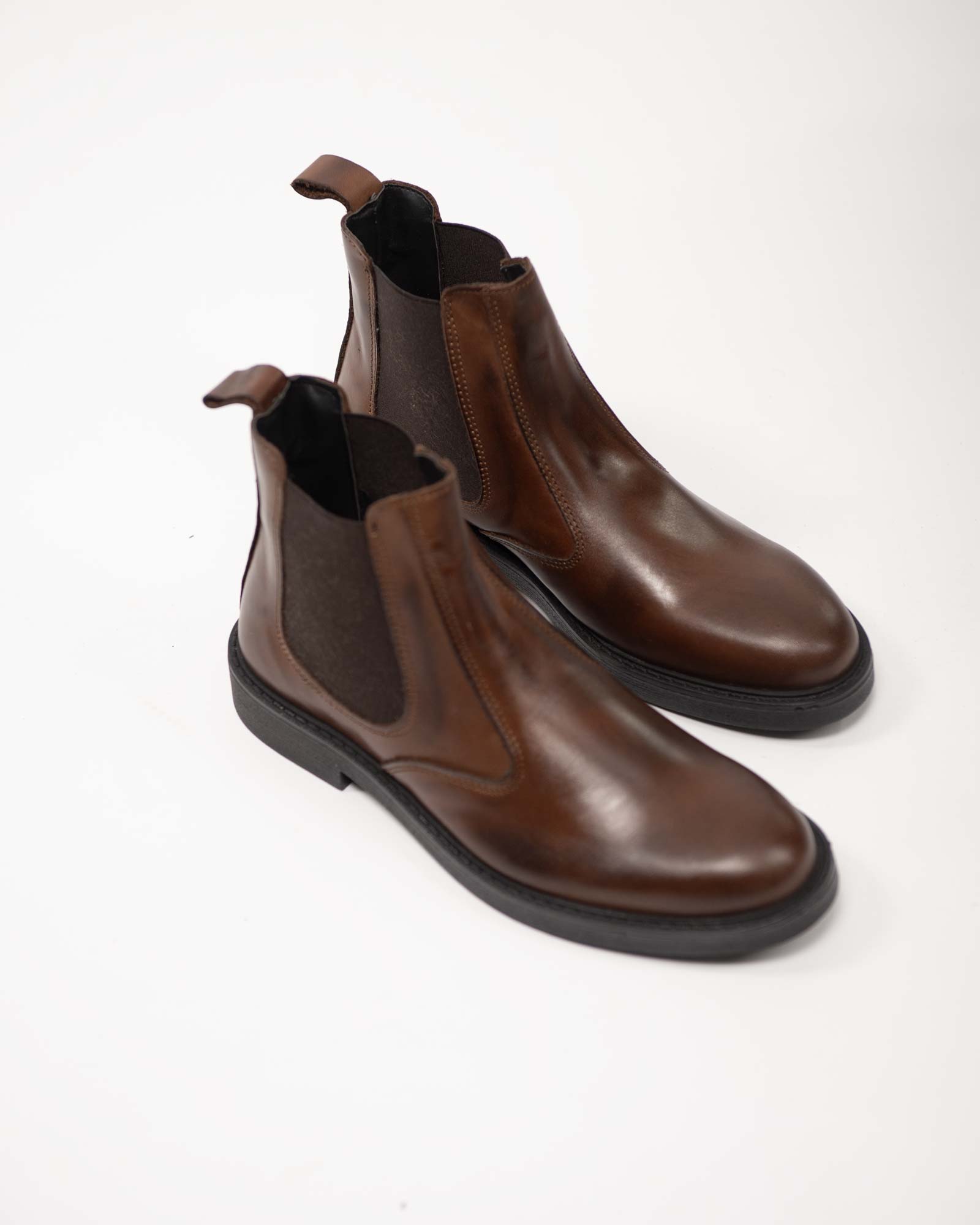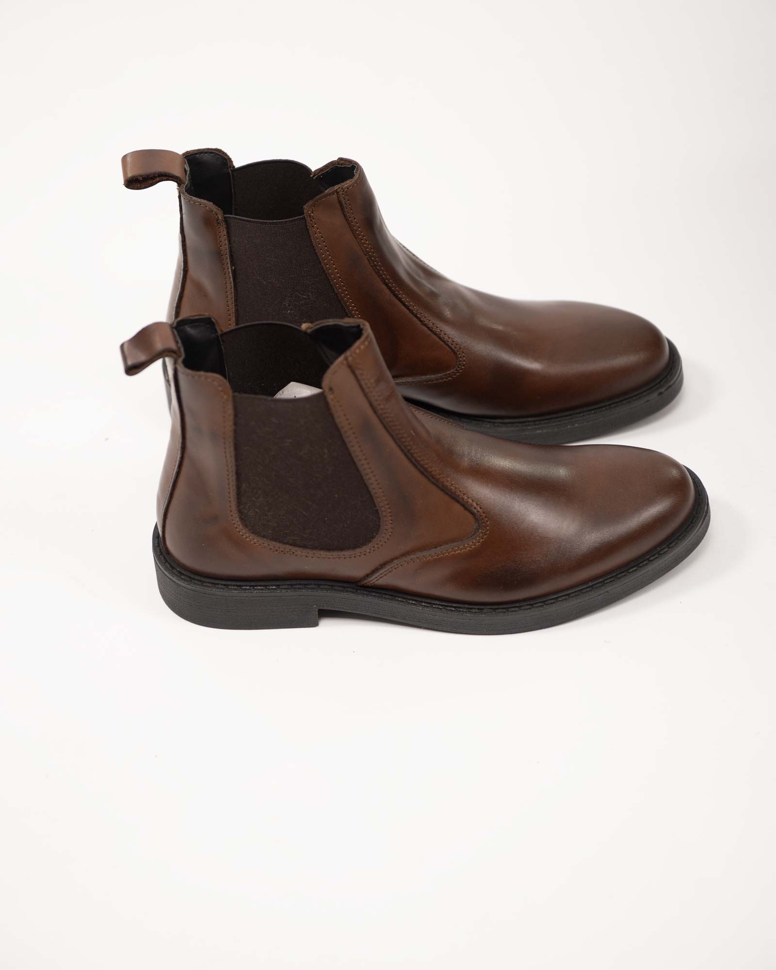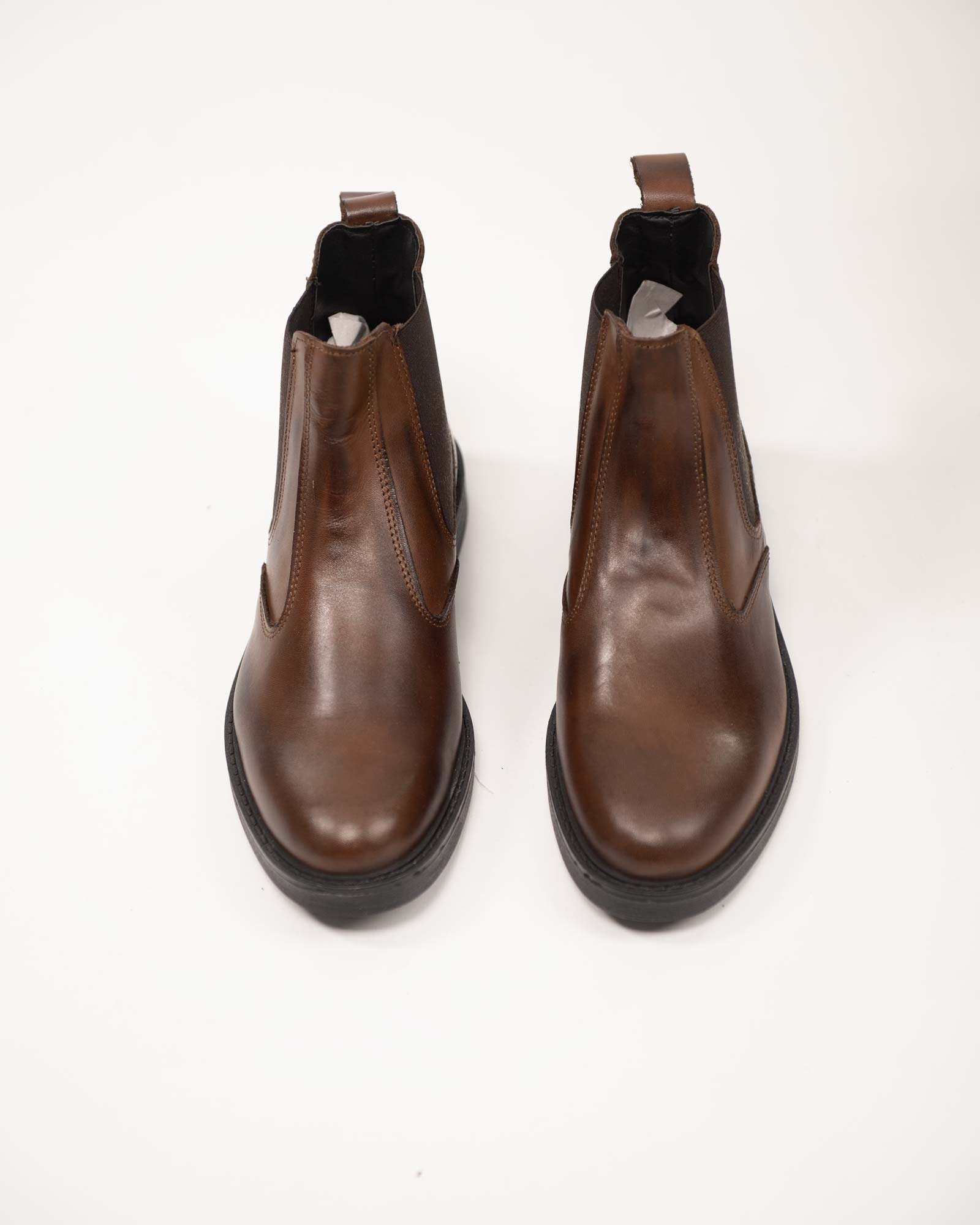 Stivale Beatles realizzati con tomaia in pelle e suola in gomma antiscivolo. Dotati di gambale con fasce elastiche. Costruzione interamente italiana.
