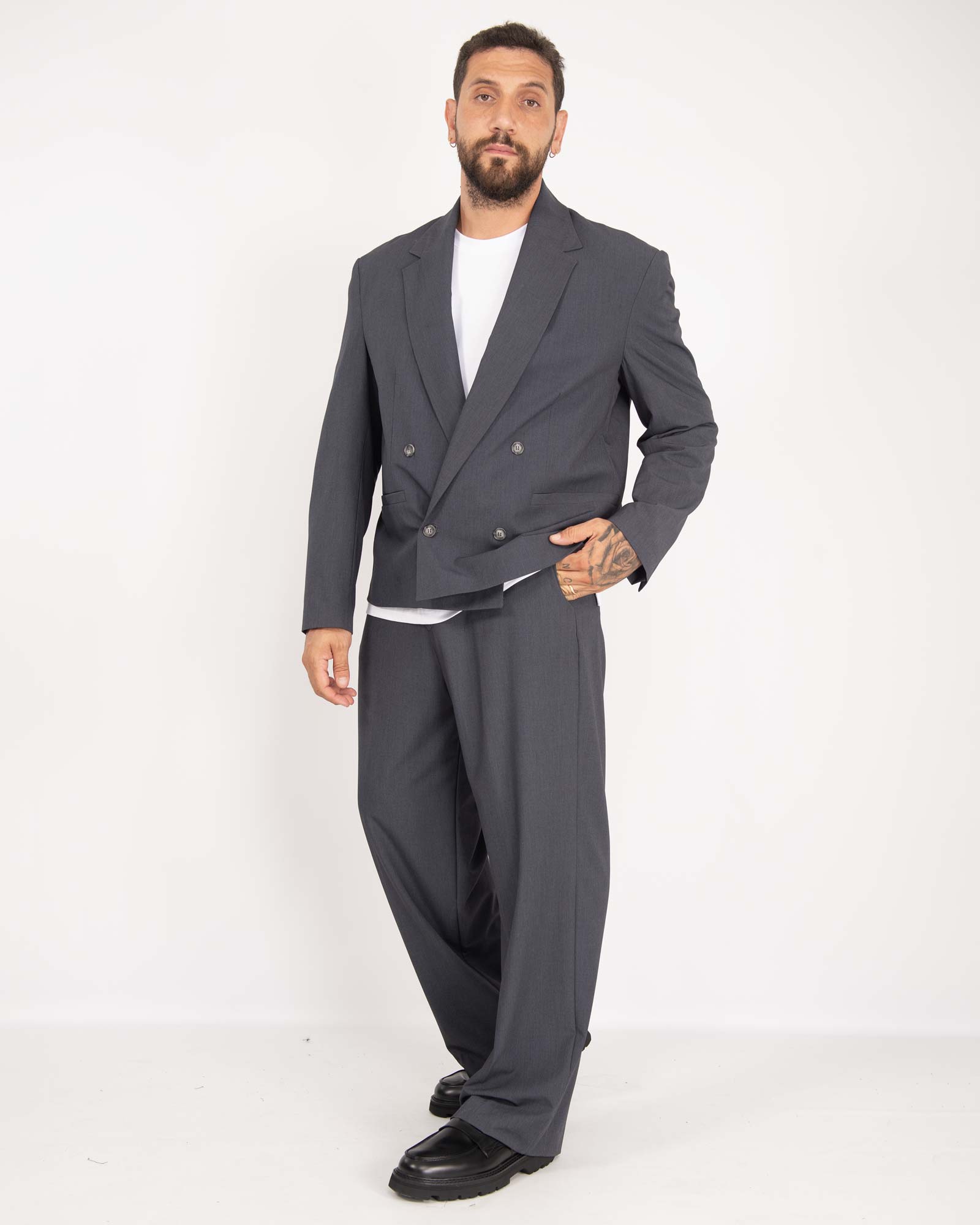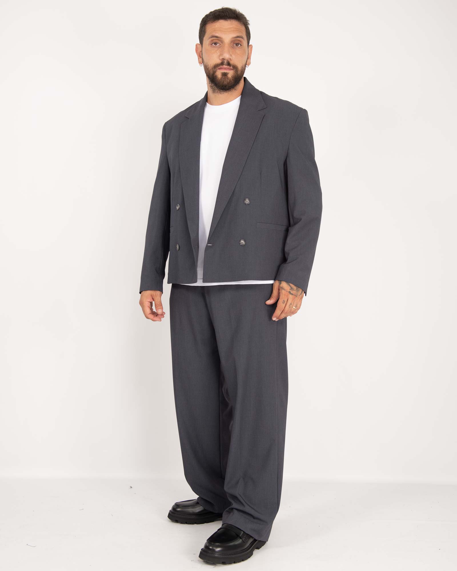 Abito London doppiopetto crop fondo largo piombo