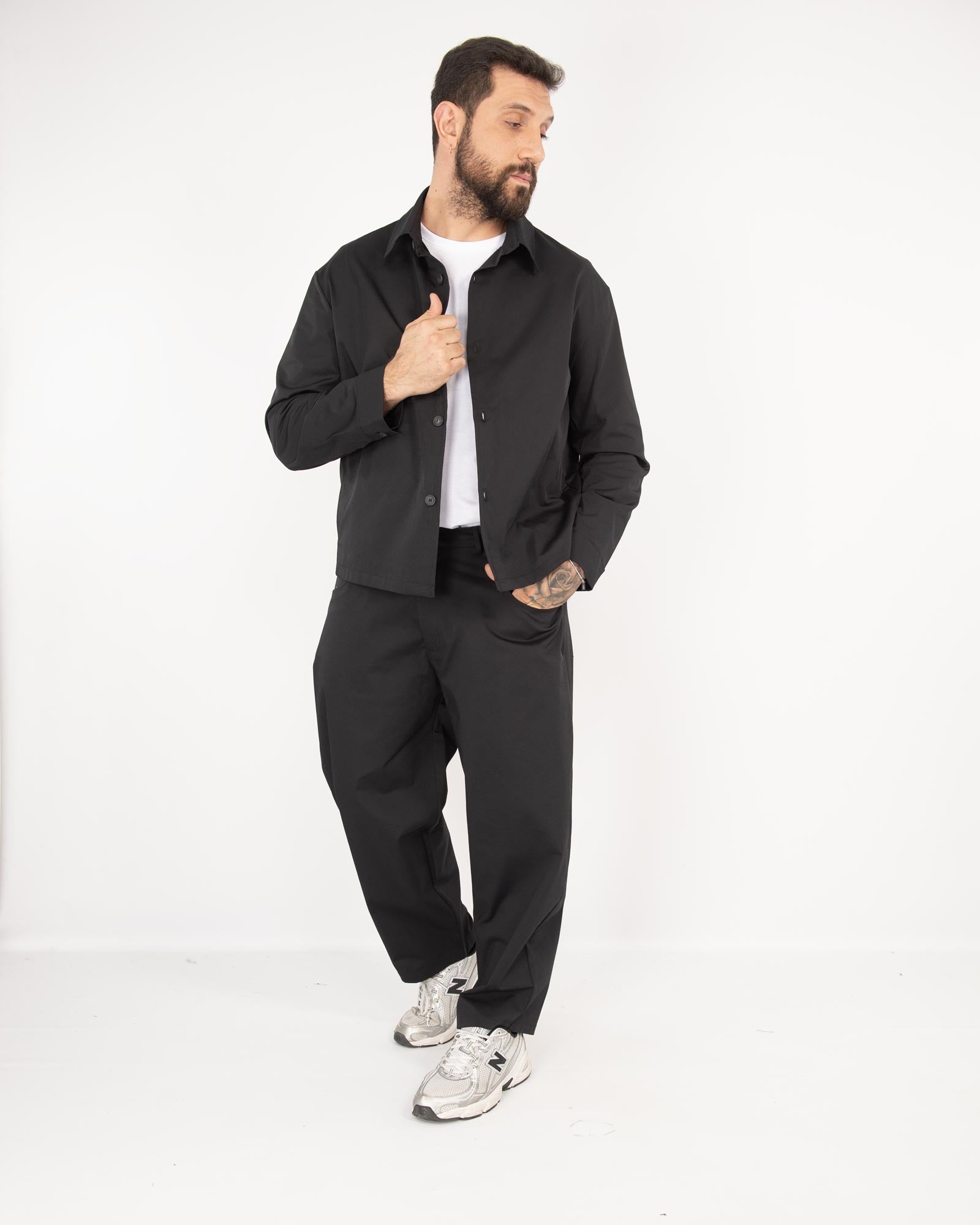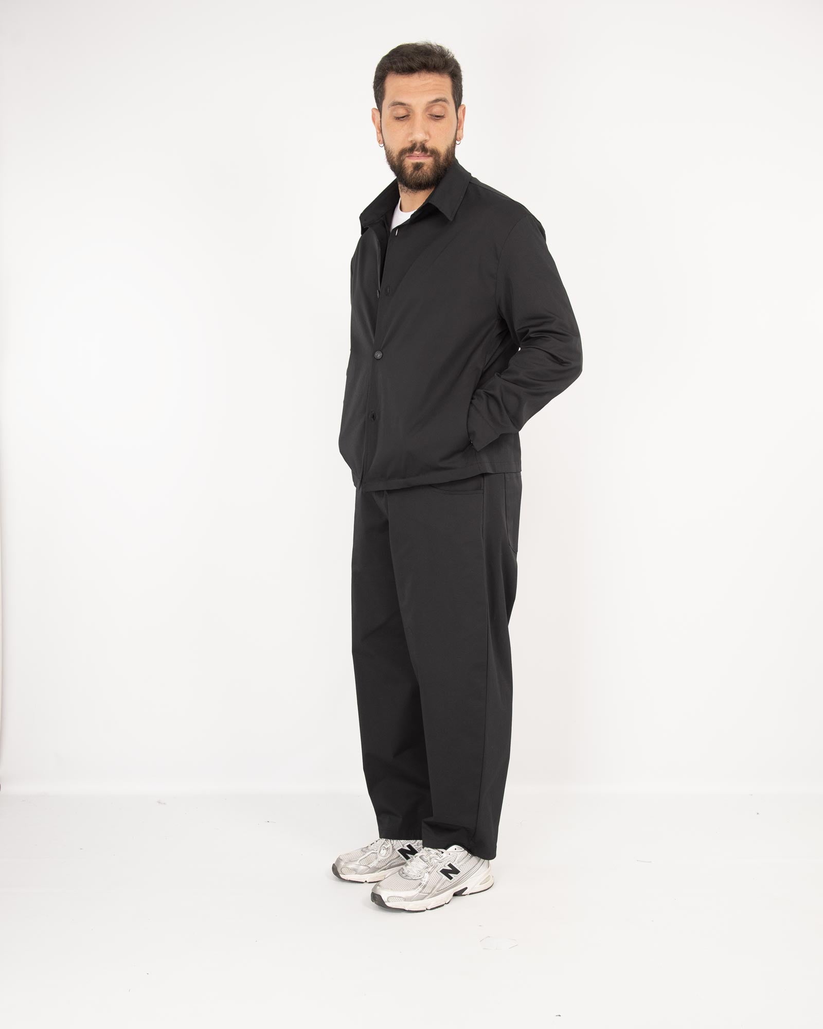 Coordinato balloon fit in gabardine nero