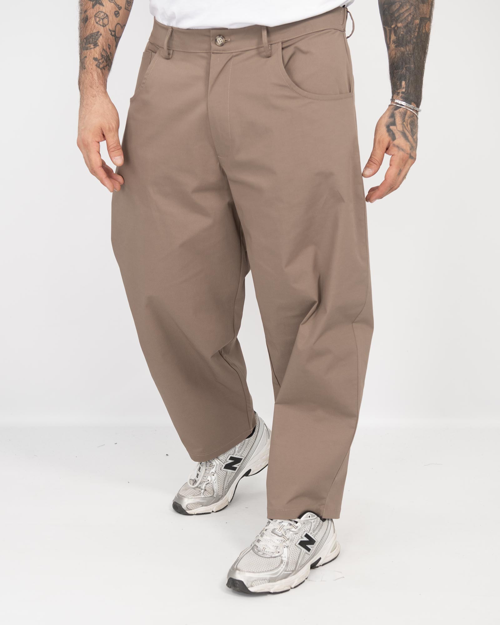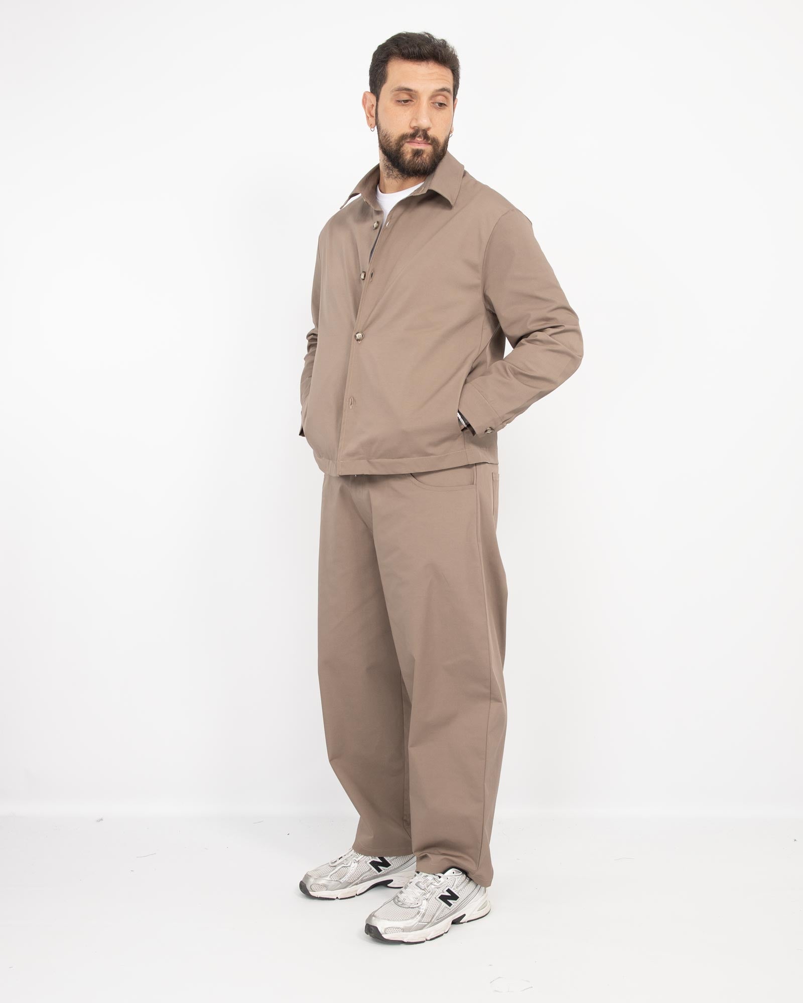 Coordinato balloon fit in gabardine fango