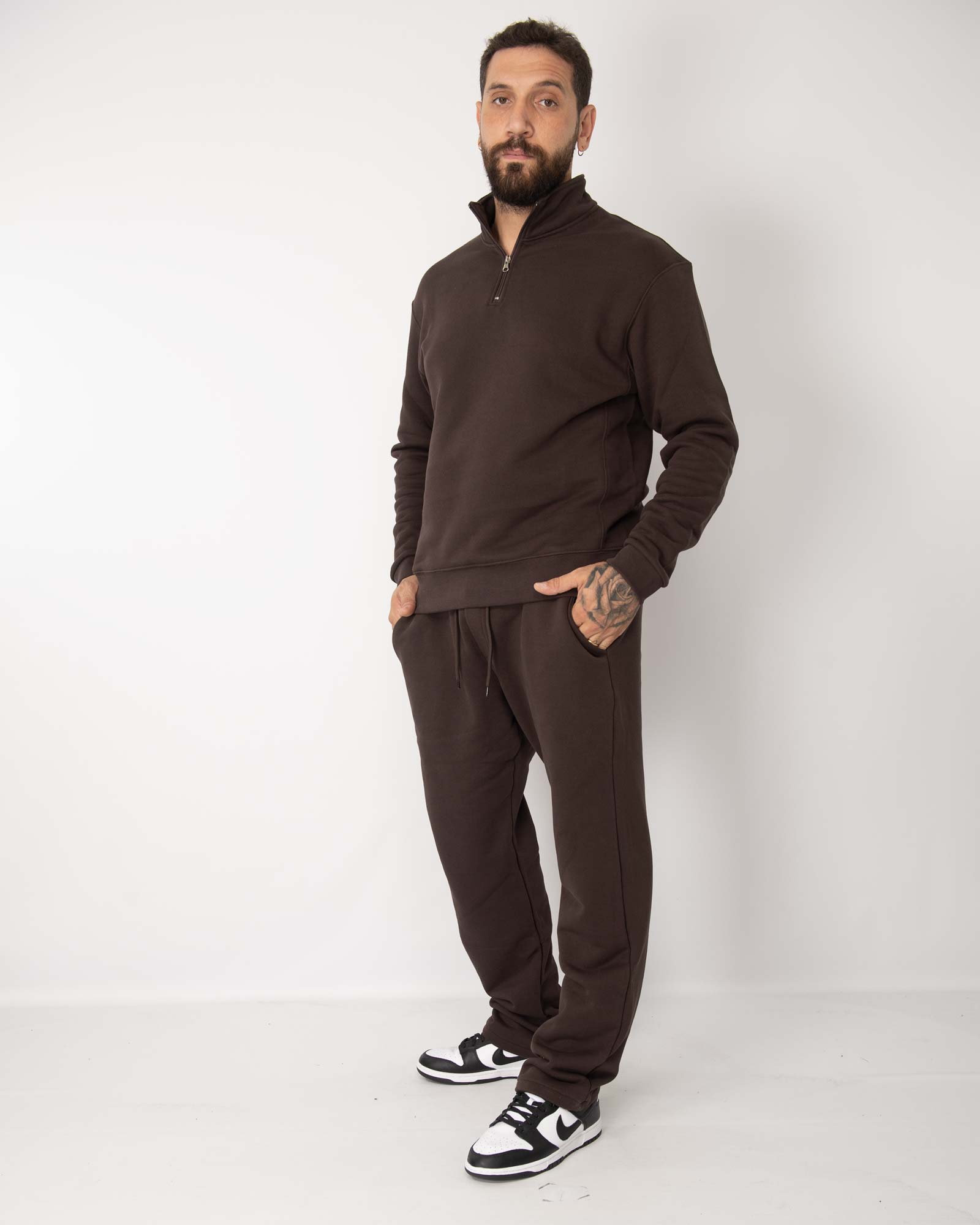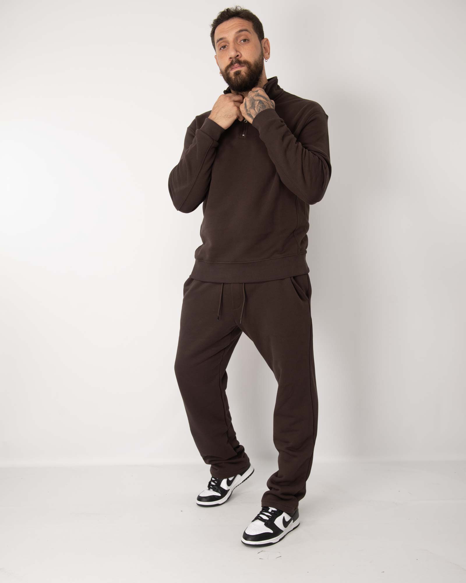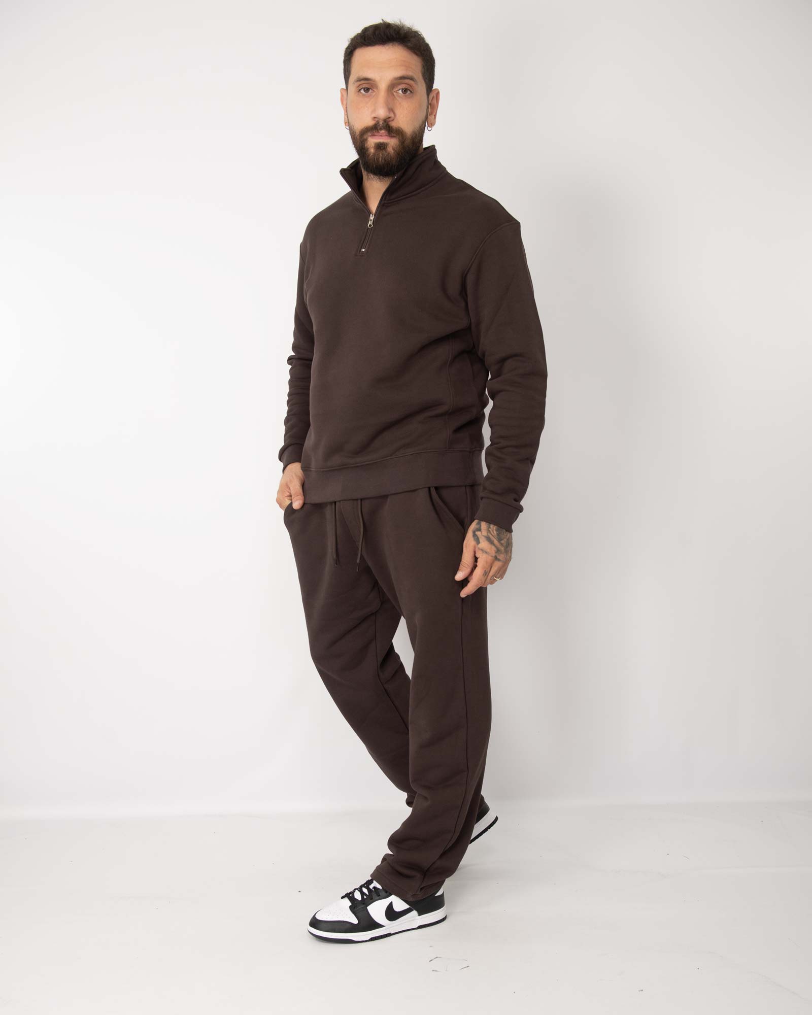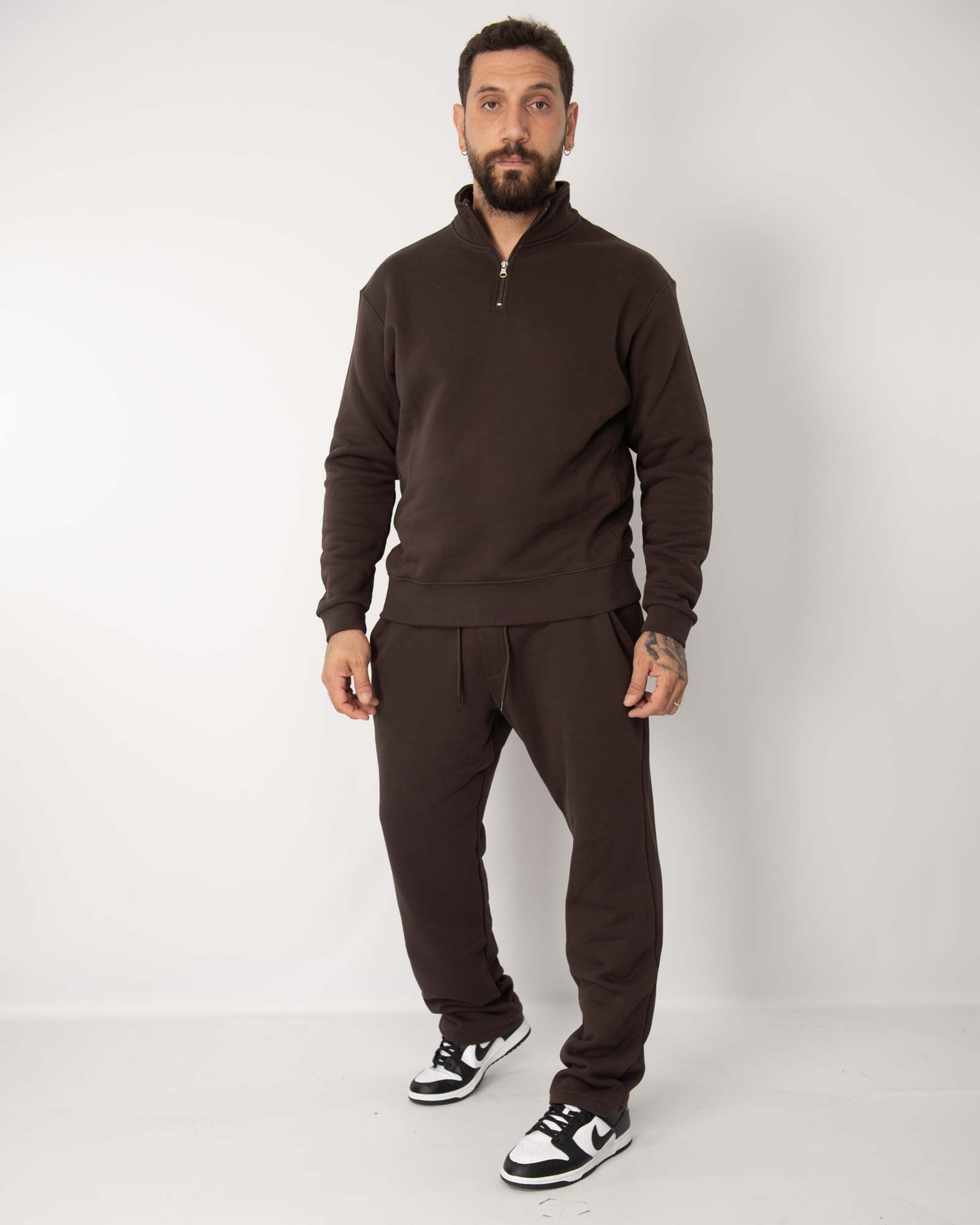 Coordinato tuta mezza zip cioccolato