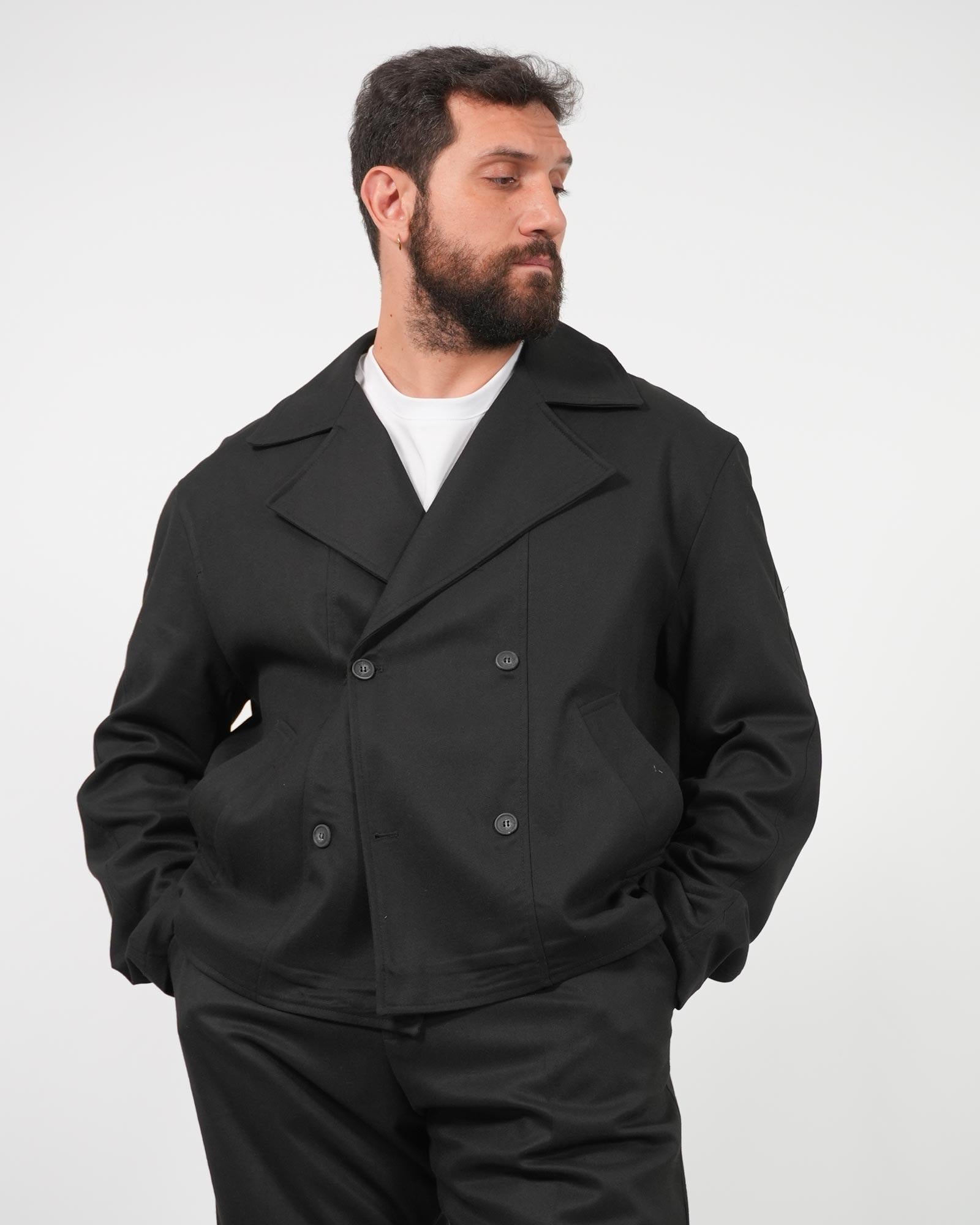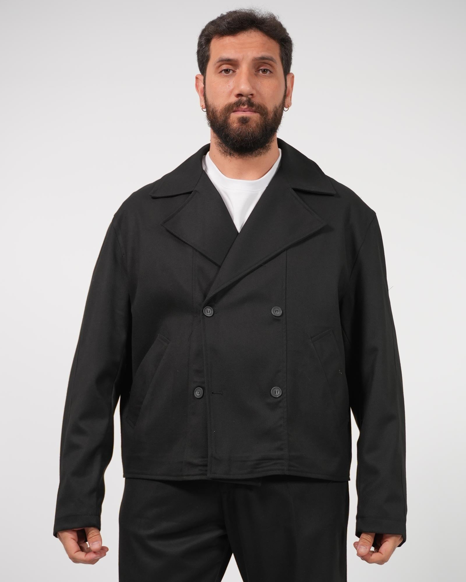 Giacca doppiopetto cropped over nero