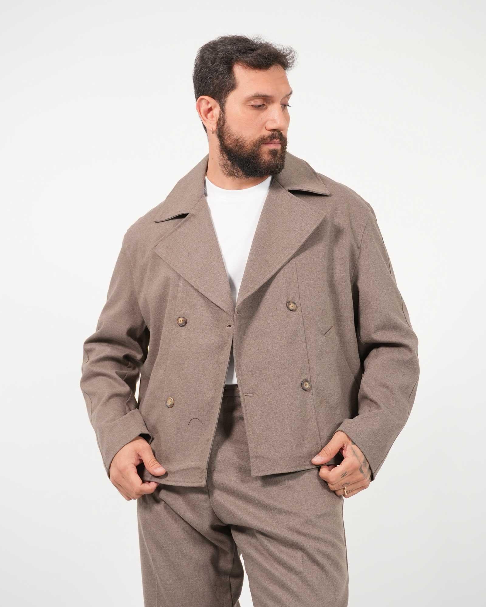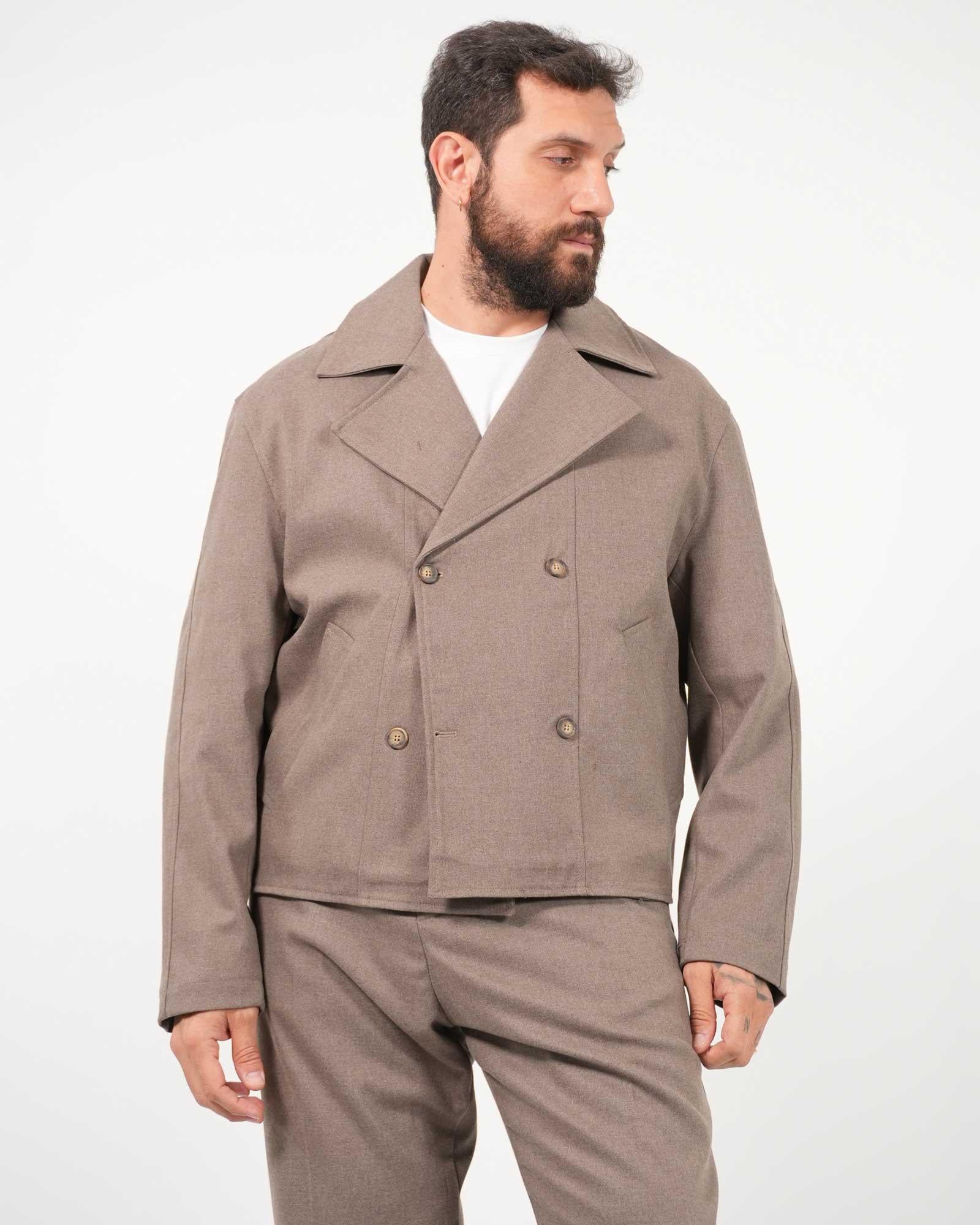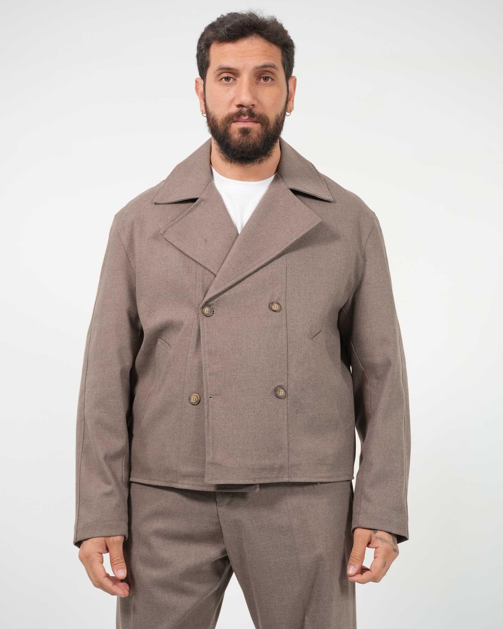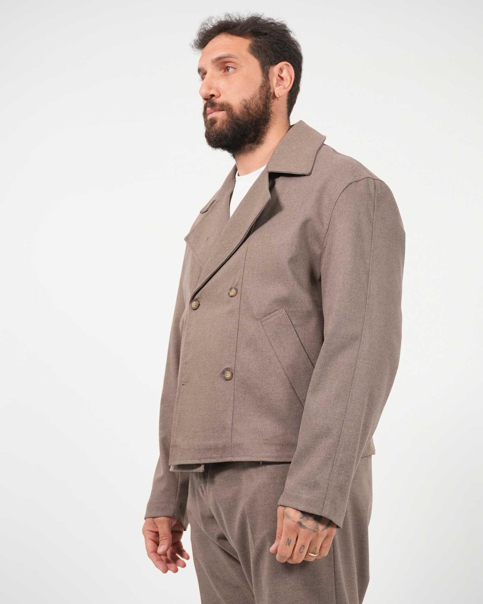 Giacca doppiopetto cropped in in flanella con motivo a quadri, presenta revers classici e spalle leggermente strutturate, vestibilità abbastanza ampia. Il modello in foto indossa taglia 54 per altezza 1,85cm e peso 97kg.