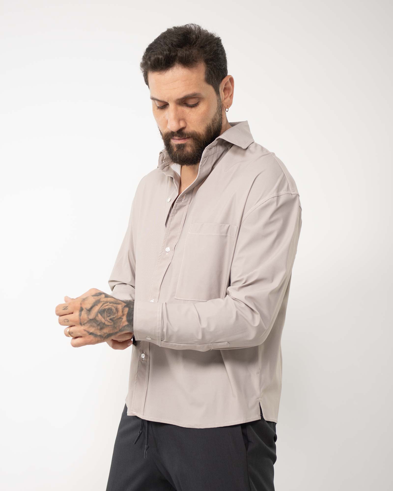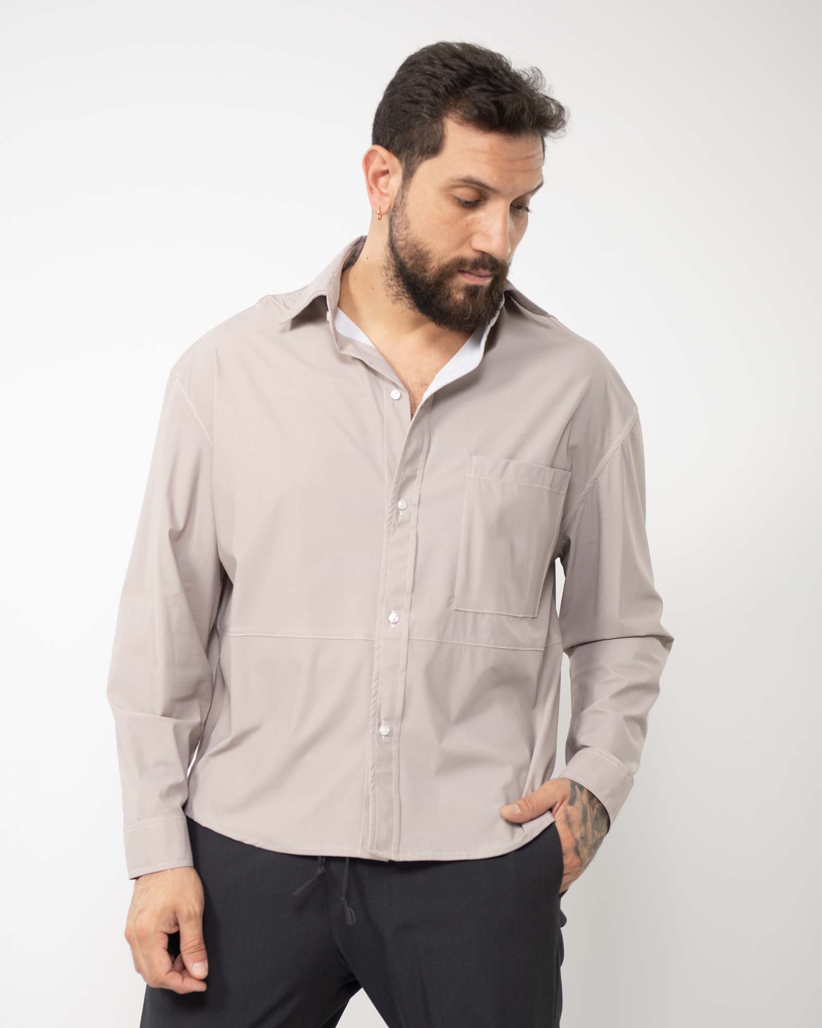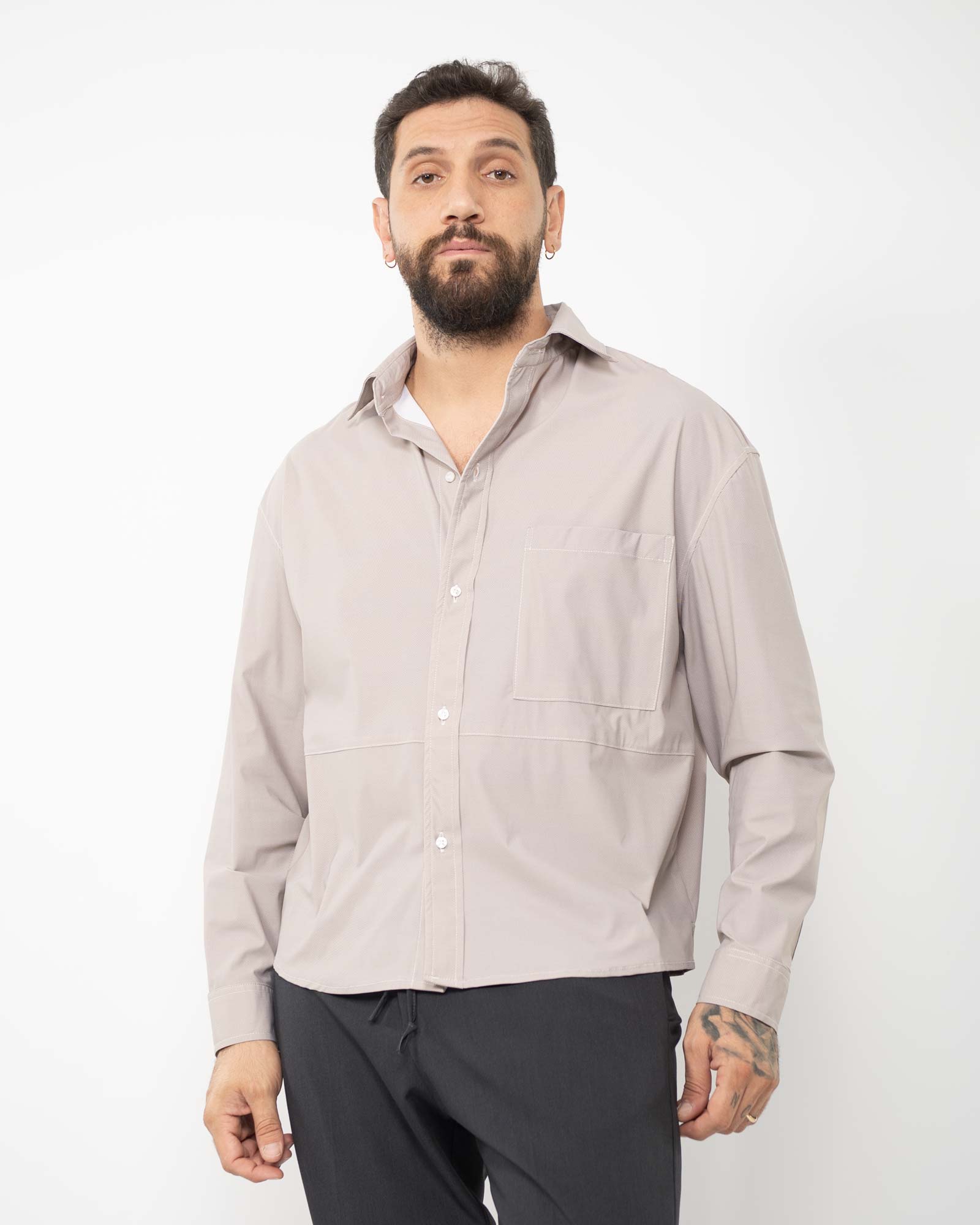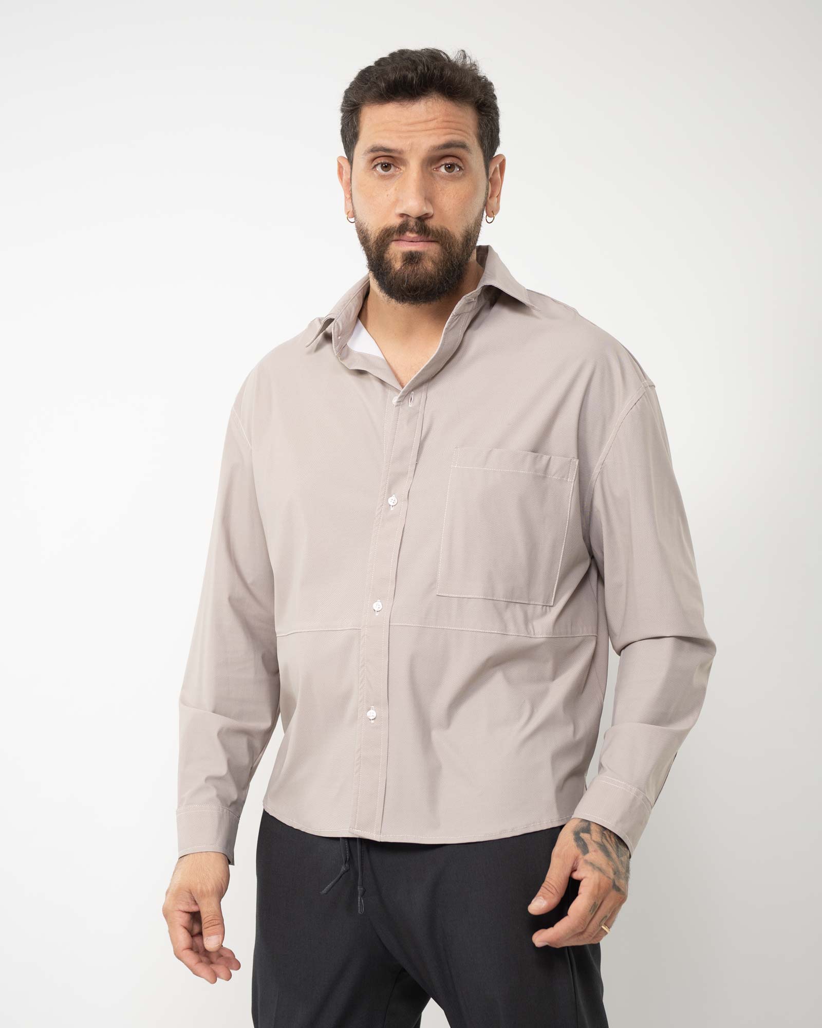 Camicia boxi fit fluida righe beige