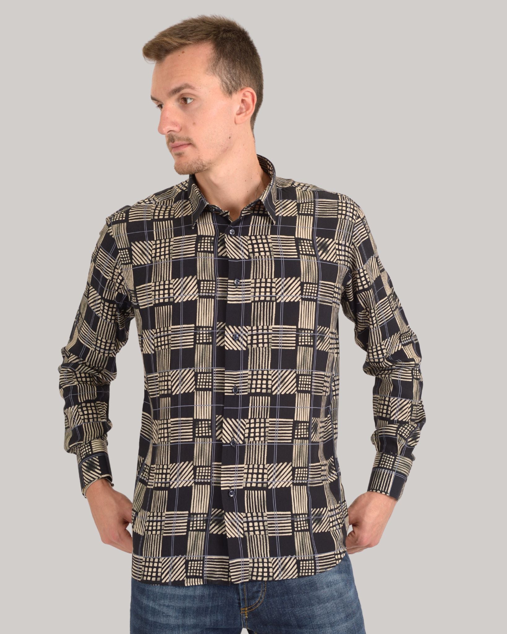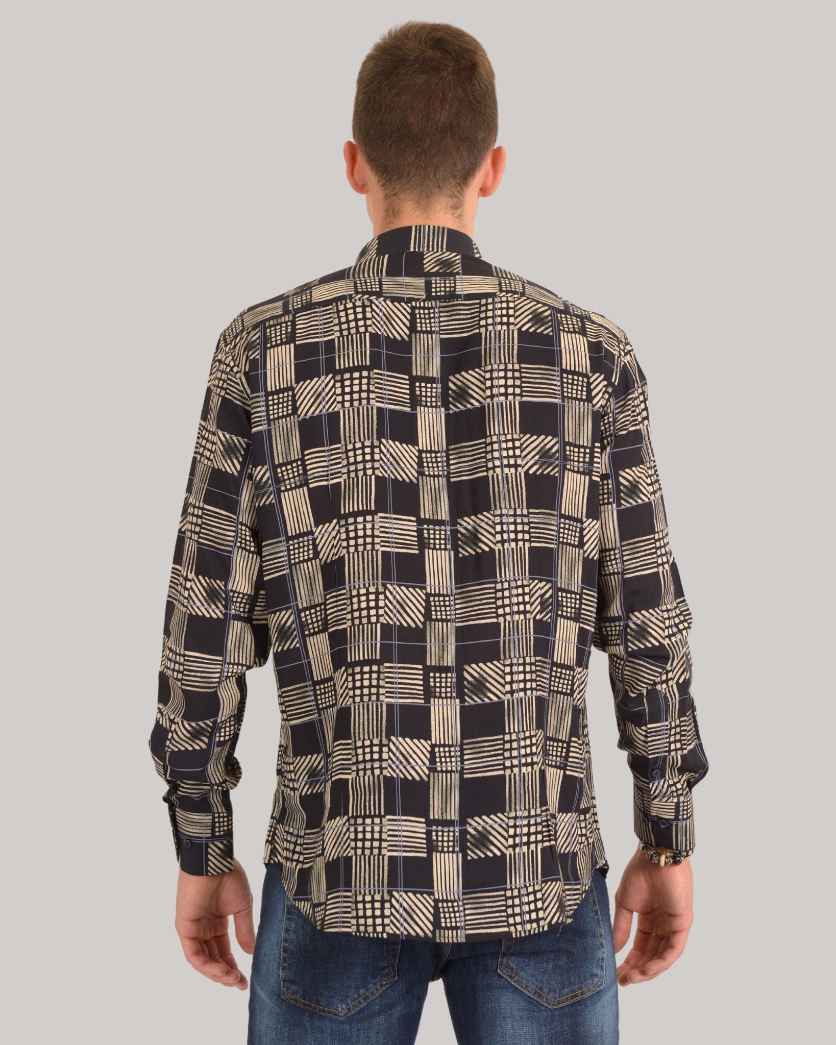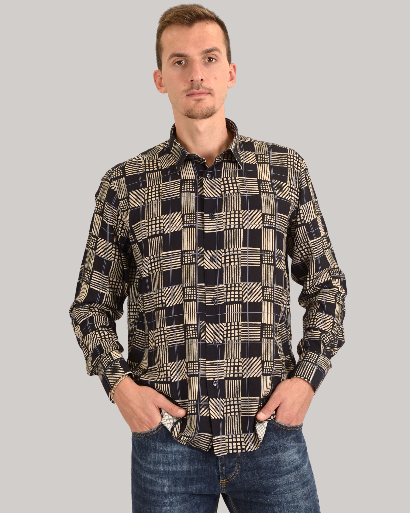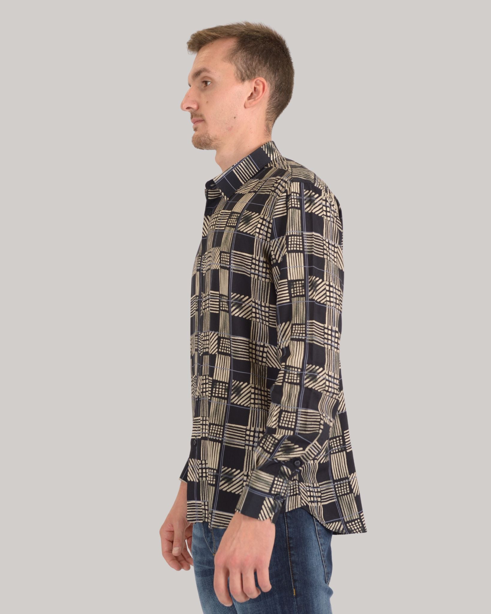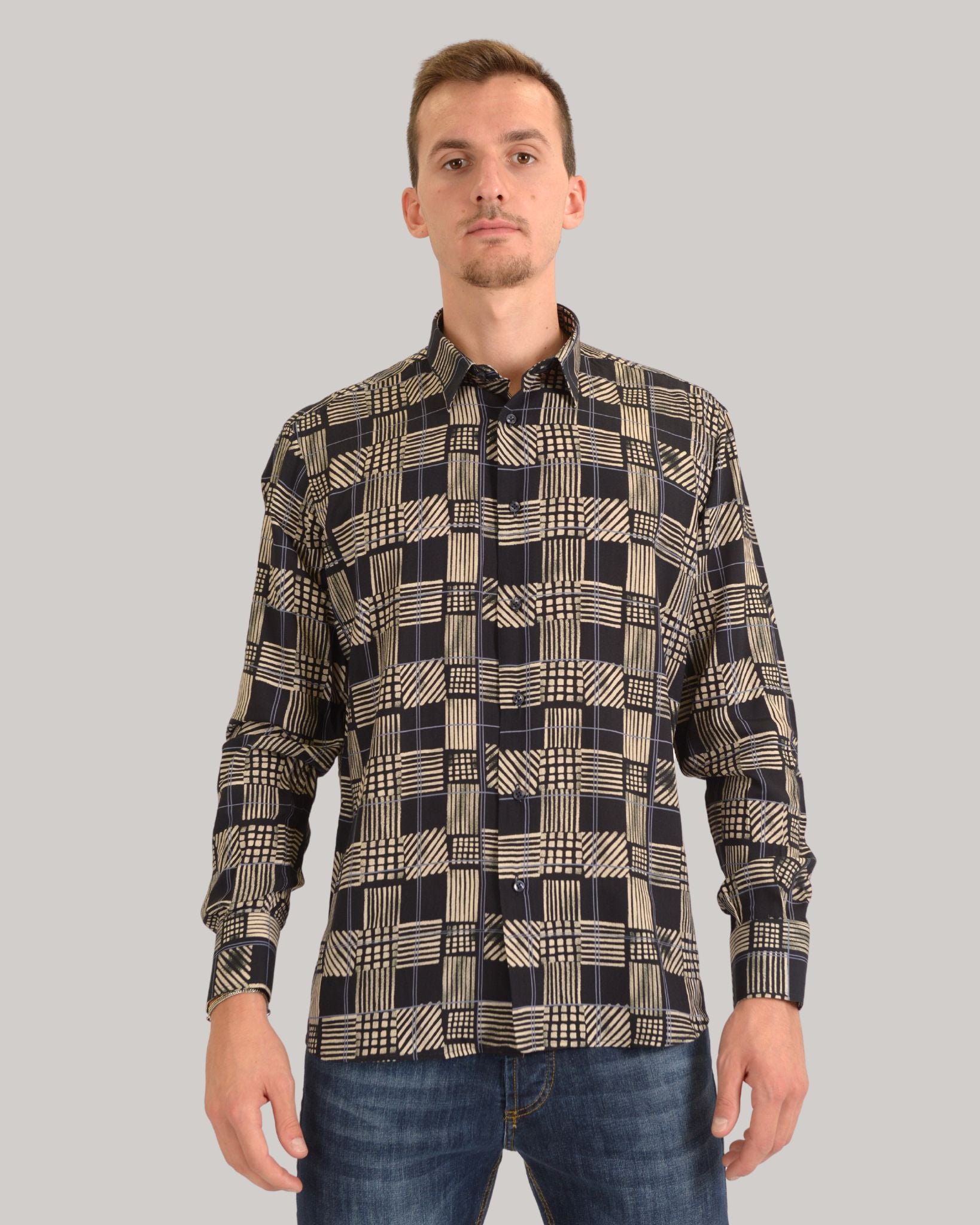 Camicia Regular Fit con classico colletto a manica lunga. Prodotta in tessuto stampato viscosa con produzione artigianale italiana.Il modello in foto indossa taglia L ed è alto 1.85 cm