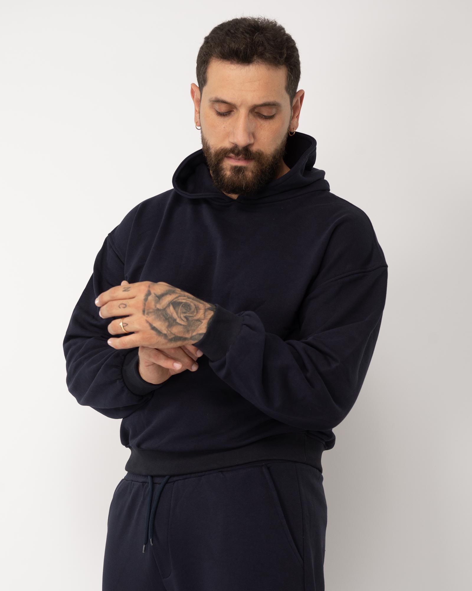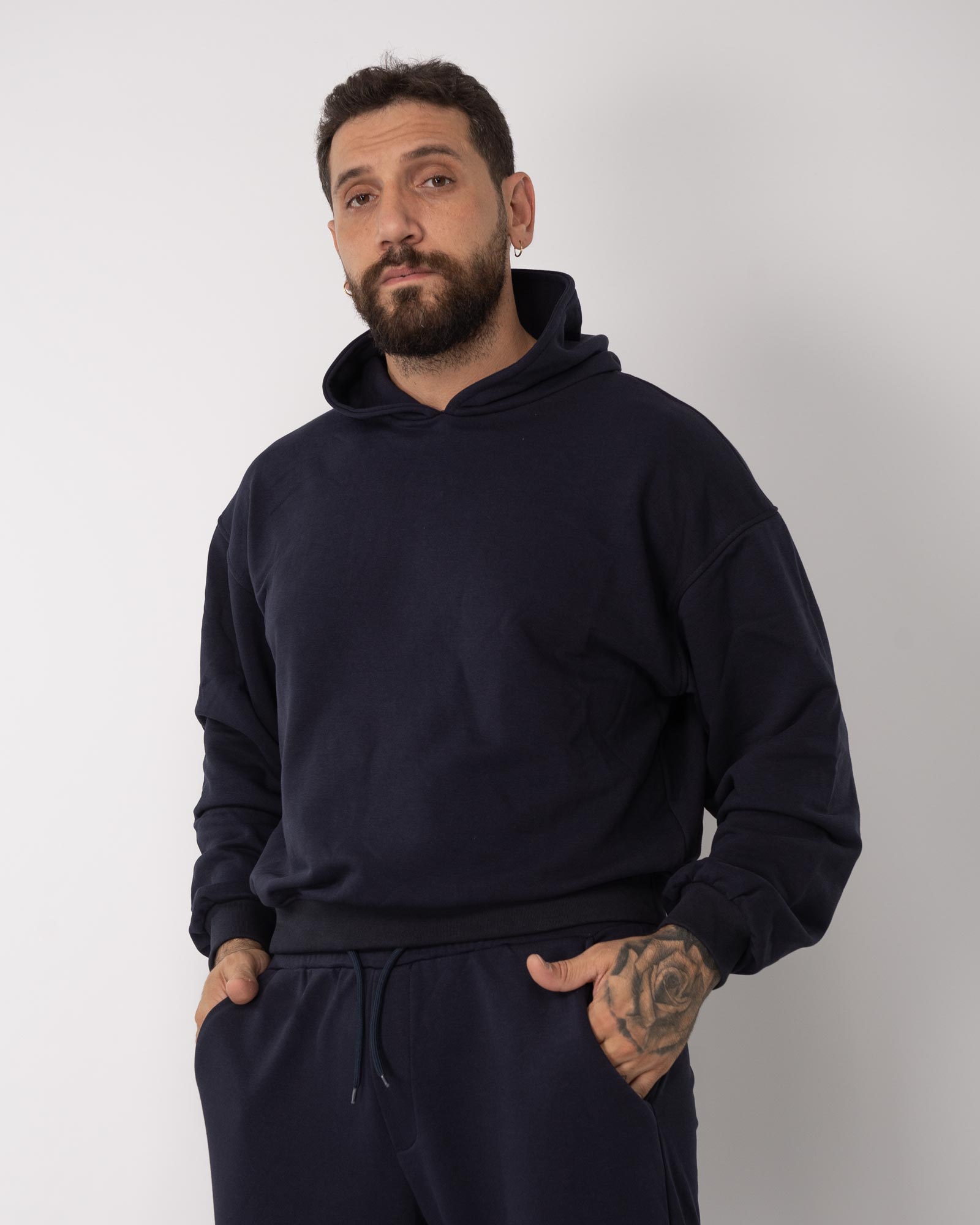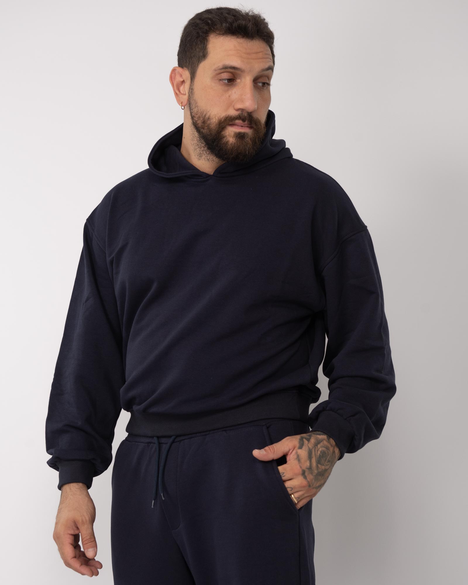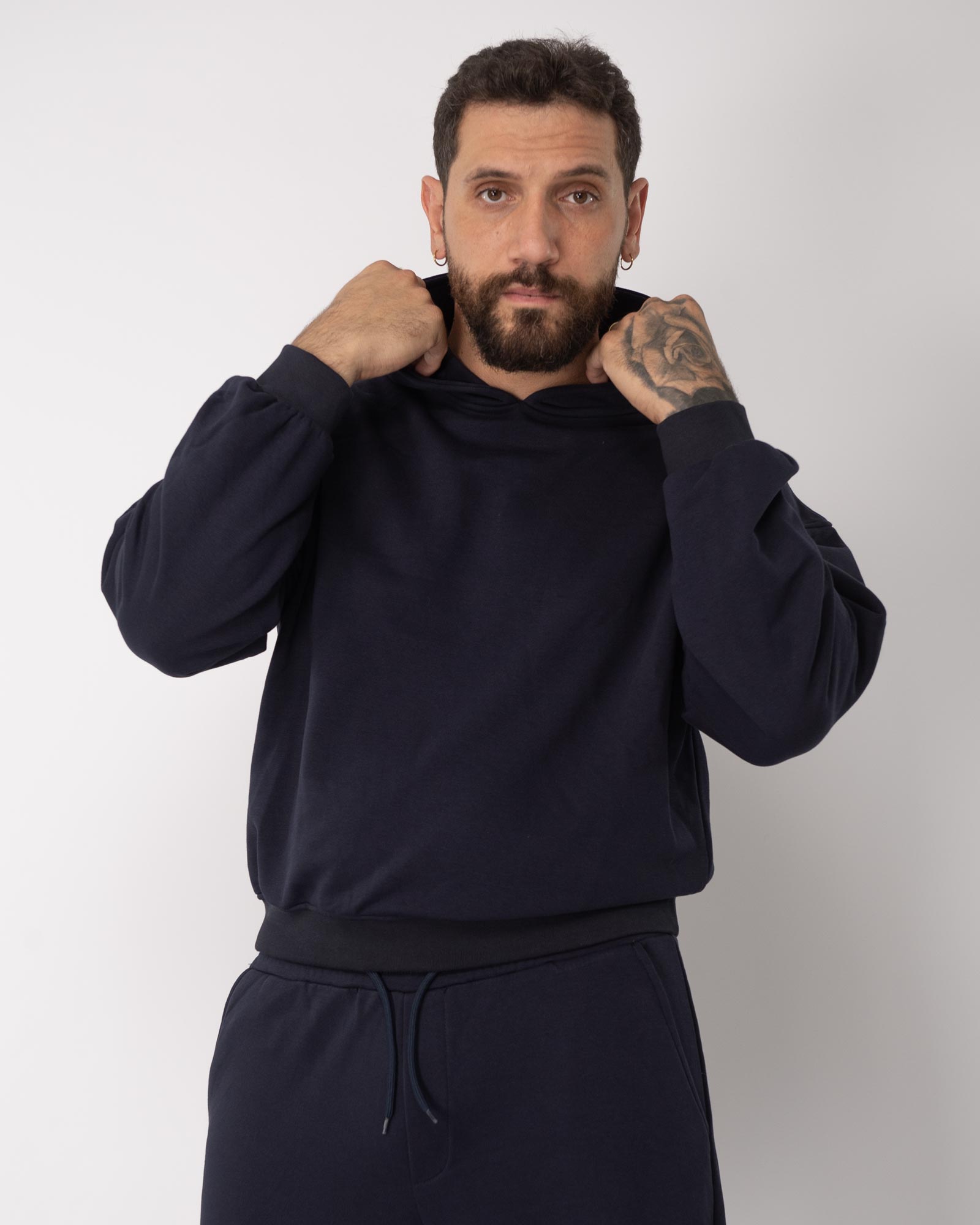 Felpa cropped con cappuccio blu