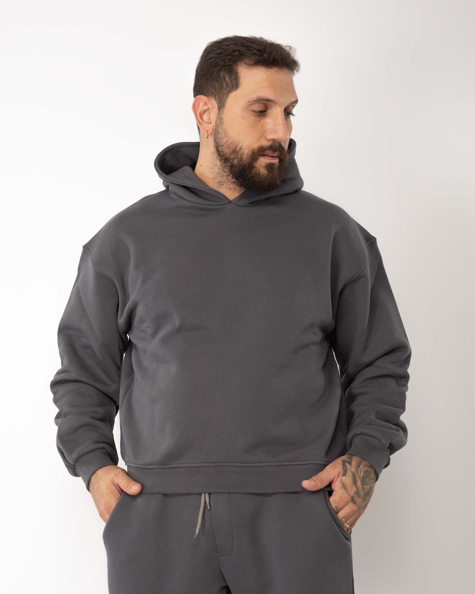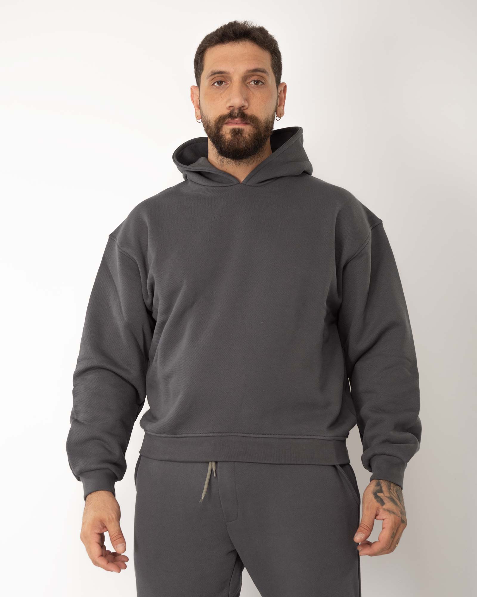 Felpa cropped con cappuccio grigio topo