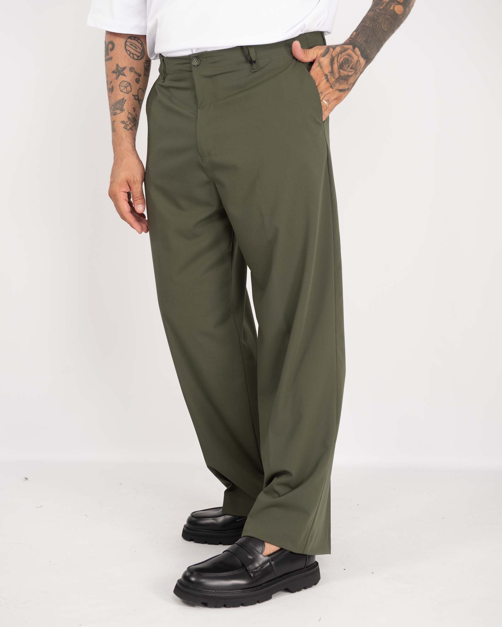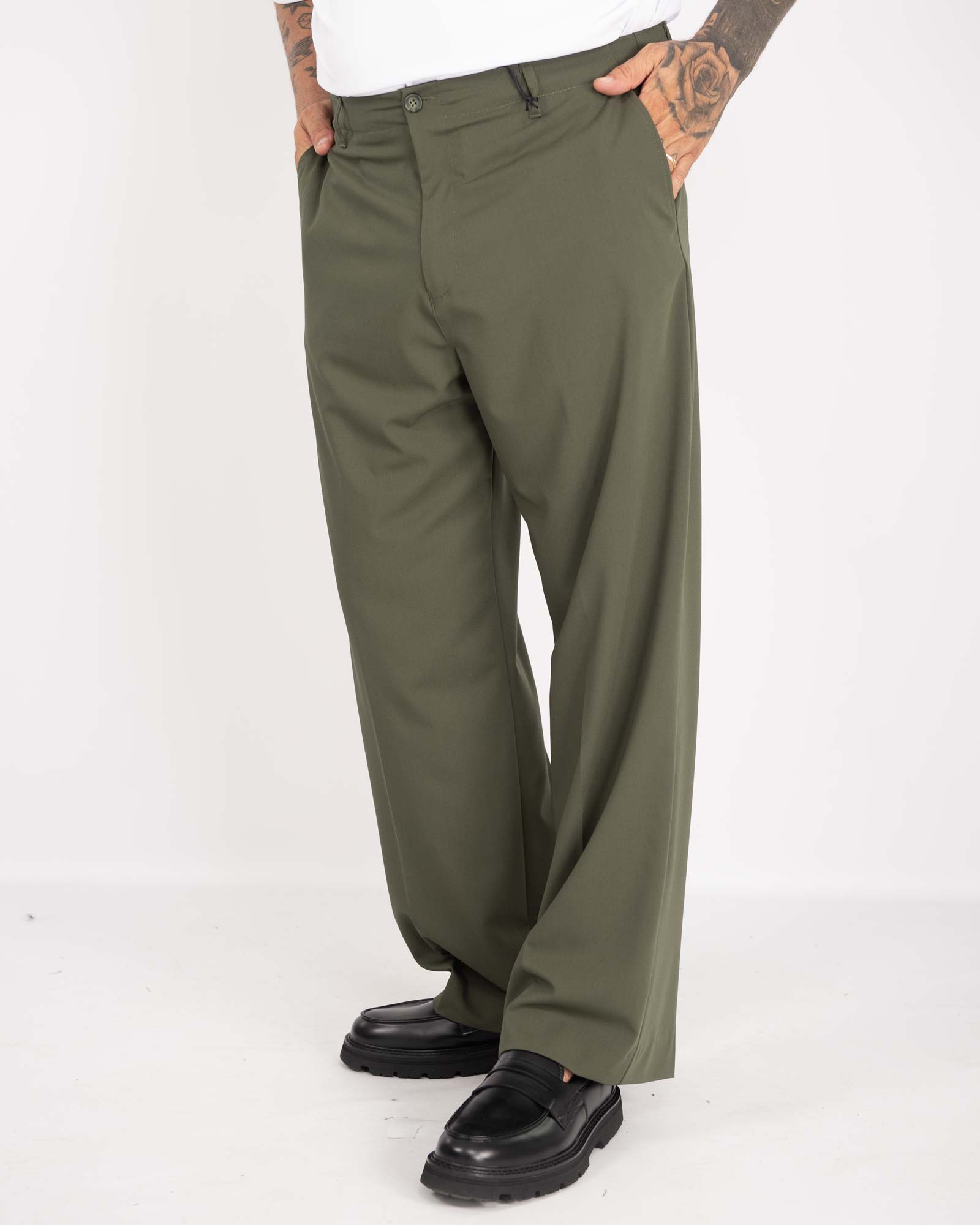 Pantalone London fondo ampio verde militare