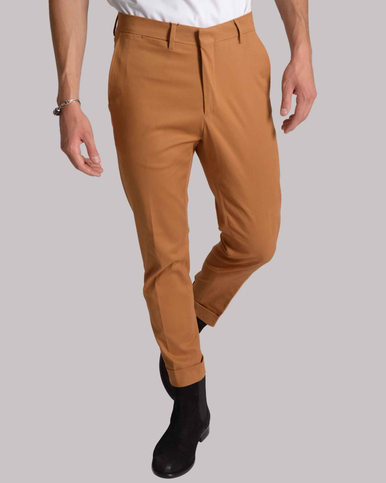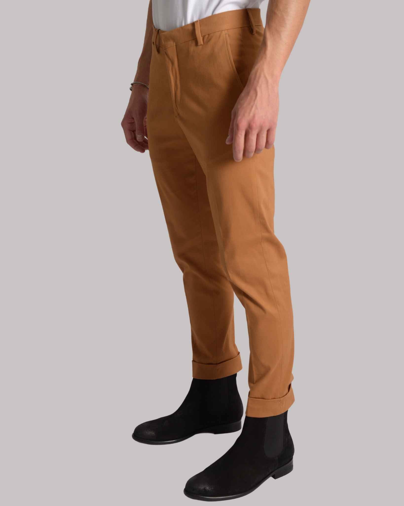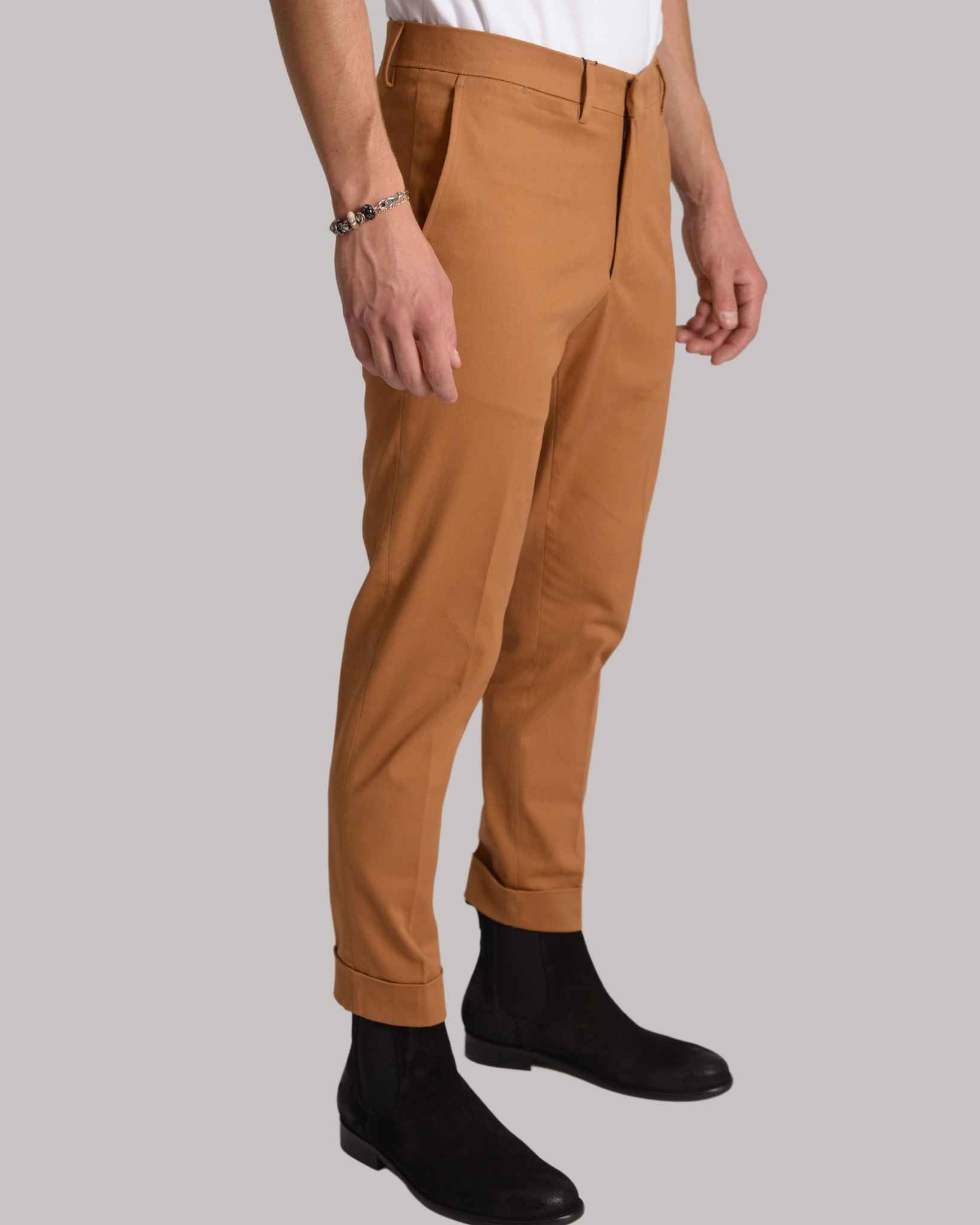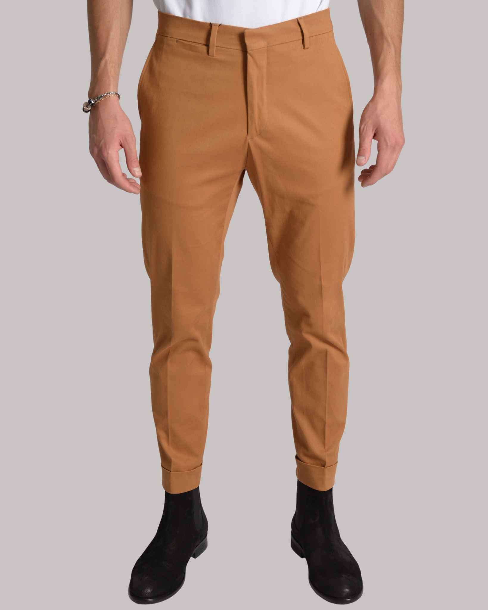 Pantalone modello gabardine con piega alta sul fondo e vita regolare. Presenta chiusura con gancetto e zip e dettaglio di tasca laterale e tasche a filetto sul retro, produzione made in Italy.Il modello in foto indossa taglia 46, le sue misure: altezza 1,85 cm Si consiglia di acquistare una taglia in più.