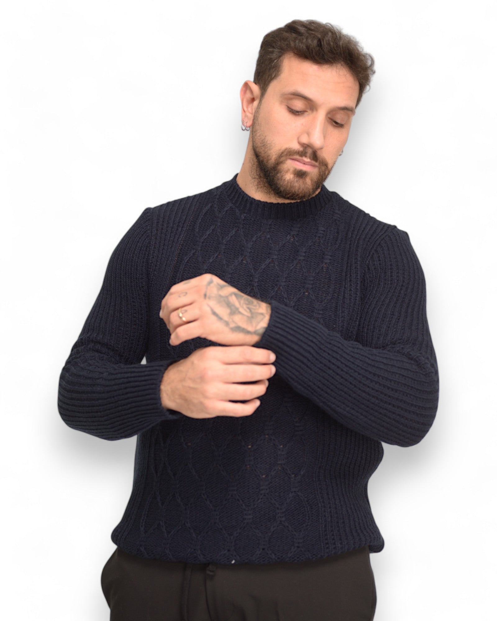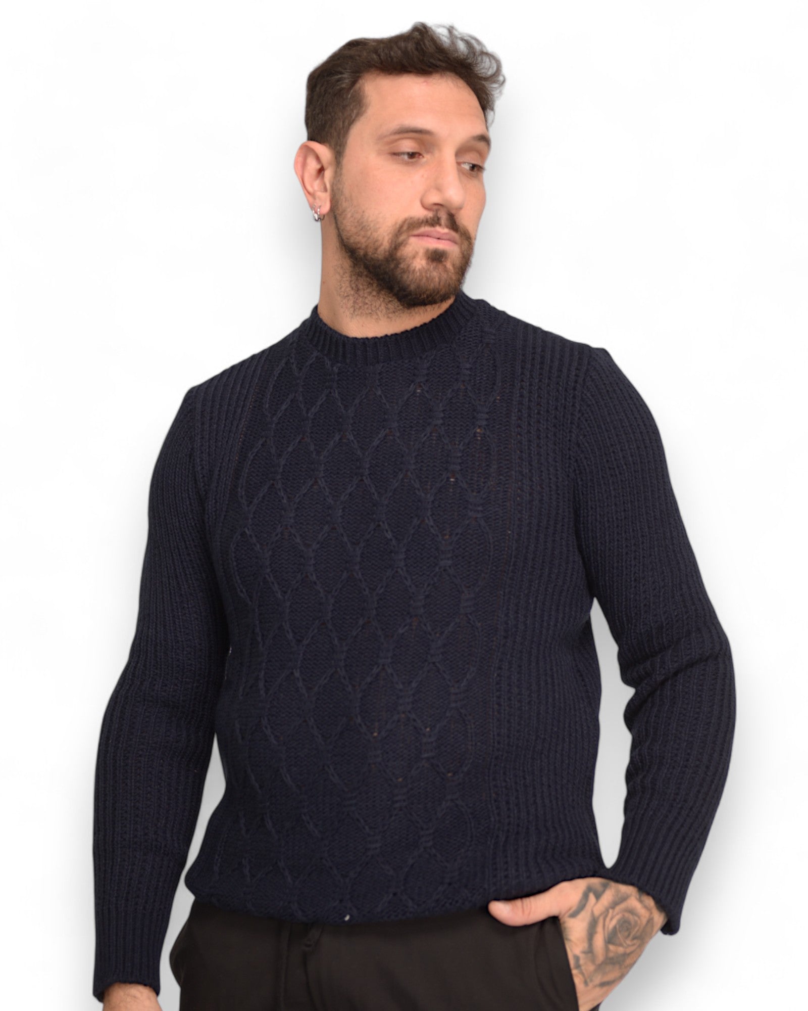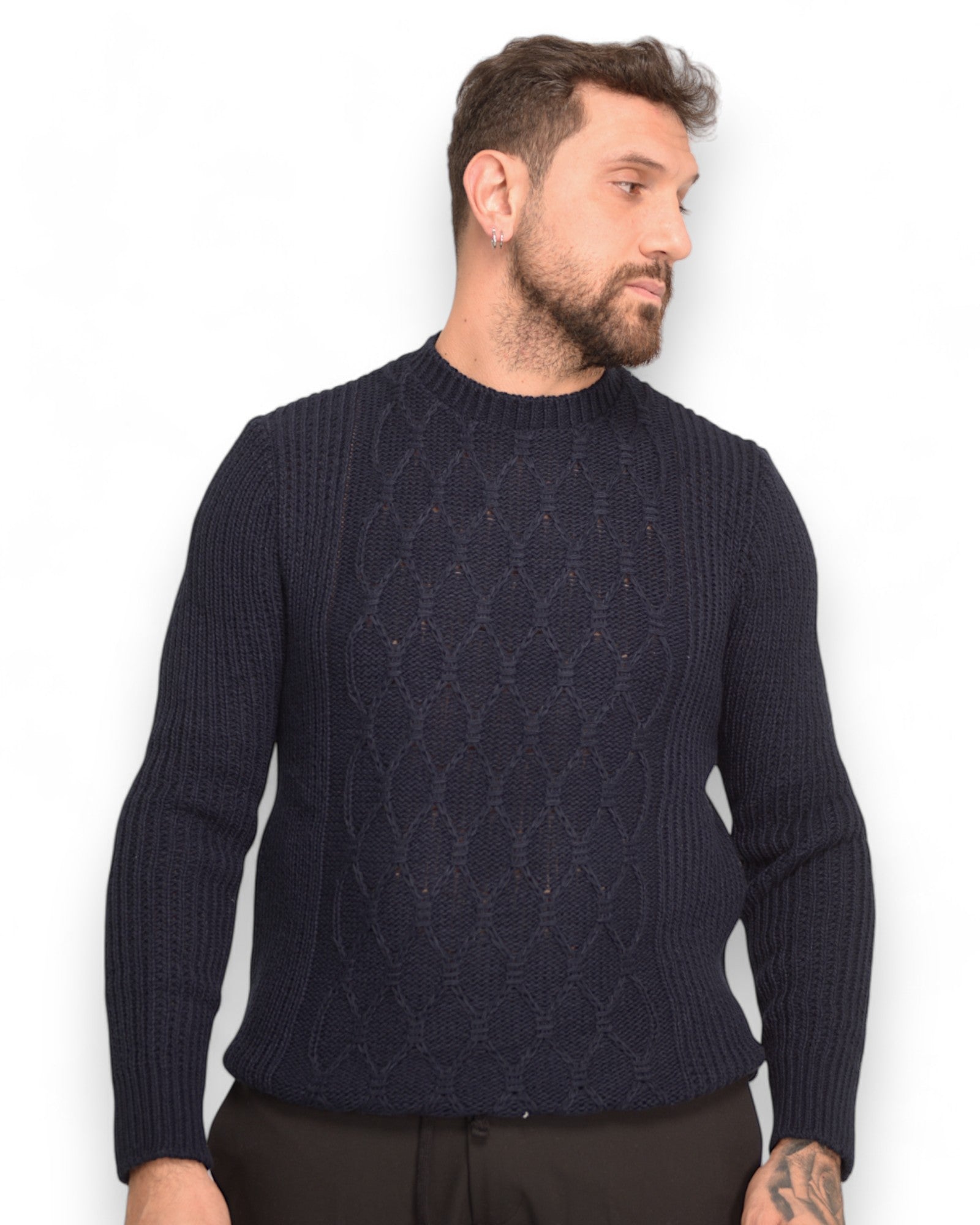 Pullover girocollo tramato blu