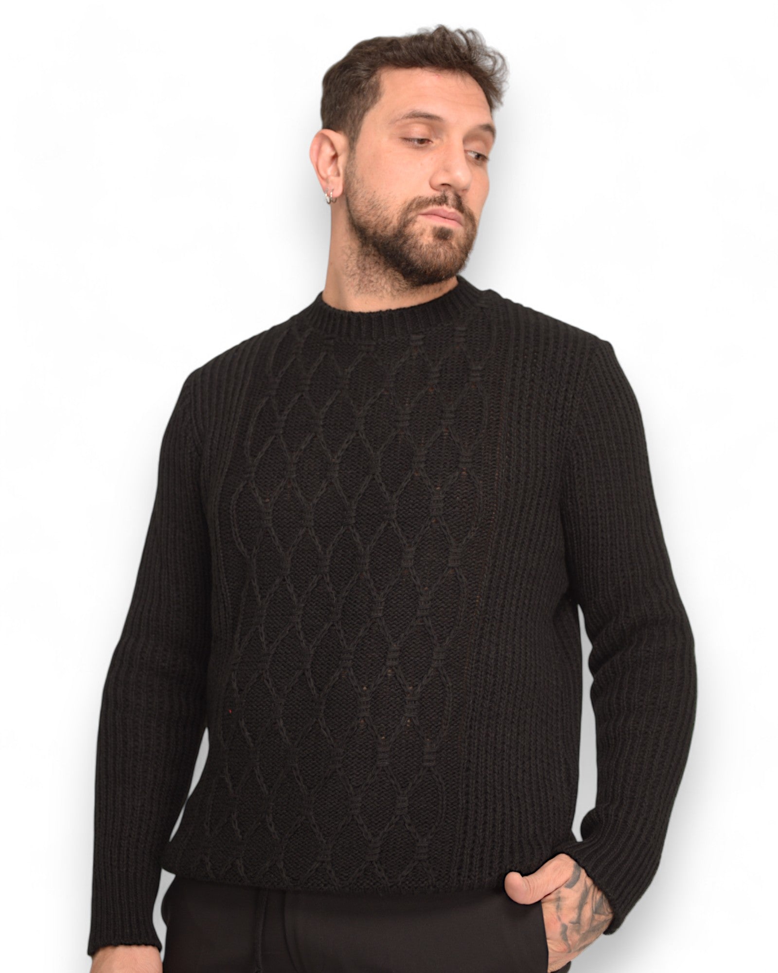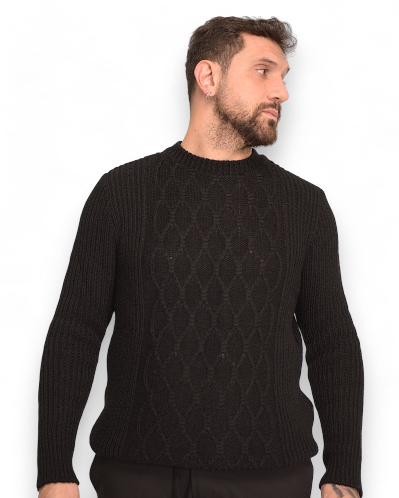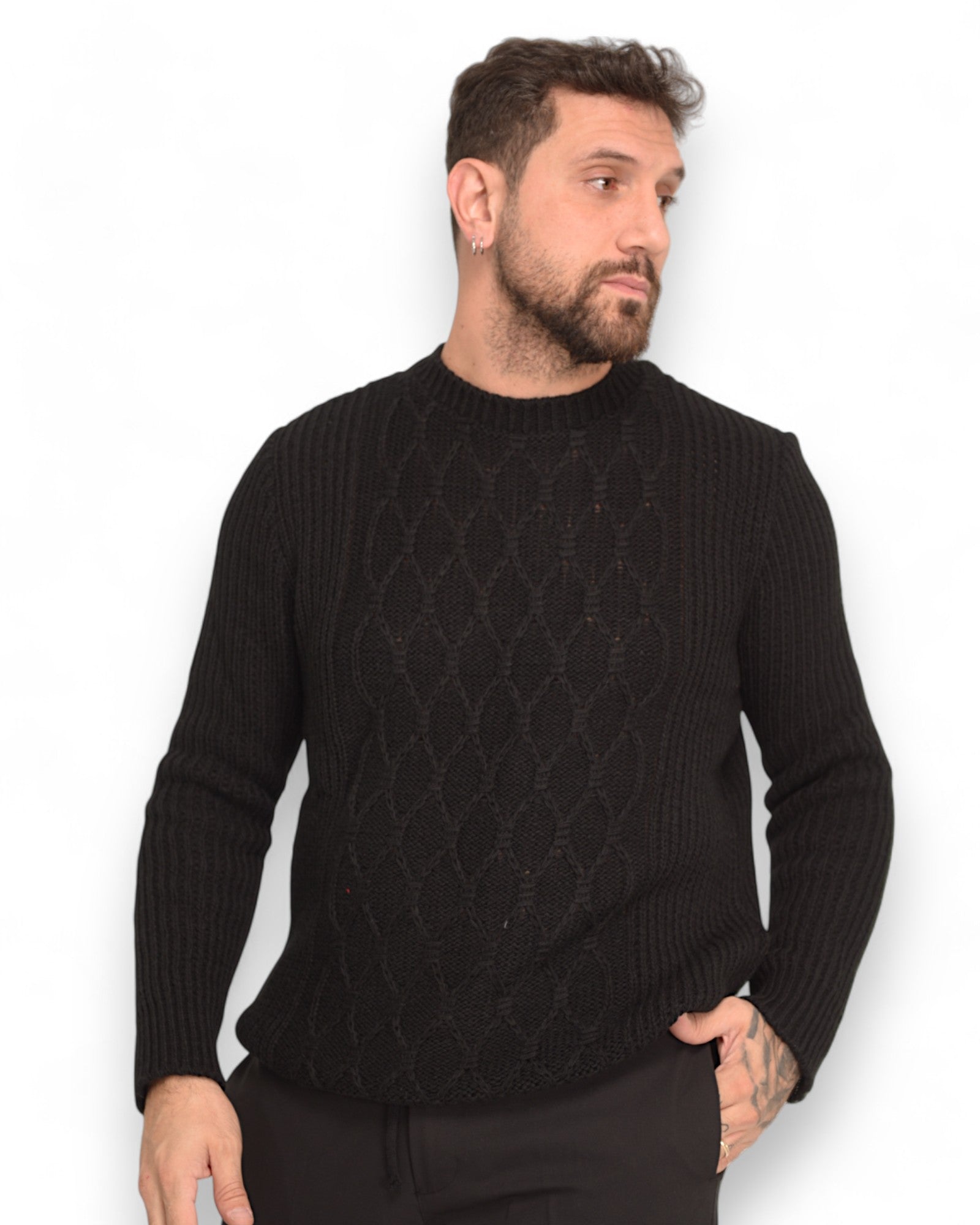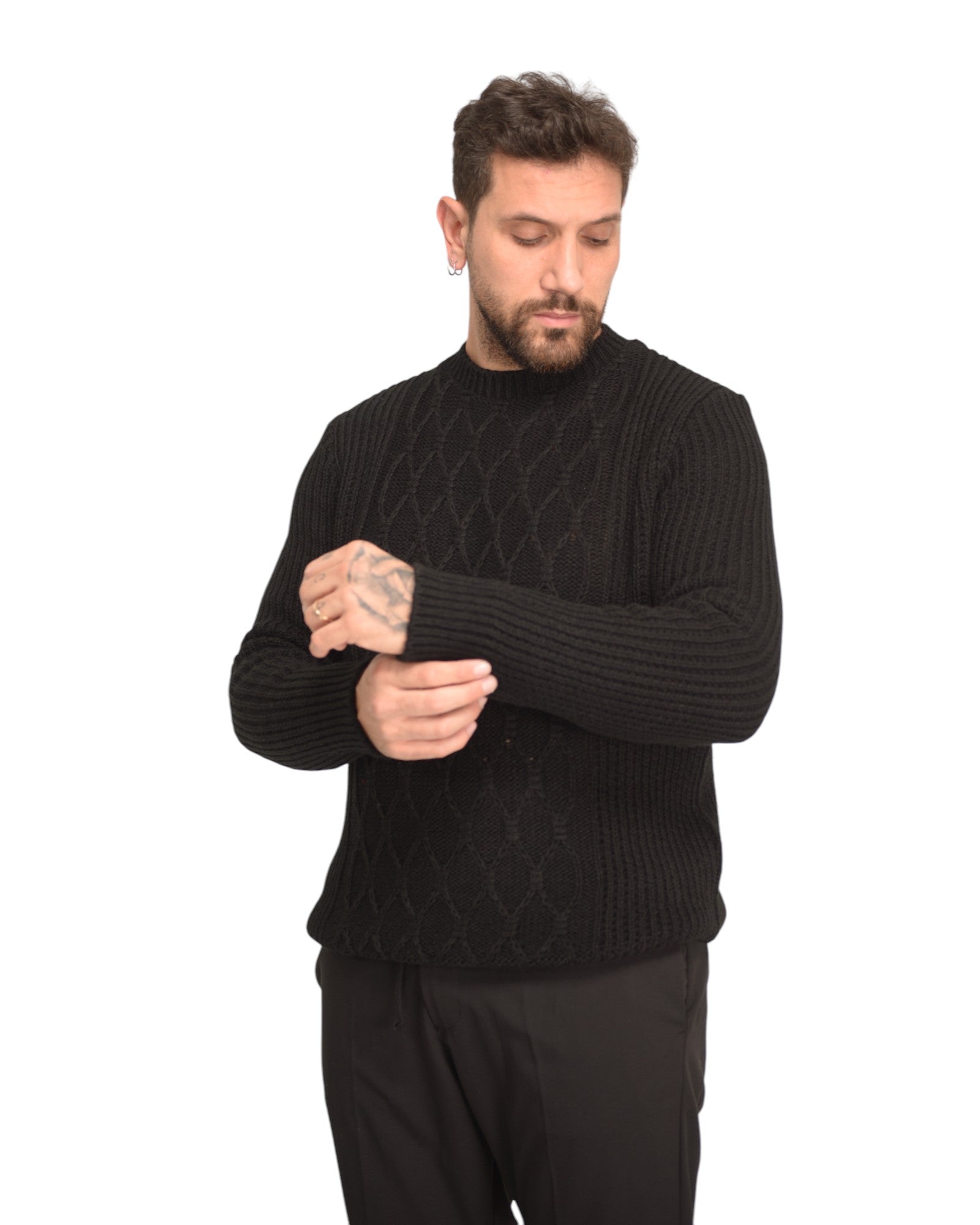 Pullover girocollo tramato nero