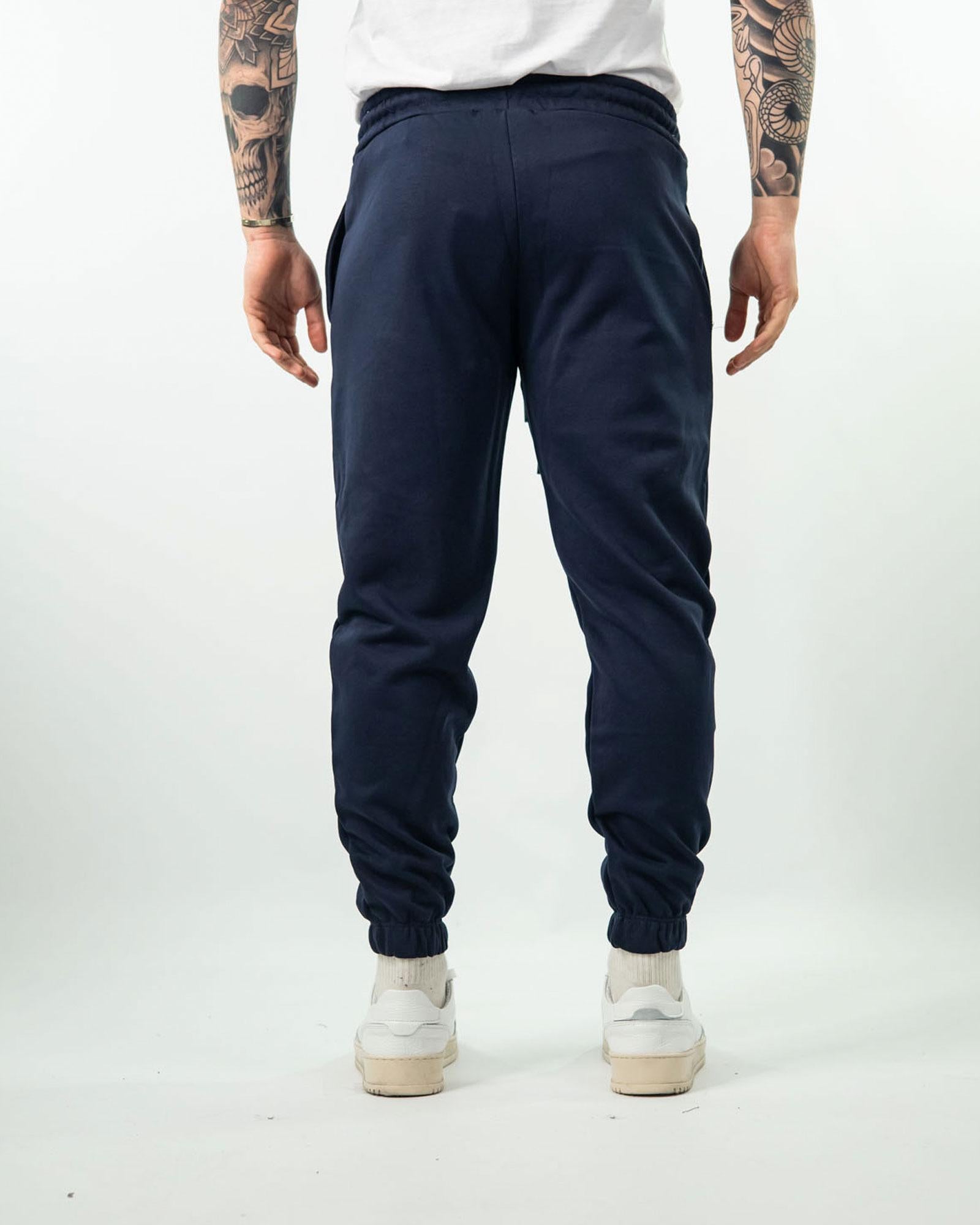 Pantalone tuta con vita elasticizzata regolabile con coulissa, tasche anteriori e dettaglio di fondo elasticizzato. In foto è indossa taglia M per altezza 1,76cm e peso 78kg.